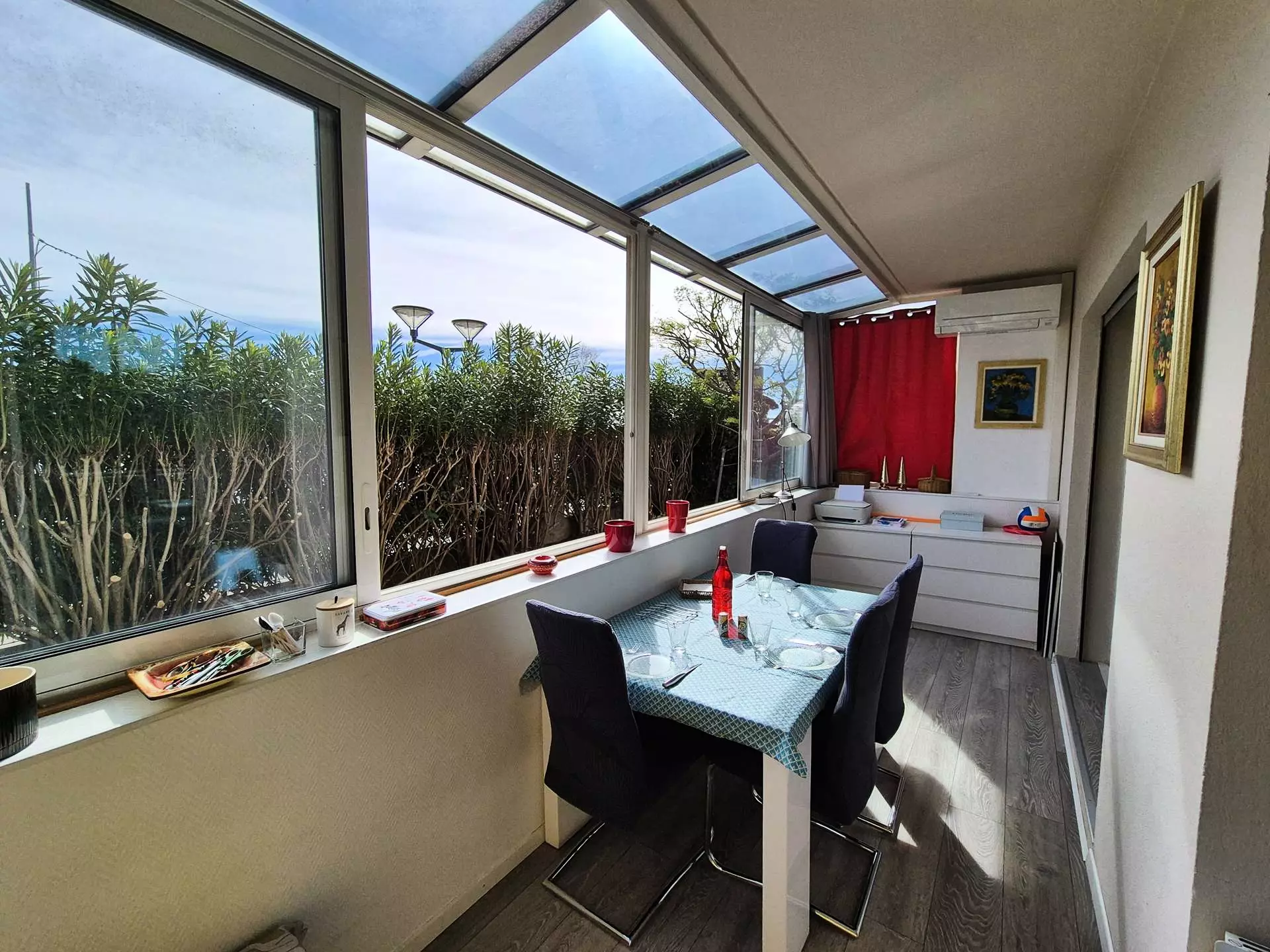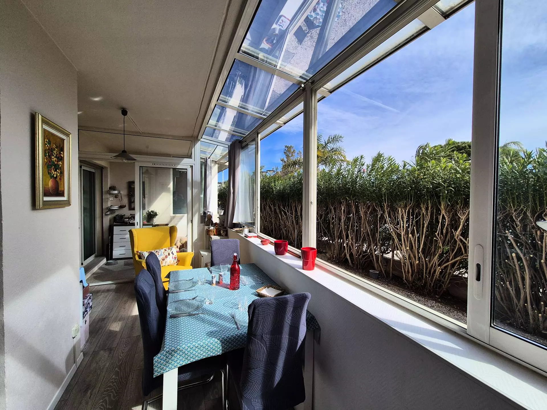 The apartment comprises a pleasant, light-filled living room opening onto a beautiful glazed loggia offering a soothing view of the garden. This space is ideal for relaxing in any season.