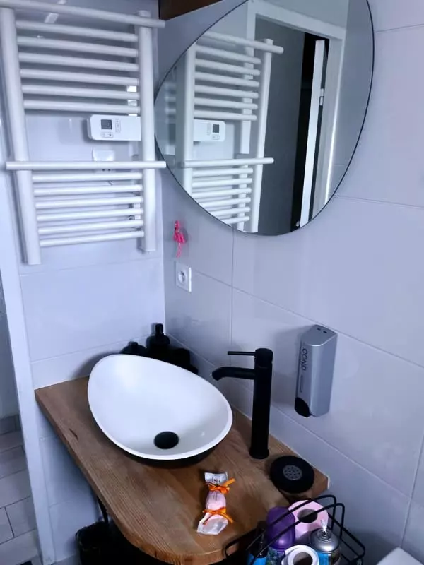 The studio has a bathroom. The kitchen is equipped with an oven, microwave, and a Krups coffee machine to get your day off to a good start. You'll also find a washing machine, a real plus for longer stays, as well as a hairdryer and an iron.