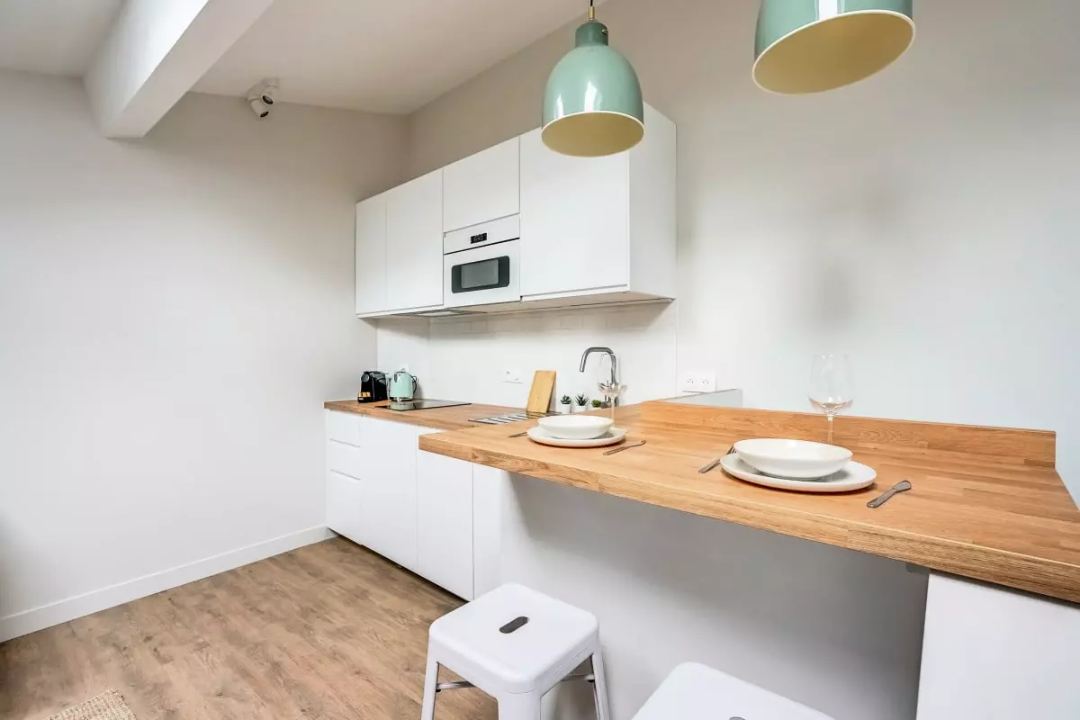 In terms of amenities, you'll have a bathroom and a fully equipped kitchen for preparing your meals. You can enjoy a dishwasher, a microwave, and a Nespresso coffee machine for a gentle start to your day. A hairdryer is also provided, and you can stay connected with the included Wi-Fi.
