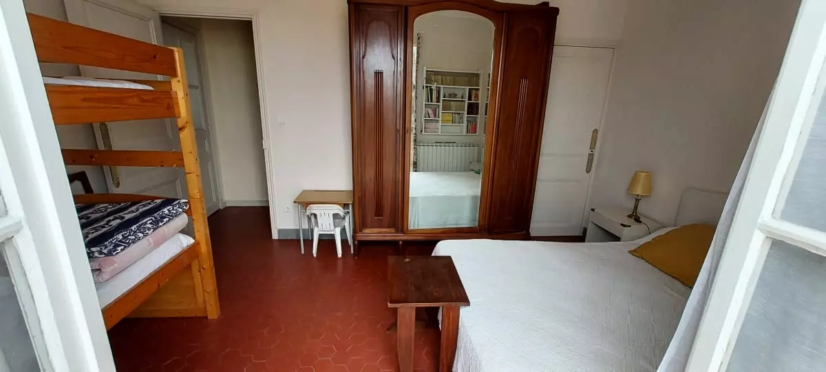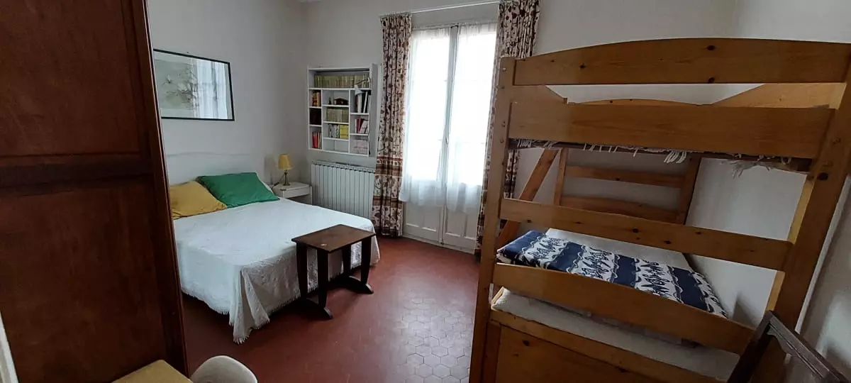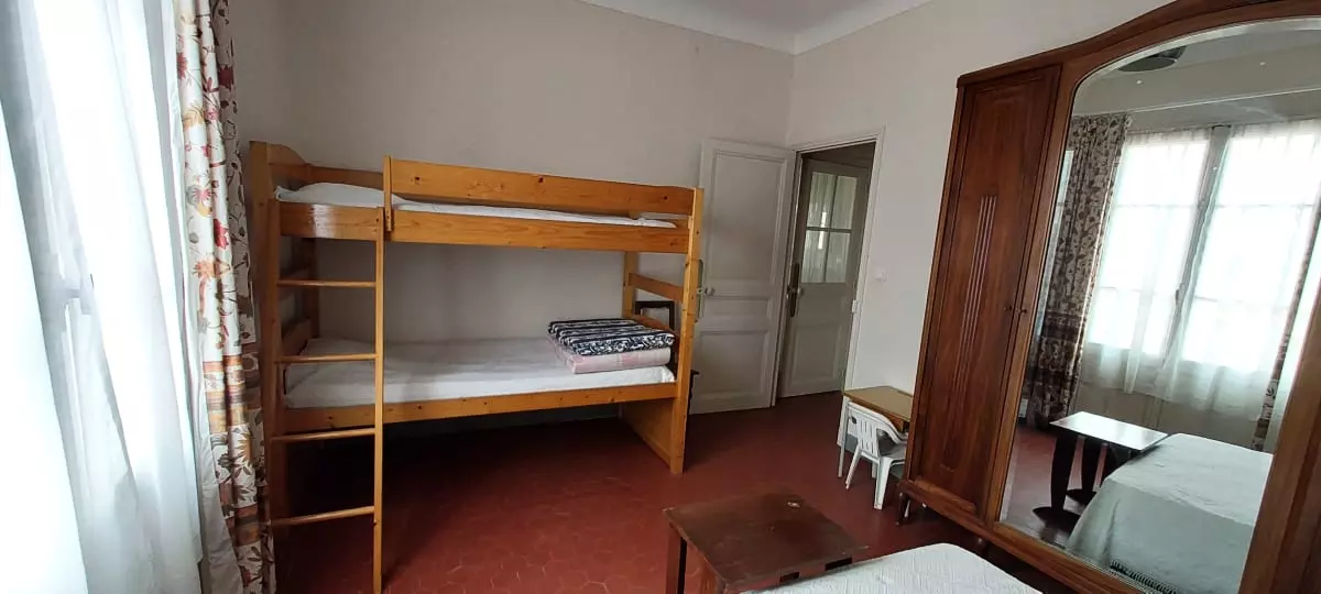 The sleeping area is carefully laid out for everyone's comfort. The bedroom has a double bed (140x200) and a bunk bed with two single beds, ideal for children.