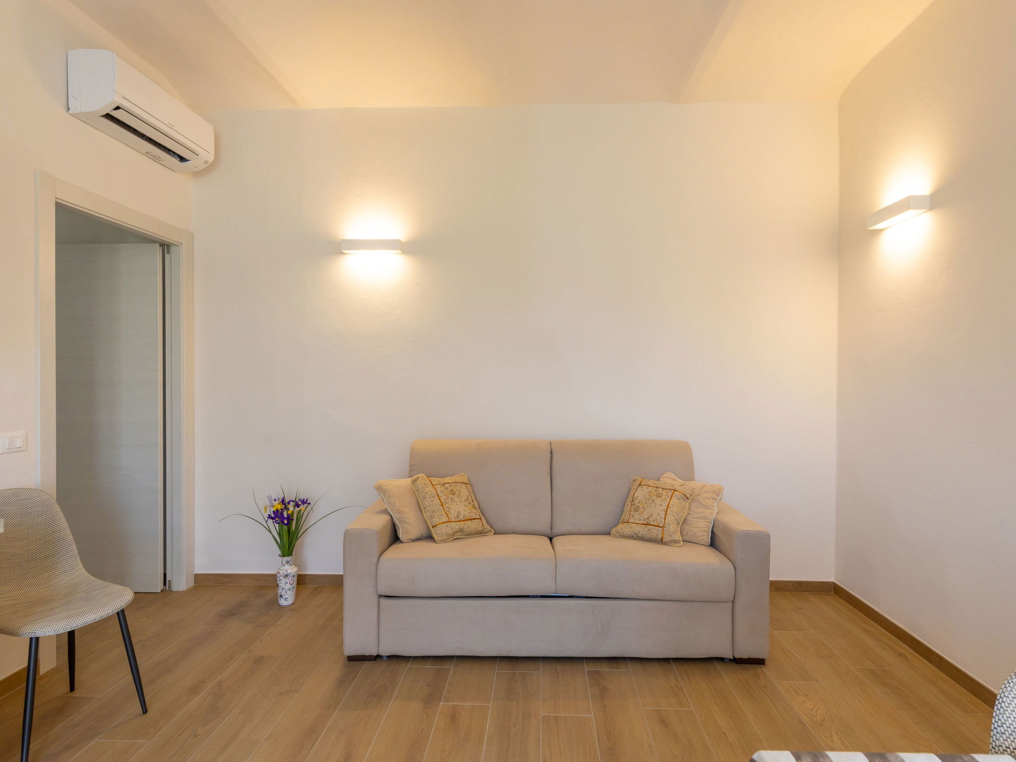 "Nr. 1", 3-room apartment 55 m2, on the ground floor. Spacious, renovated in 2026, beautiful and modern furnishings: living/sleeping room with 1 double sofabed, dining table and TV. Exit to the veranda. 1 room with 1 bed. 1 room with 1 double bed. Open kitchen (dishwasher, 4 induction hot plates, Gas stove, 4 gas rings, toaster, kettle, electric coffee machine, Capsules for coffee machine (Nespresso)). Shower/bidet/WC. Electric heating, air-conditioning. Terrace roofed. Terrace furniture, barbecue, deck chairs. Facilities: washing machine, mosquito net, children's high chair, baby cot, hair dryer. Internet (WiFi, free). Please note: non-smokers only. 1 small pet/ dog allowed. Fire extinguisher.