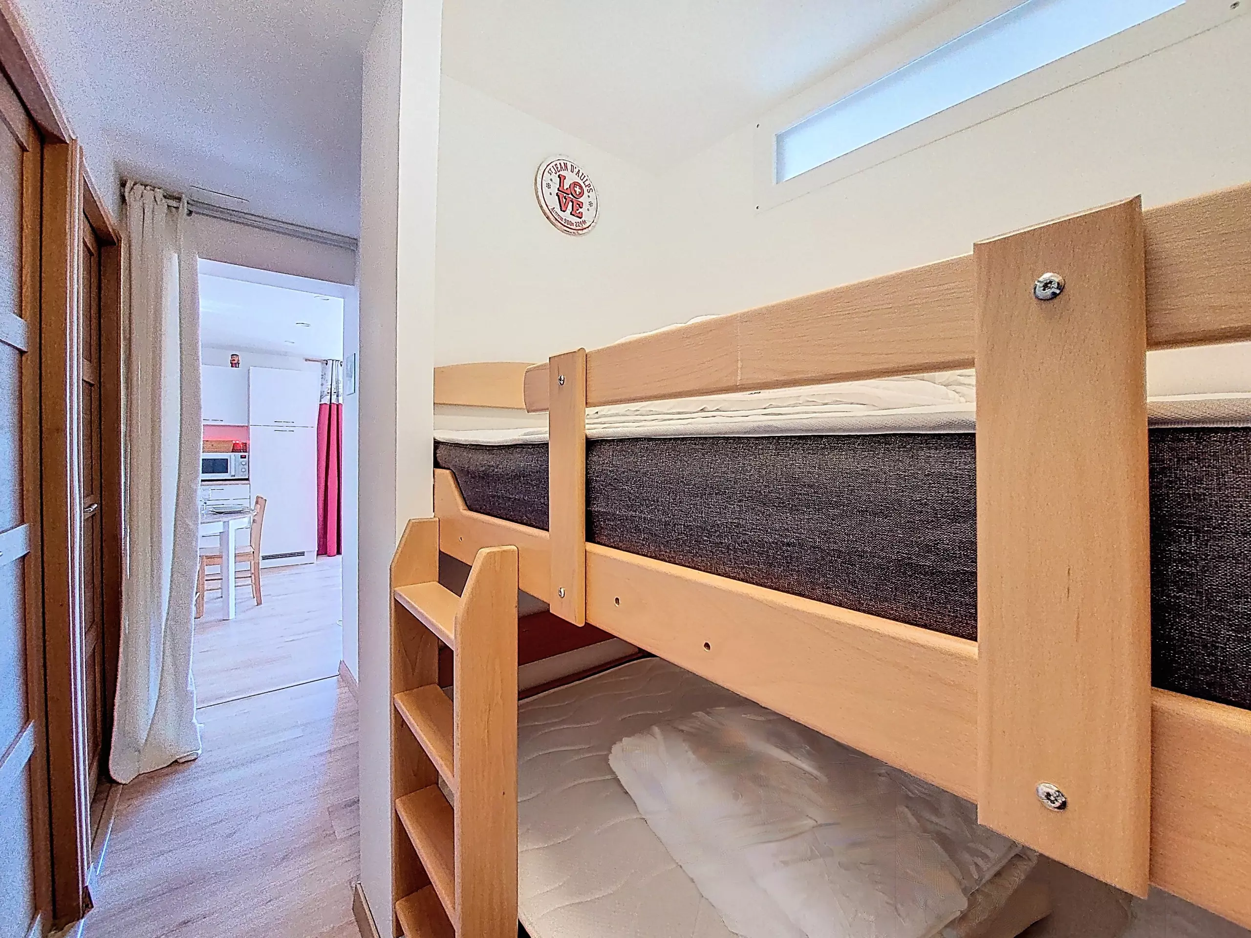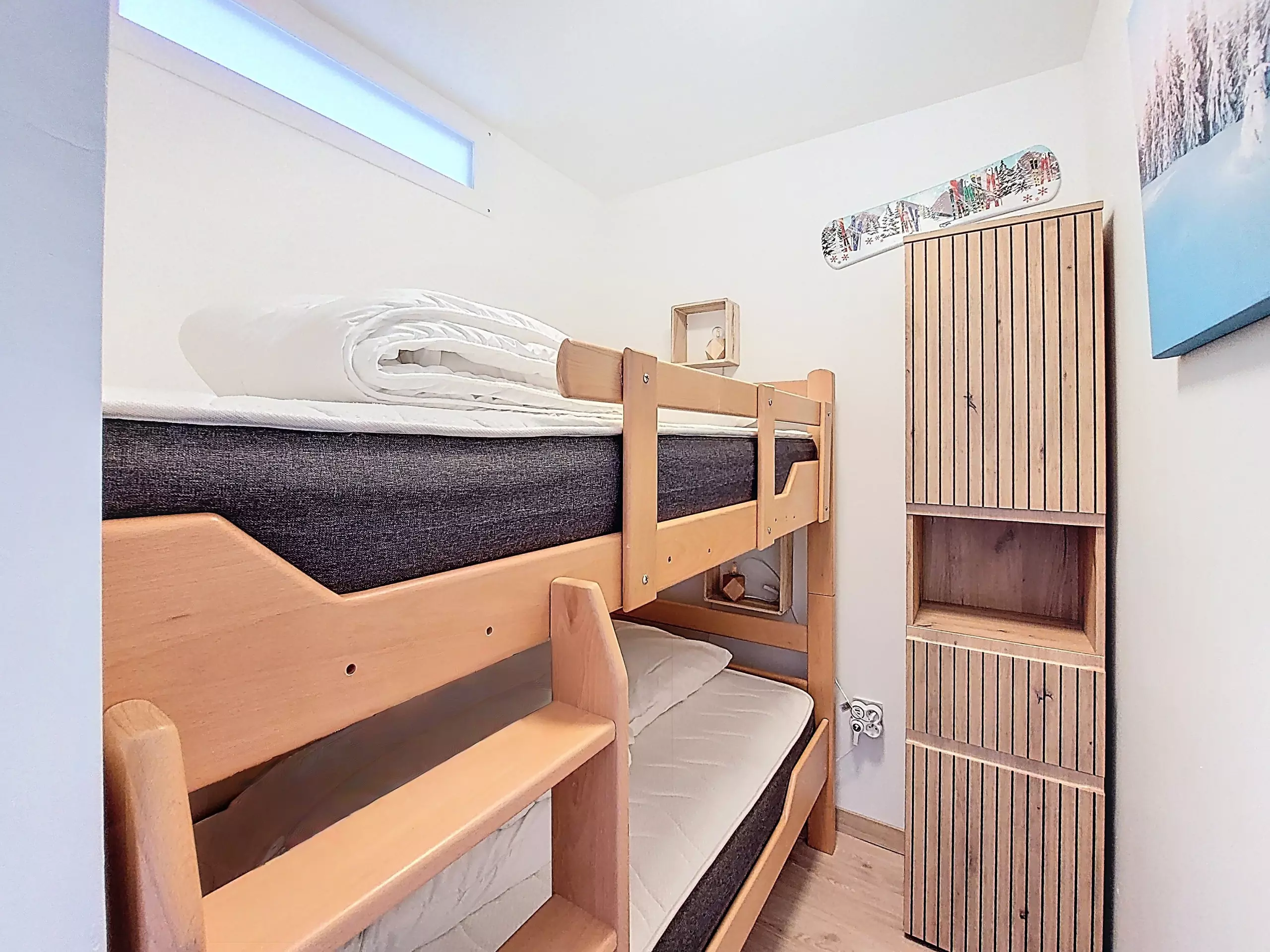 On the sleeping side, the apartment is perfectly laid out to accommodate up to 5 people. You will find a bedroom with a double bed (140x190) and wardrobe, as well as a mountain alcove with bunk beds (2 x 90x190), particularly appreciated by children.
