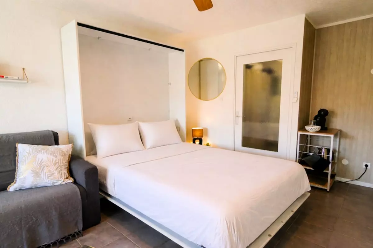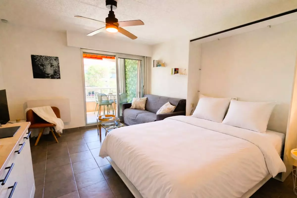 The location is a real plus: a charming little beach awaits you at the end of the street, just 300 meters away, surrounded by shops, restaurants, and a pétanque court for relaxing at the end of the day. For a more lively atmosphere, Les Sablettes beach is an 18-minute walk away.