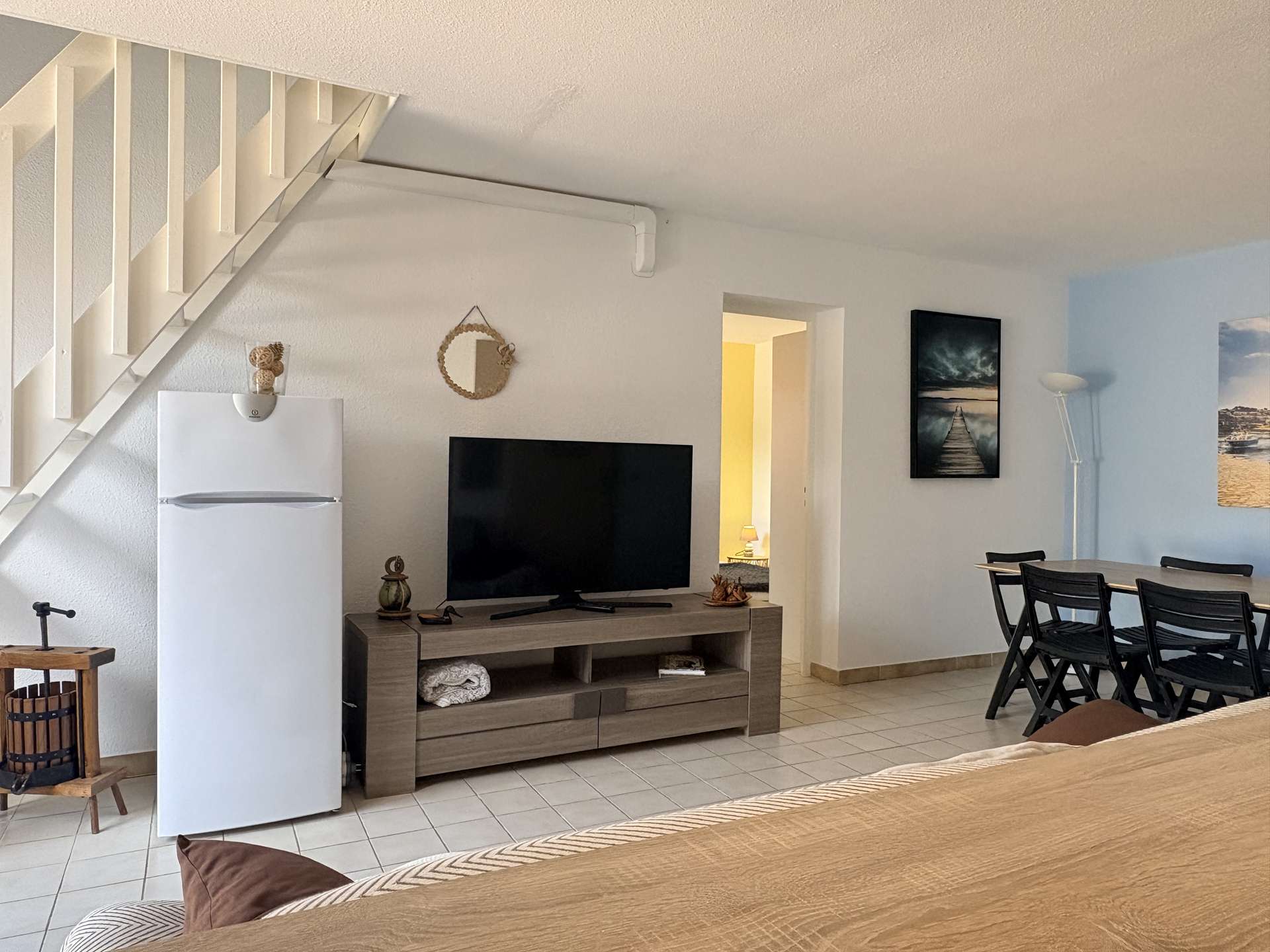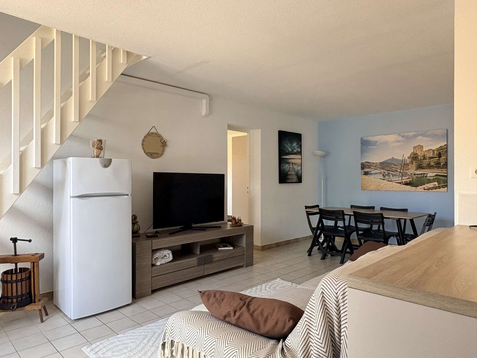 Nichée dans un environnement paisible, à seulement quelques pas du port et du centre-ville, la Résidence Les Hauts du Fontaulé vous propose des appartements confortables avec terrasse et vue mer. Ce bel appartement en duplex, entièrement rénové en 2025, vous accueille dans un cadre moderne et lumineux. Au premier niveau, vous trouverez un séjour avec coin cuisine tout équipé, ouvert sur une agréable terrasse avec vue mer, une chambre avec deux lits simples (90x200 cm, modulables en lit king size), ainsi qu’une salle d’eau avec WC. À l’étage, l’espace nuit se poursuit avec une chambre pour enfants équipée de lits superposés donnant accès à une seconde terrasse, et une autre chambre avec deux lits simples (également réunissables en lit king size). Un emplacement de stationnement privé est à votre disposition pour plus de confort. Logement classé meublé de tourisme 3 étoiles.