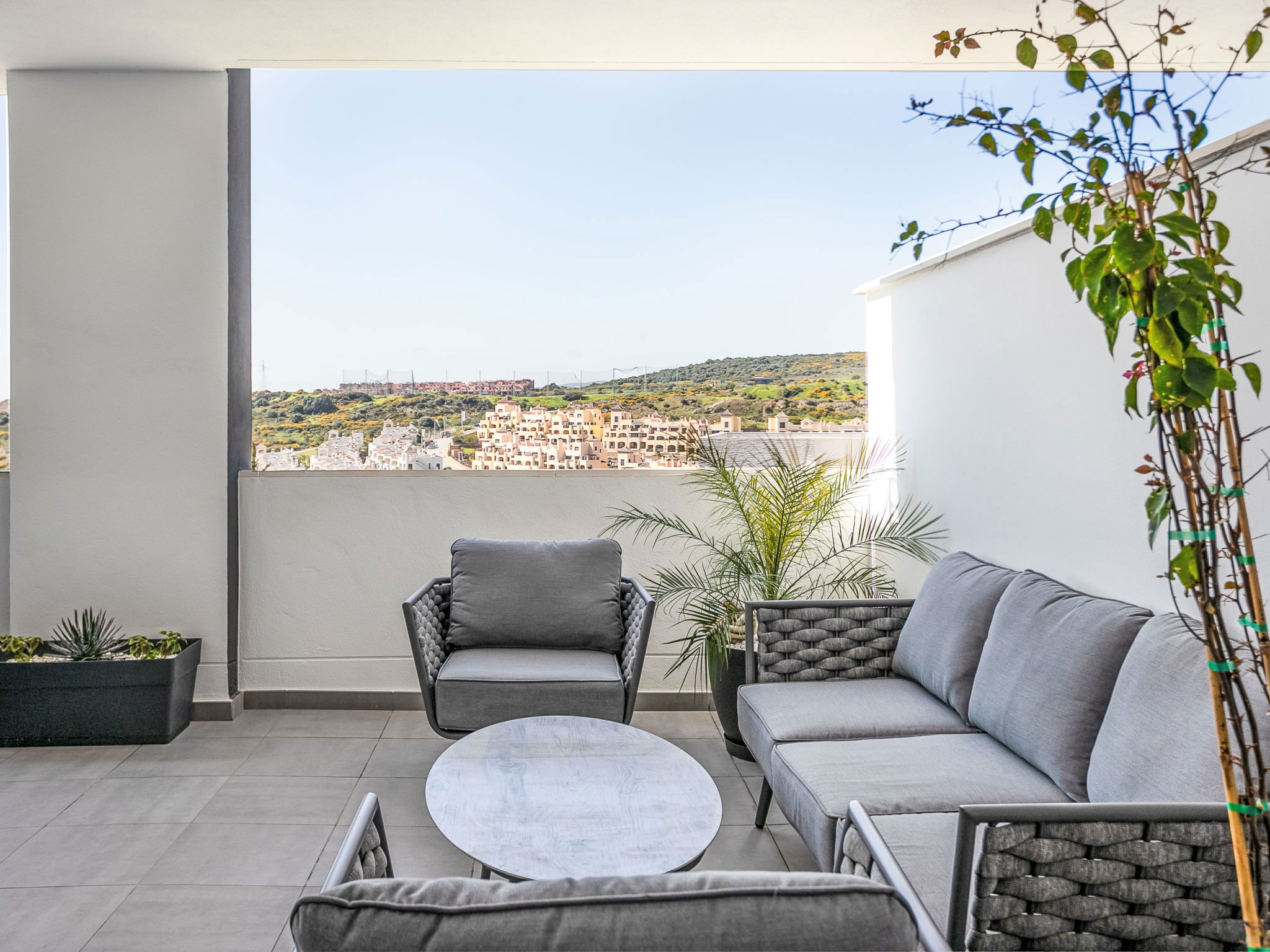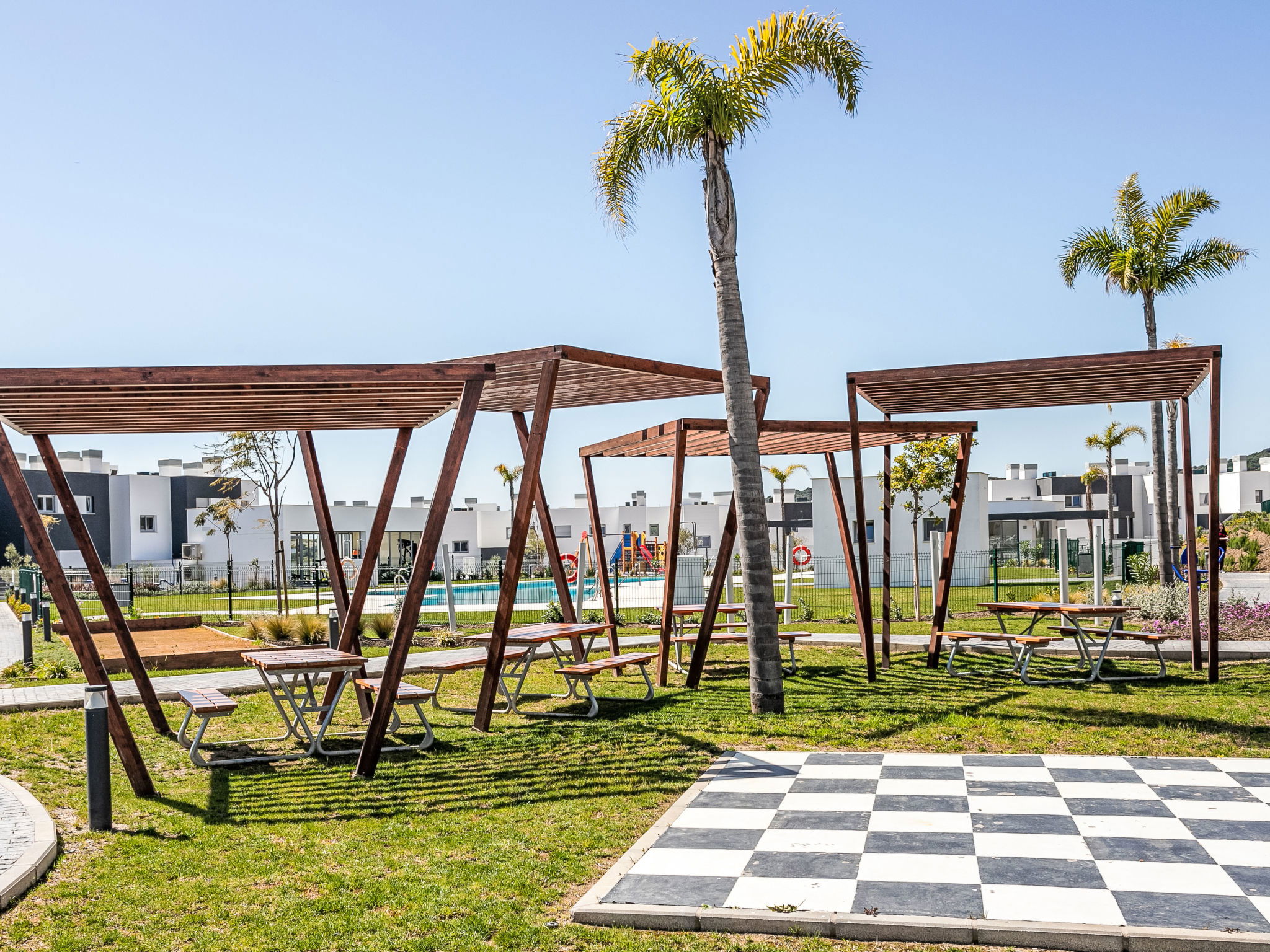 Apartment block "Habitat Valle Romano", built in 2025. In a quiet position on top of a hill, 3 km from the sea, 3 km from the beach. For shared use: garden with lawn and plants, swimming pool (26 x 6 m, depth 160 - 80 cm, seasonal availability: 01.Jan. - 31.Dec.) with internal staircase. Unconventional pool shape. WC in the pool area, children's pool, outdoor shower, boccia, children's playground (slide, swing). In the complex: WiFi, fitness room. Communal covered parking space n 42. Restaurant 2.4 km, café 2.7 km, bus stop "Hospital" 2.7 km, railway station "Algeciras" 65 km, sandy beach "Playa Arroyo Vaquero" 4.1 km. Sports harbour 6.4 km, marina 21 km, golf course (18 hole) 1.1 km, surf school 6.4 km, sailing school 6.4 km, tennis 6.7 km, riding stable 13 km. Nearby attractions: Casares Castle 13 km, Termas Romanas de Guadalmina 20 km, Aeropuerto internacional de Gibraltar 46 km, Parque Ferial y Deportivo 4.7 km, Centro Historico Estepona 9.7 km, Selwo Adventure Park 16.8 km. Hiking paths: Caminito del Rey - Acceso Sur 108 km. Please note: car recommended. The owner does not accept any youth groups.