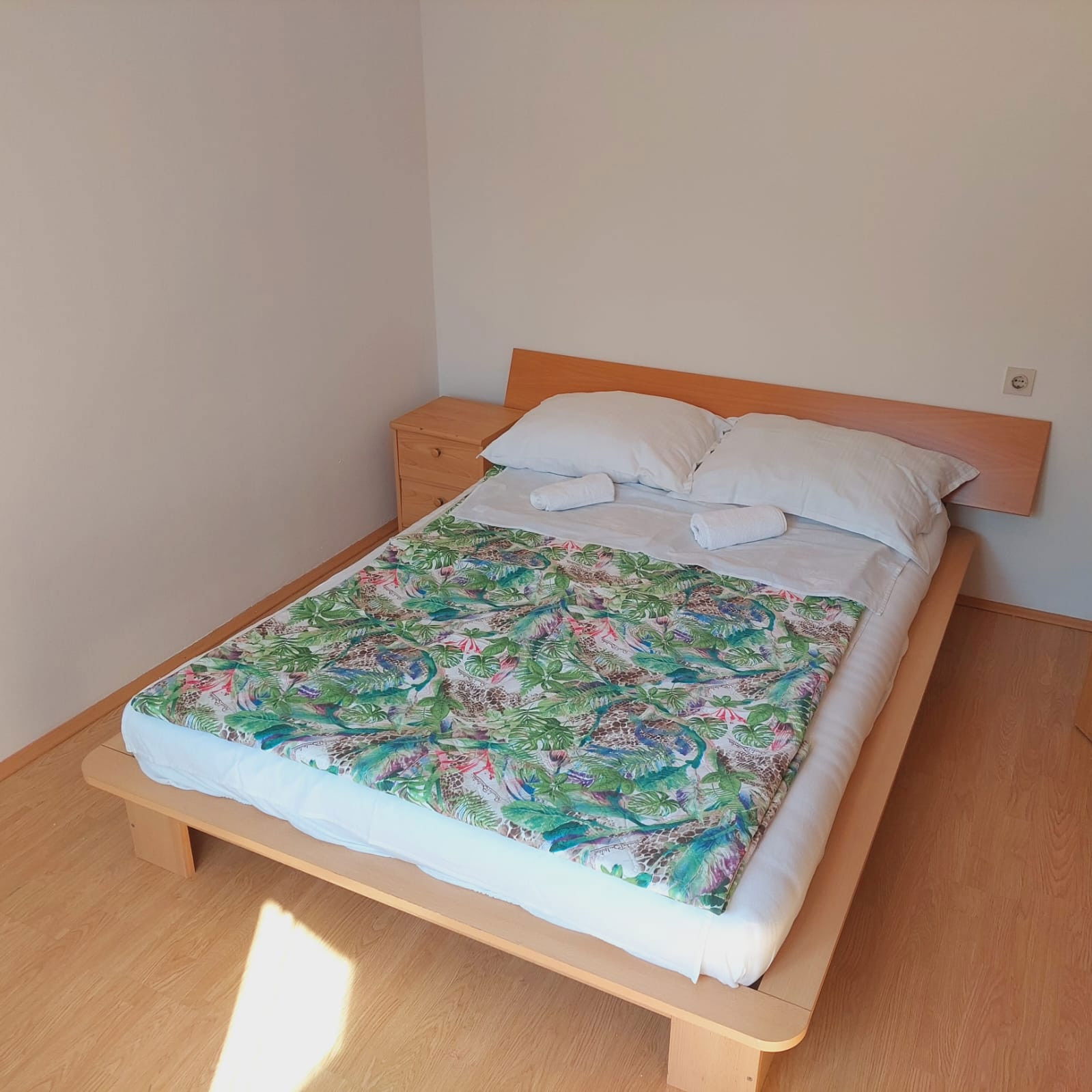 The apartment offers a sea view through the window. There is a double sofa bed with flat screen TV in the living room and king-size bed in the bedroom. There is also a kitchenette with a dining table, stove, microwave, fridge, freezer, kettle and all the plates, bowls, and utensils you'll need. Private bathroom with a shower.