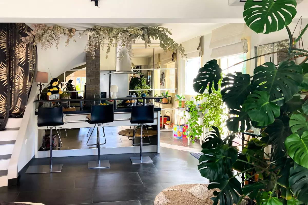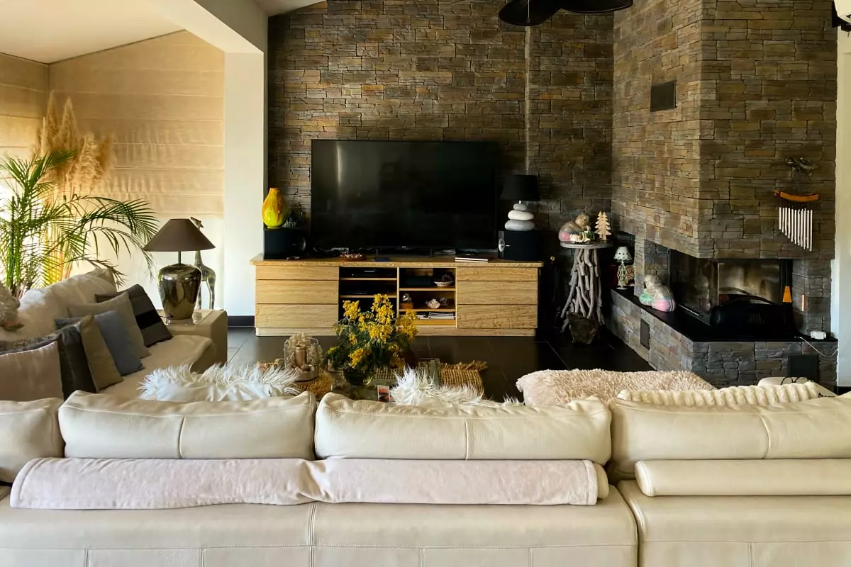 From the moment you enter, the villa captivates with its generous proportions and abundant natural light. The expansive 80m² living space encompasses a large, inviting living room with a fireplace, a convivial dining room, and a fully equipped, open-plan kitchen. Thanks to its large windows opening onto the terrace, the house seamlessly blends indoor and outdoor living from morning till night, creating a fluid and elegant atmosphere.