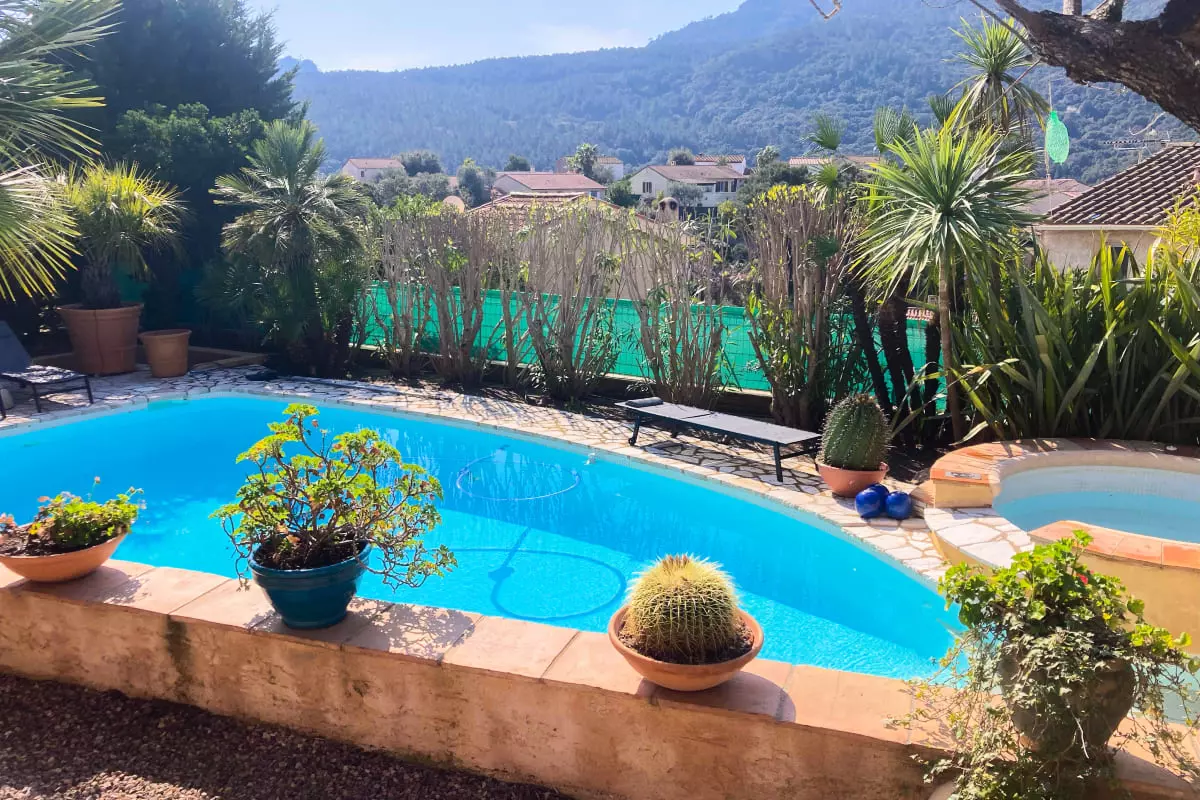 The private swimming pool, with its integrated jacuzzi, invites relaxation in an intimate and elegant setting. The pool house provides added comfort for summer days, while the barbecue makes it easy to host delightful outdoor meals. The property is fully fenced, guaranteeing peace, security, and privacy.