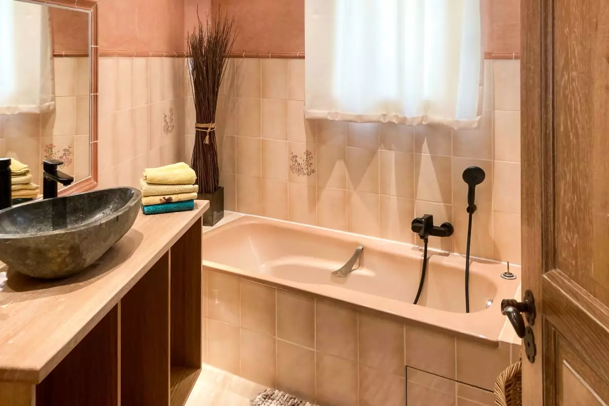 The three spacious bedrooms, ranging from 15 to 20 square meters, offer true comfort for extended stays. They allow everyone to enjoy their own space in a relaxing yet refined atmosphere. The villa also has two bathrooms.