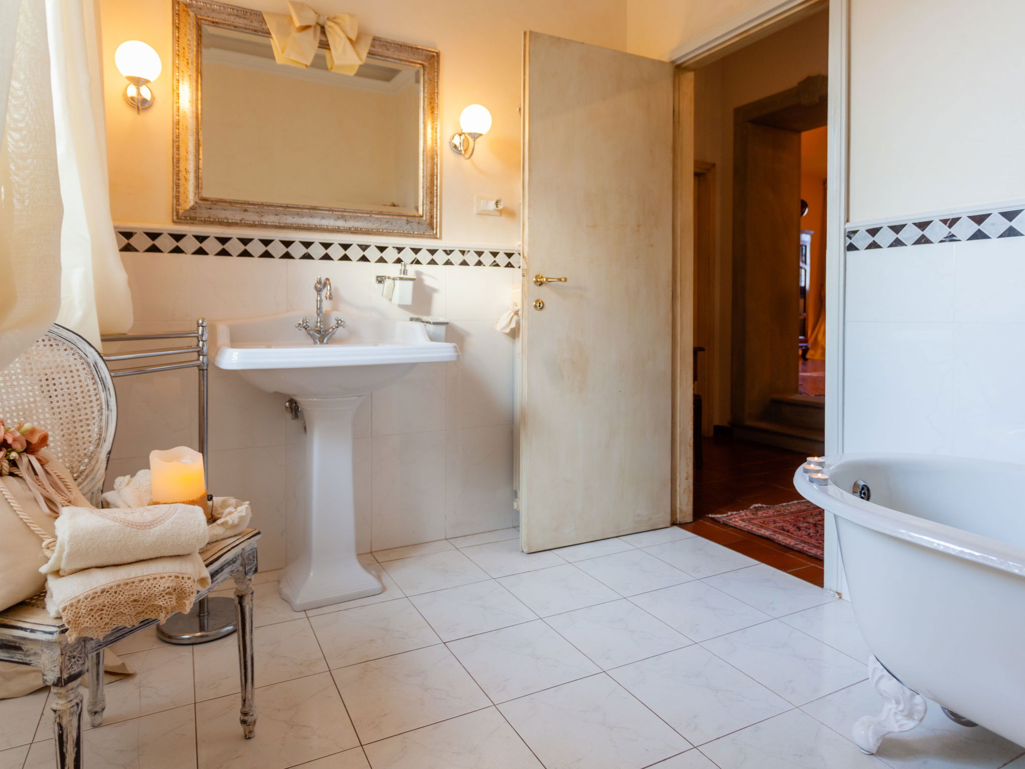 "Villa Colle Mediceo", 6-room villa 250 m2 on 2 levels. Comfortable and tasteful furnishings: living room with open-hearth fireplace (only for decoration), digital TV. Exit to the garden. Large kitchen (4 hot plates, oven, dishwasher, toaster, kettle, microwave, electric coffee machine). Shower/bidet/WC. Upper floor: 2 rooms, each room with 1 double bed. 2 rooms, each room with 1 bed and 1 fold-away bed. Bath/bidet/WC, shower/bidet/WC. Comfortable furnishings in the country house style. Terrace furniture, barbecue, deck chairs. Very beautiful panoramic view of the city. Facilities: washing machine, mosquito net, hair dryer. Internet (WiFi, free). Please note: maximum 1 pet/ dog allowed. Smoke alarm, fire extinguisher. IT100002C24G57LSE9