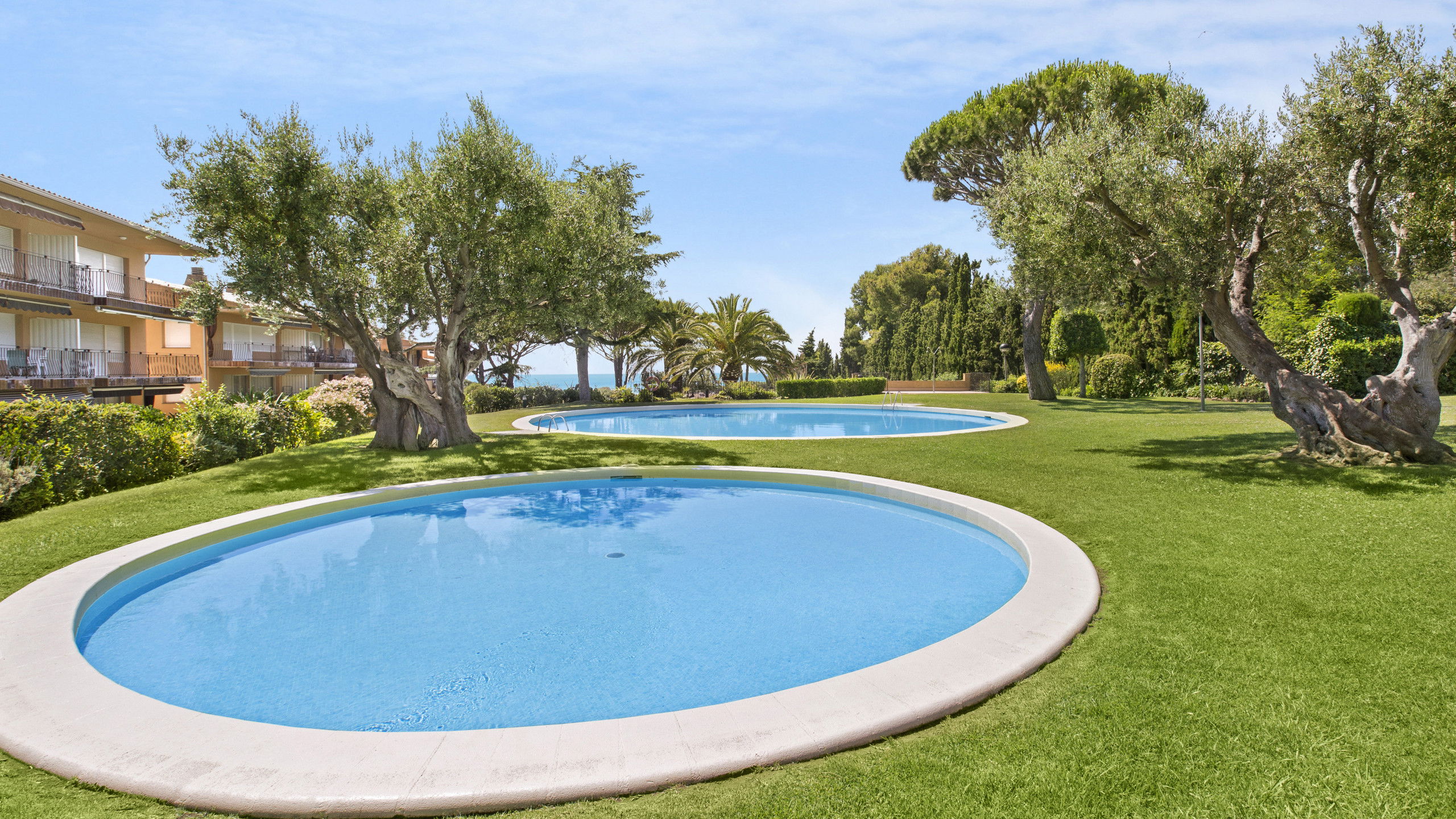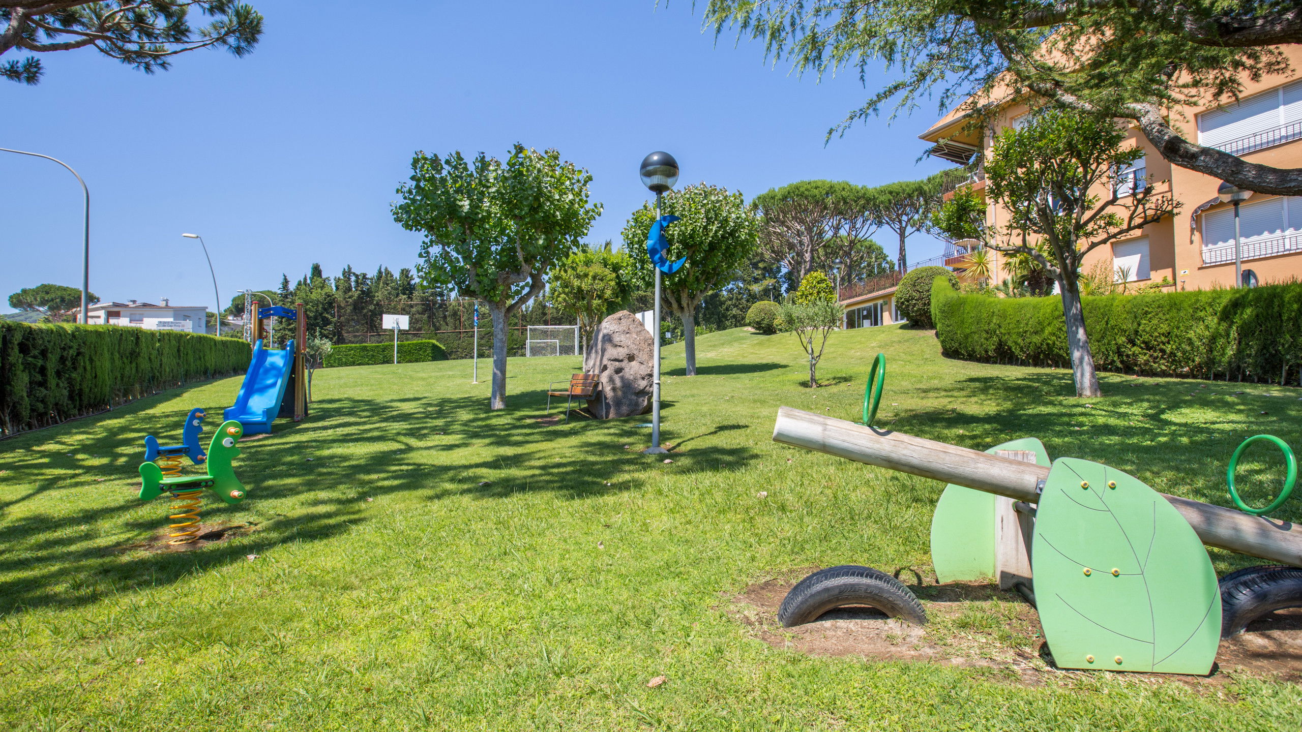 It is located in a very peaceful community with a large swimming pool and two smaller pools for children, a spacious and well-maintained garden, and a children's area with games and a football field.