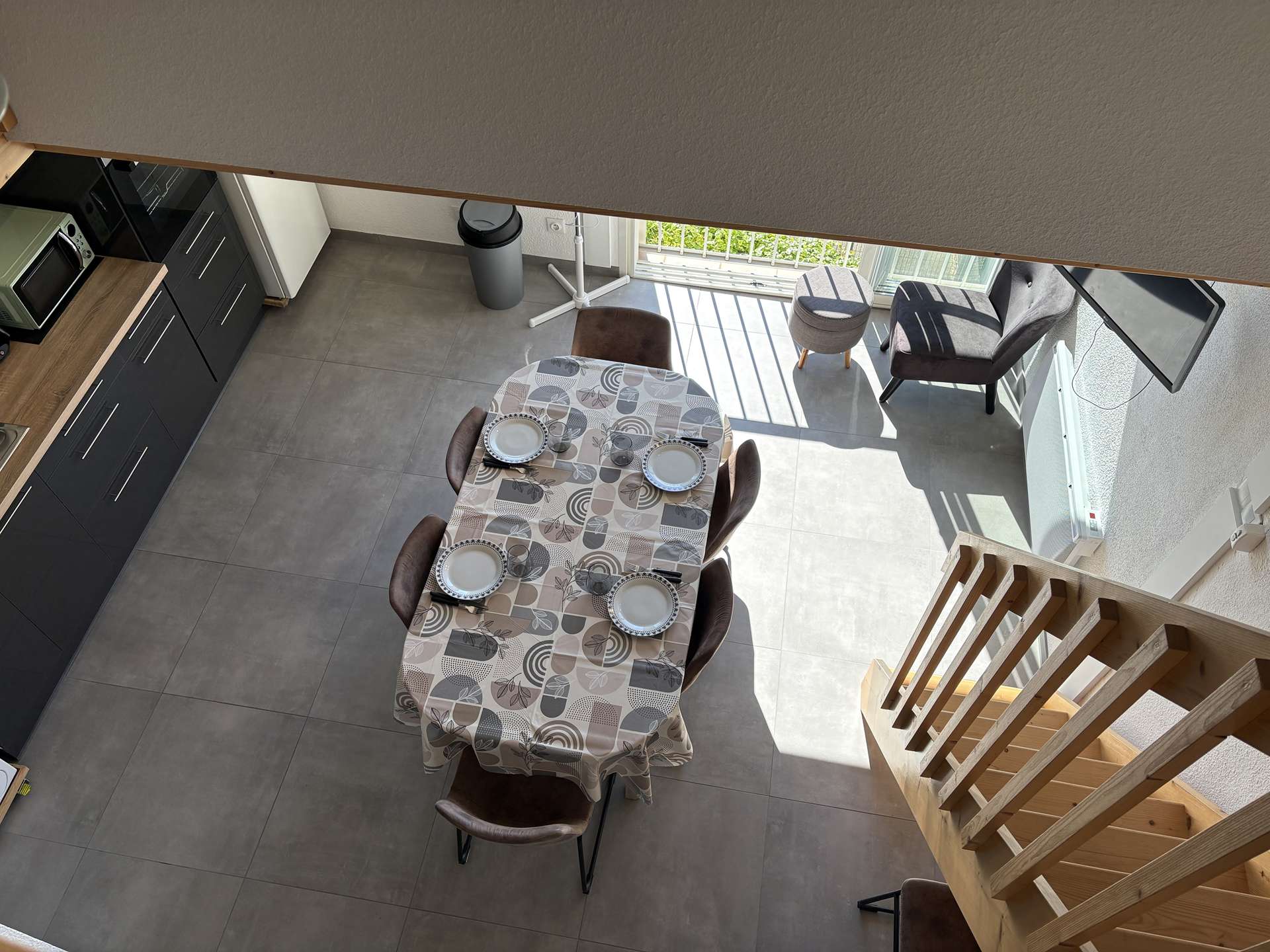 Le logement : Cet hébergement de vacances en famille se situe au 2e étage et est composé d'un séjour avec canapé convertible et télévision (sous réserve d'une bonne réception), d'un espace repas, avec sa cuisine équipée, une salle d'eau avec wc ainsi qu'une mezzanine où vous trouverez un couchage pour 2 personnes.