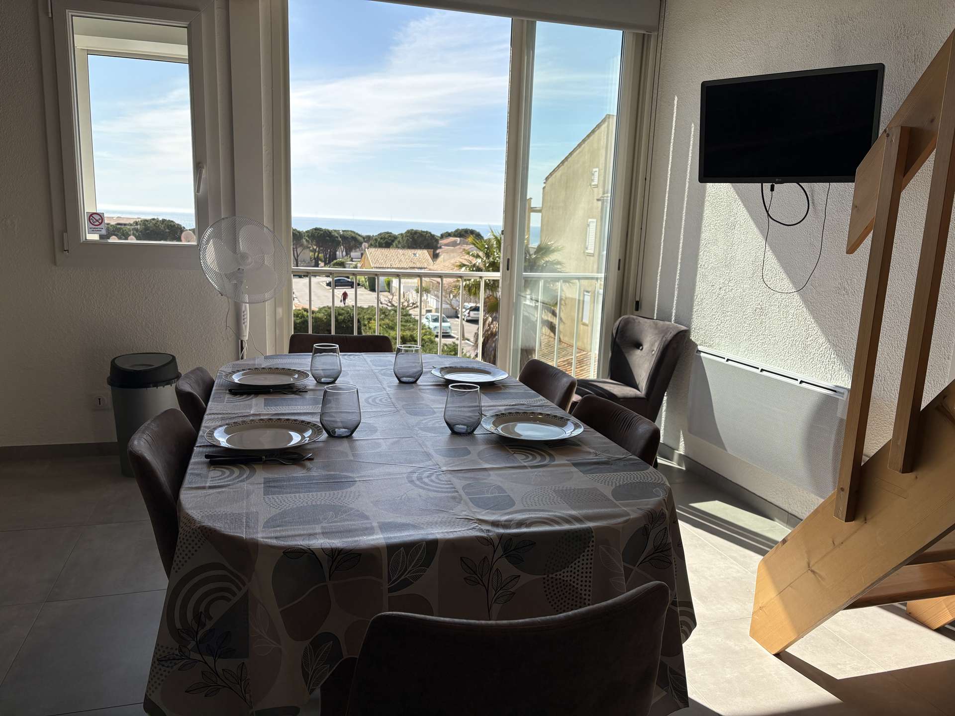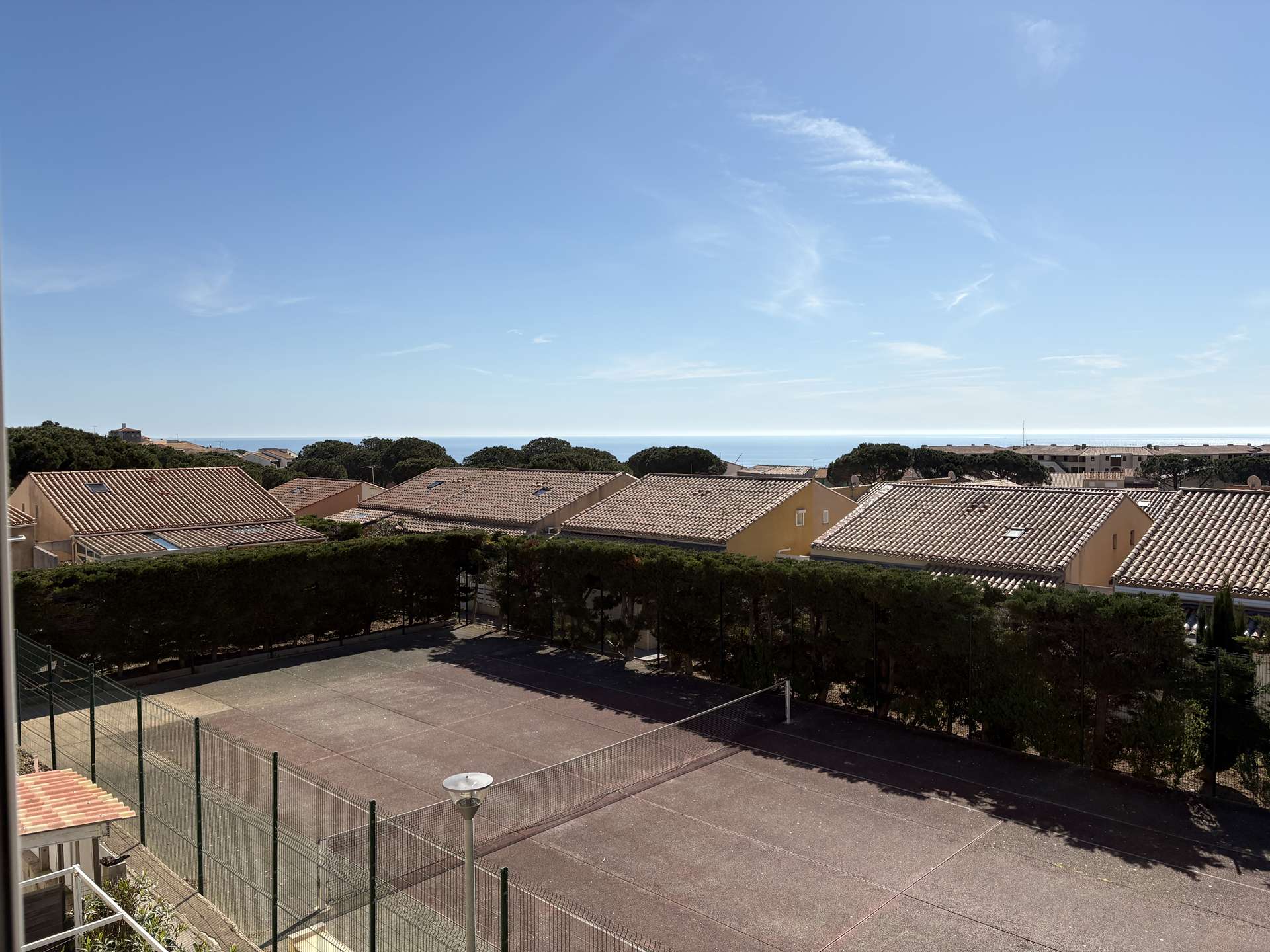 Les avantages de cette location de vacances à la plage : Appartement vue mer, tennis, piscine privée sécurisée et parking privatif. La résidence est également sécurisée par un portail électrique.