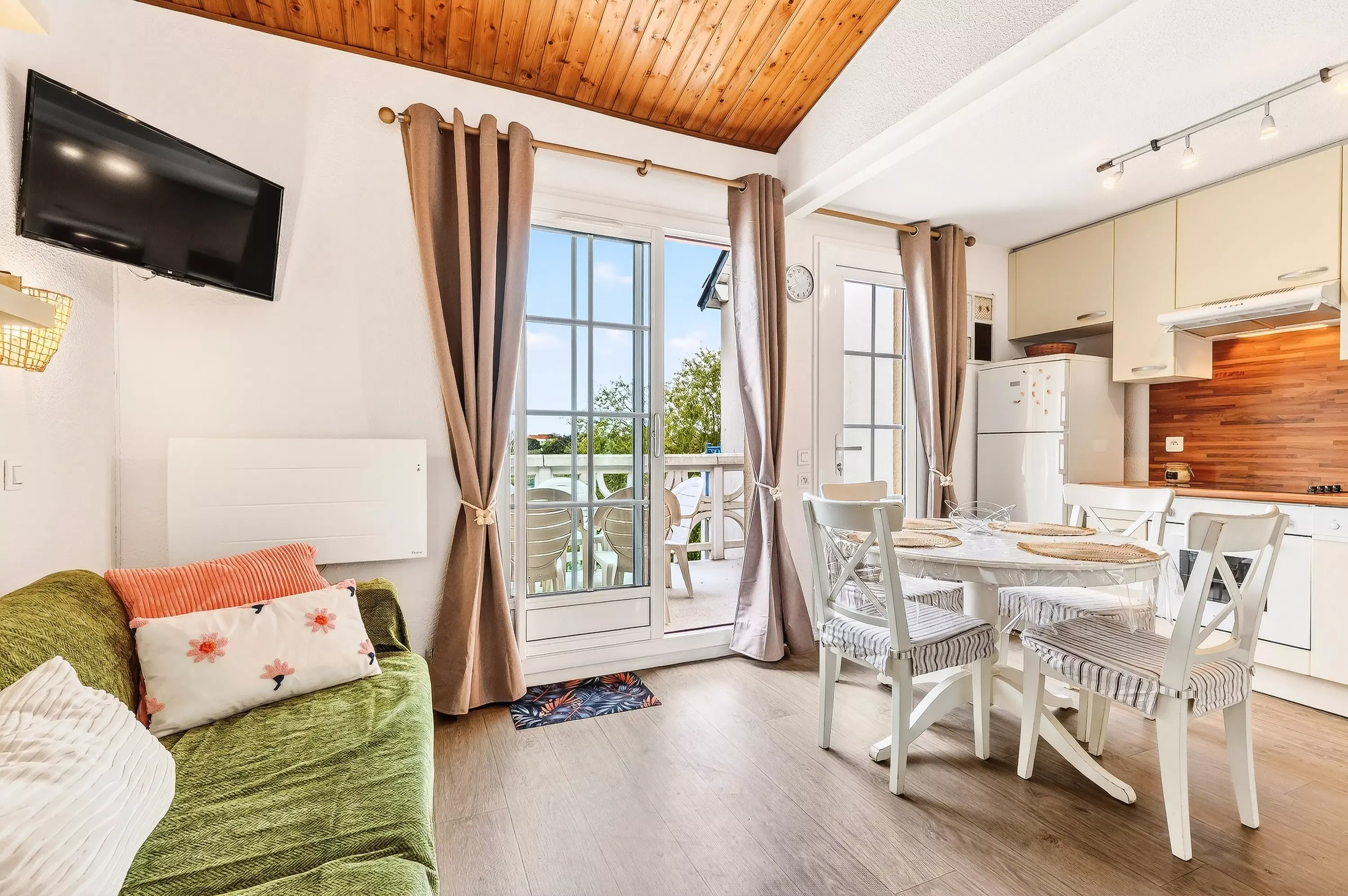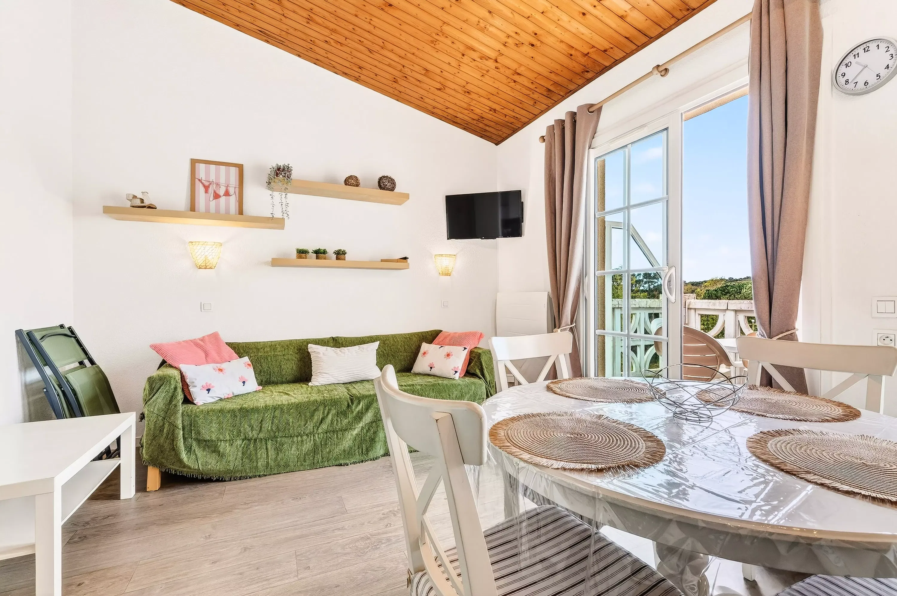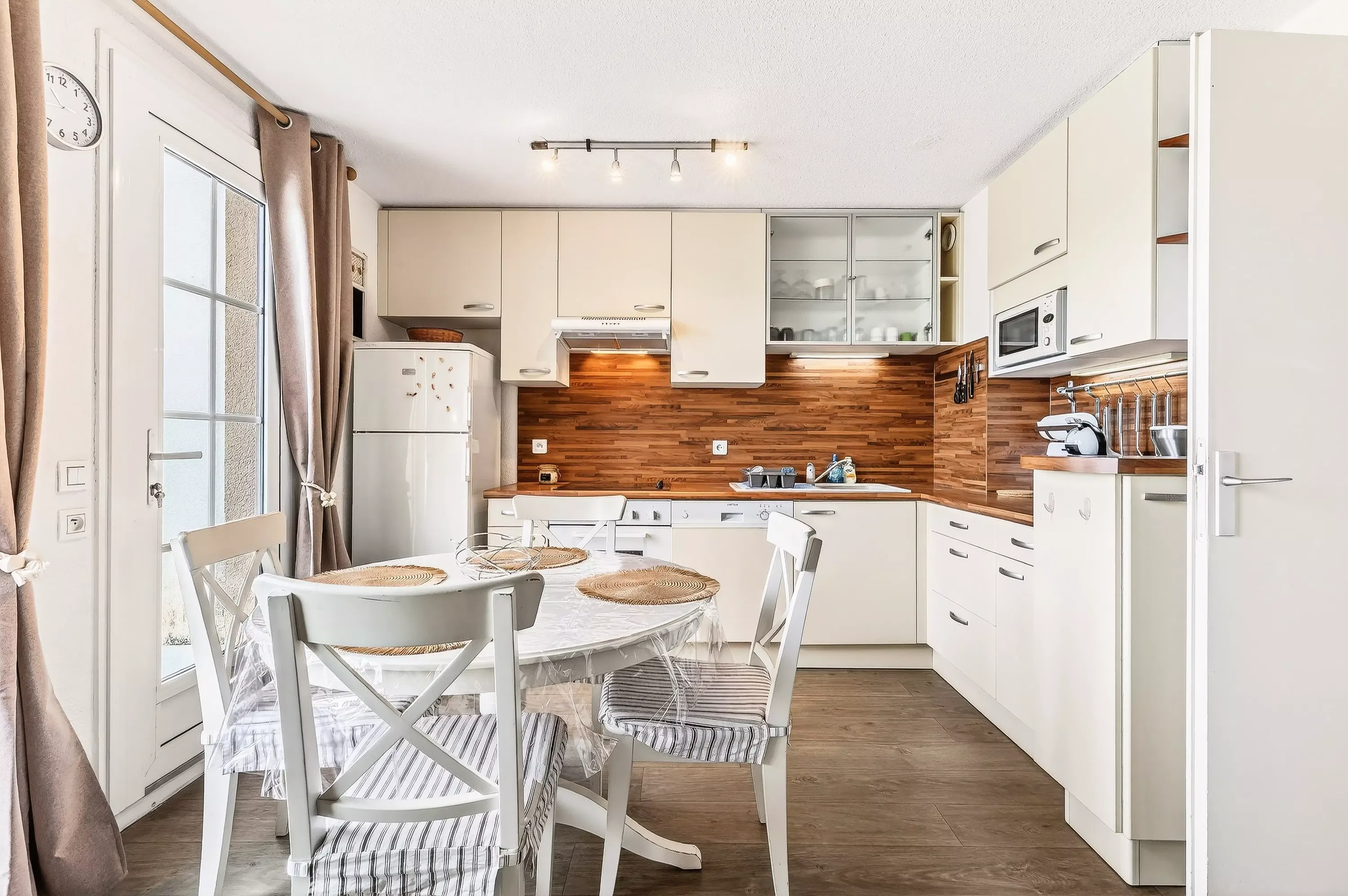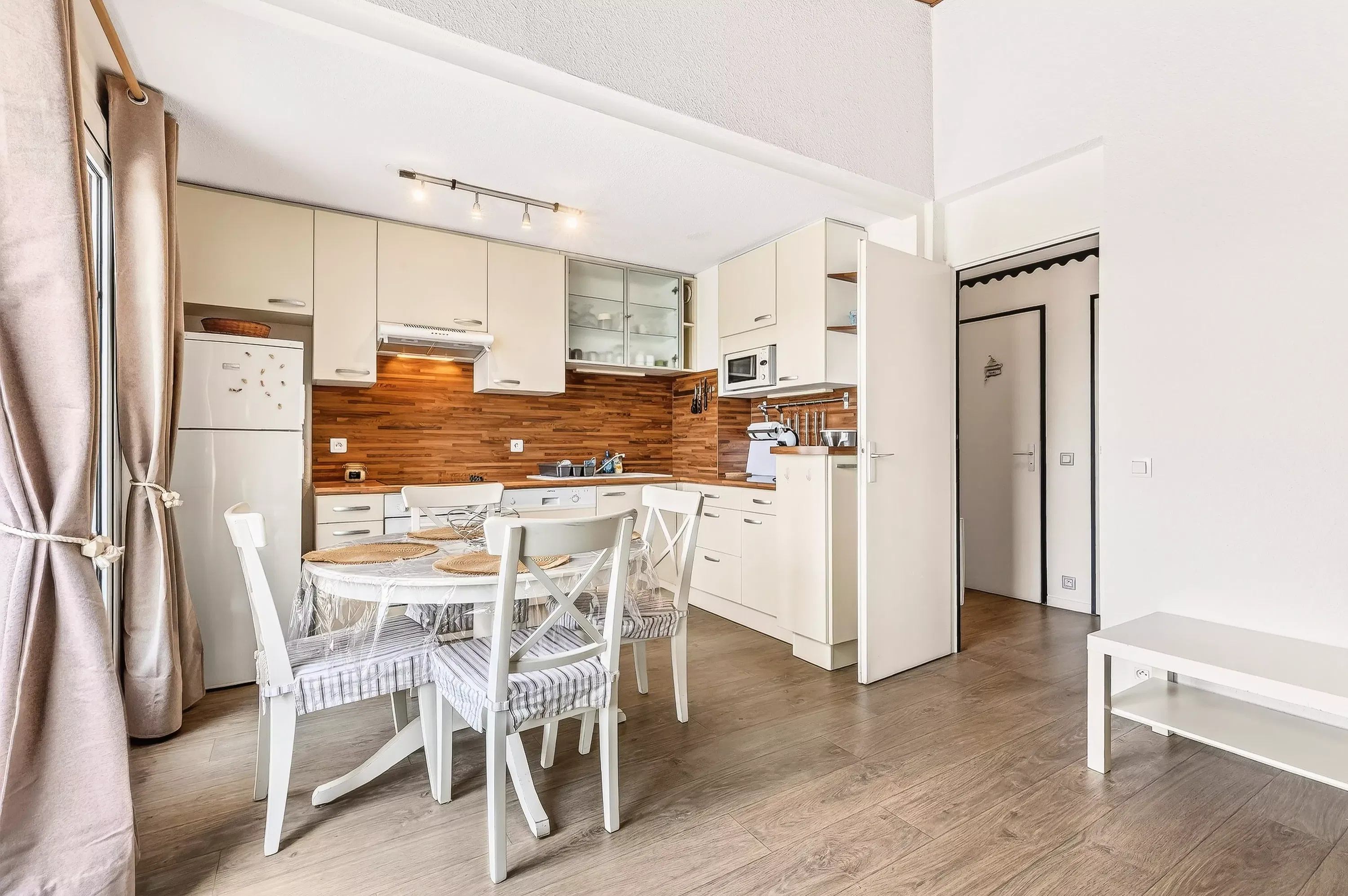 This second-floor apartment offers a pleasant setting in the village center, away from the main activities yet with an unobstructed view of the golf course. Its layout is well-suited for a stay with family or friends, with easy access and a welcoming living space centered around the open-plan kitchen.