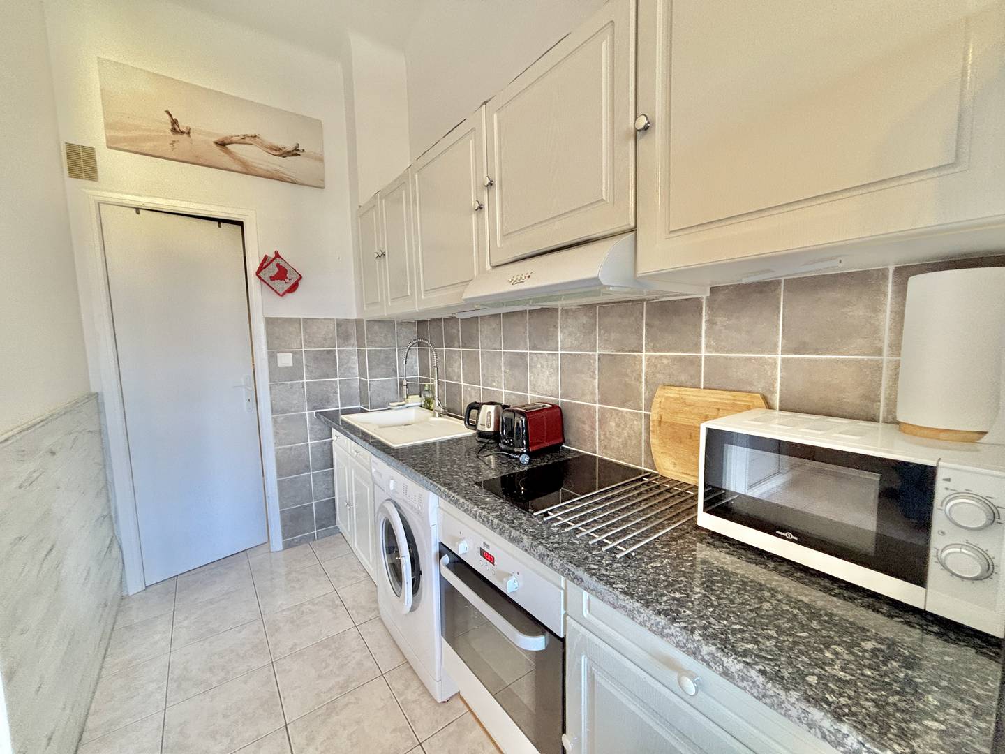 The apartment's best features include its location just steps from the beach, air conditioning in the living room, and access to the residence's parking (though spaces are not assigned).