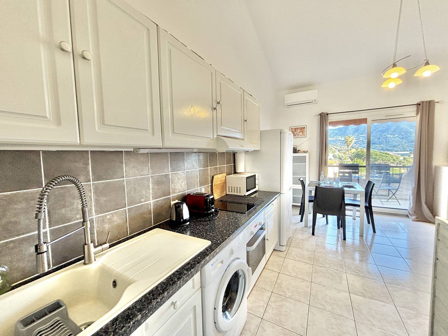 The apartment comprises an entrance hall, an air-conditioned living room with a sofa bed, a fully equipped kitchen, a bathroom with WC, and a terrace overlooking the sea and garden, allowing you to enjoy outdoor dining.