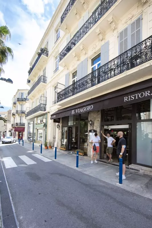 -Croisette: luxury shops, palaces, seafront, beaches, restaurants, artisanal Italian ice cream parlors, snack kiosks, souvenir kiosks, cafes, etc.