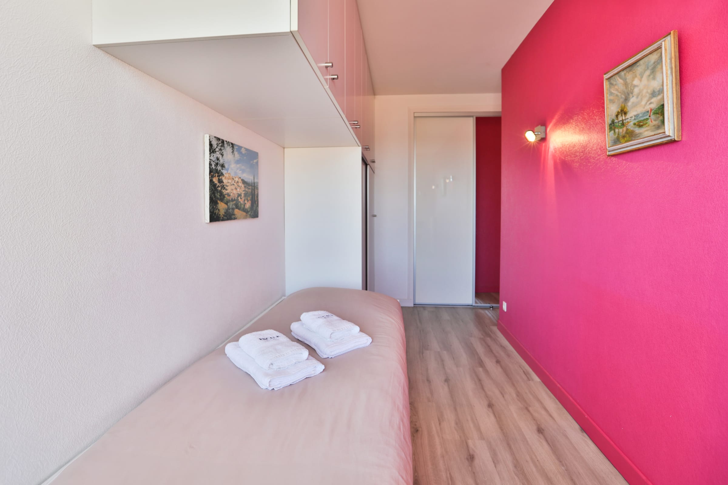 L'appartement se trouve au 6ème étage avec ascenseur dans immeuble paisible. Vous profiterez d'un environnement calme tout en étant à proximité des commerces. Cet appartement est idéal pour un séjour de 2 à 4 personnes.