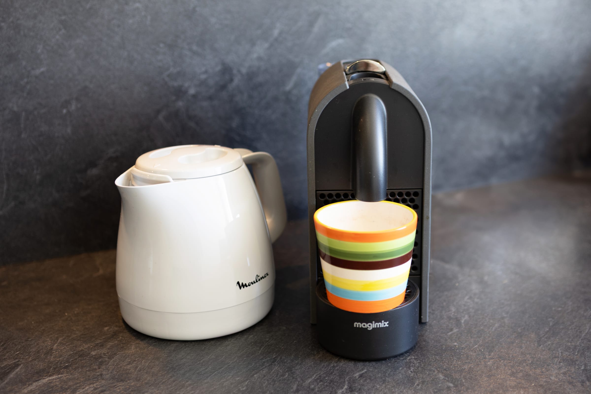 - d'une cuisine entièrement équipée : lave vaisselle, four, micro-ondes, cafetière à dosettes Magimix, grille-pain…