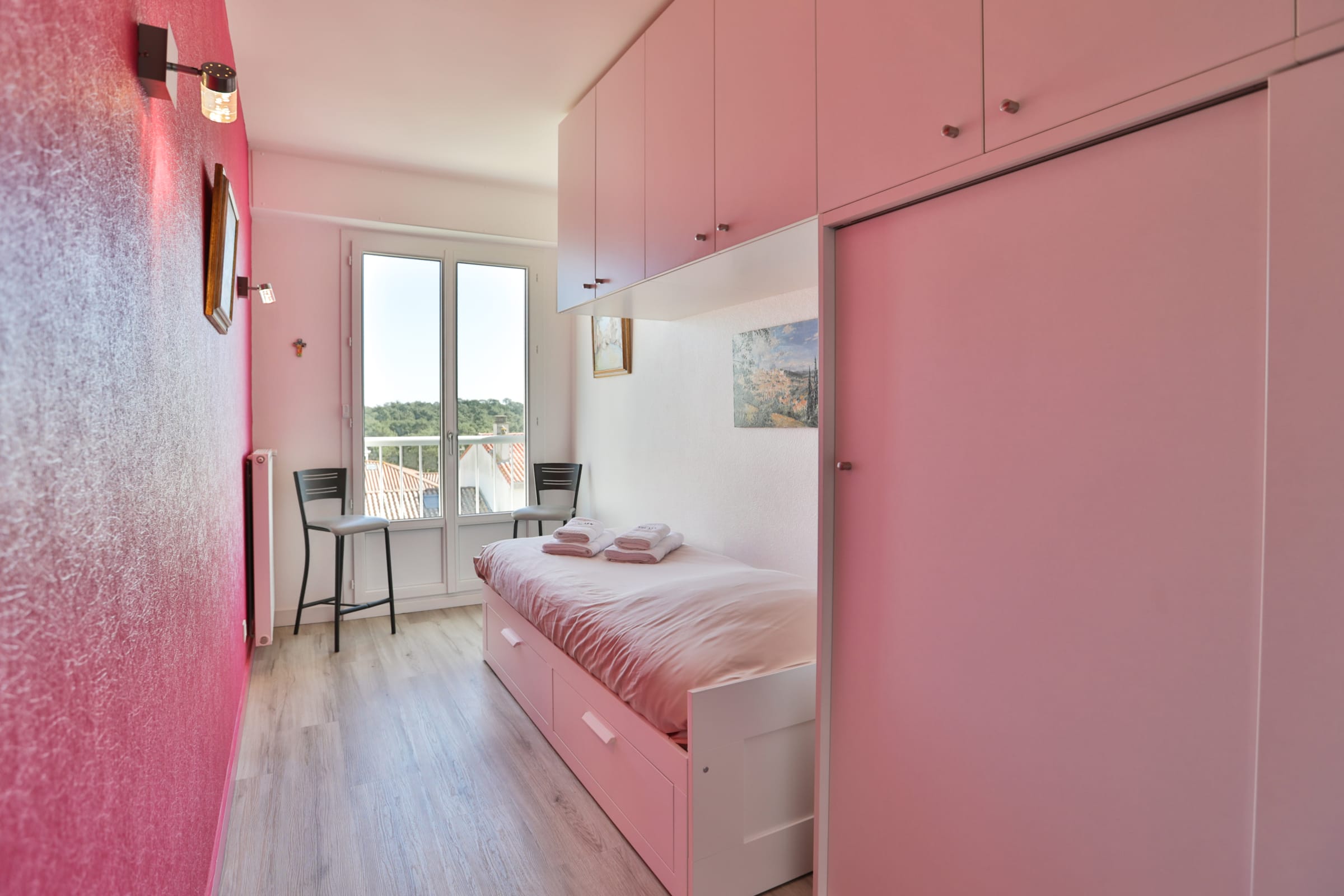 - d'une chambre avec un lit banquette en 80x200 extensible en lit double 160x200, au choix.
