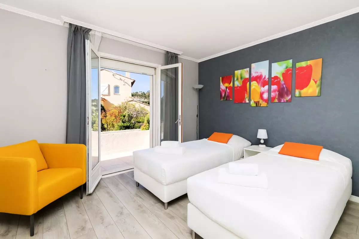 Located at the foot of the Esterel massif, 20 minutes by car from the beaches, 30 minutes from the center of Cannes, Fréjus and Saint-Raphaël, 40 minutes from Nice, it offers you a view of the bay of Cannes and the Esterel massif.