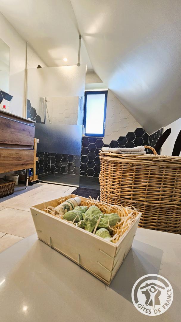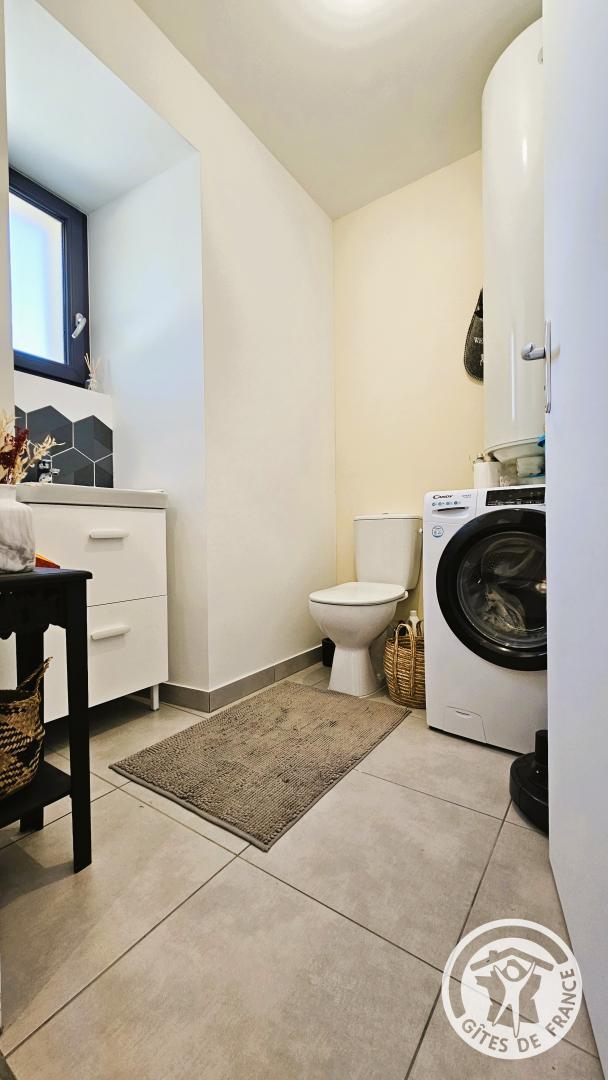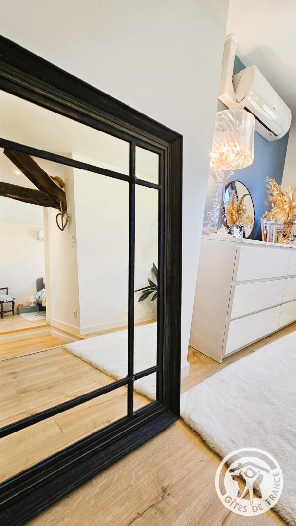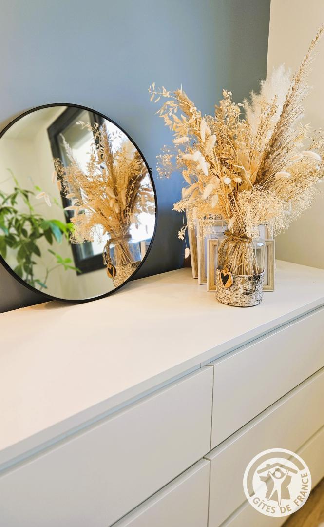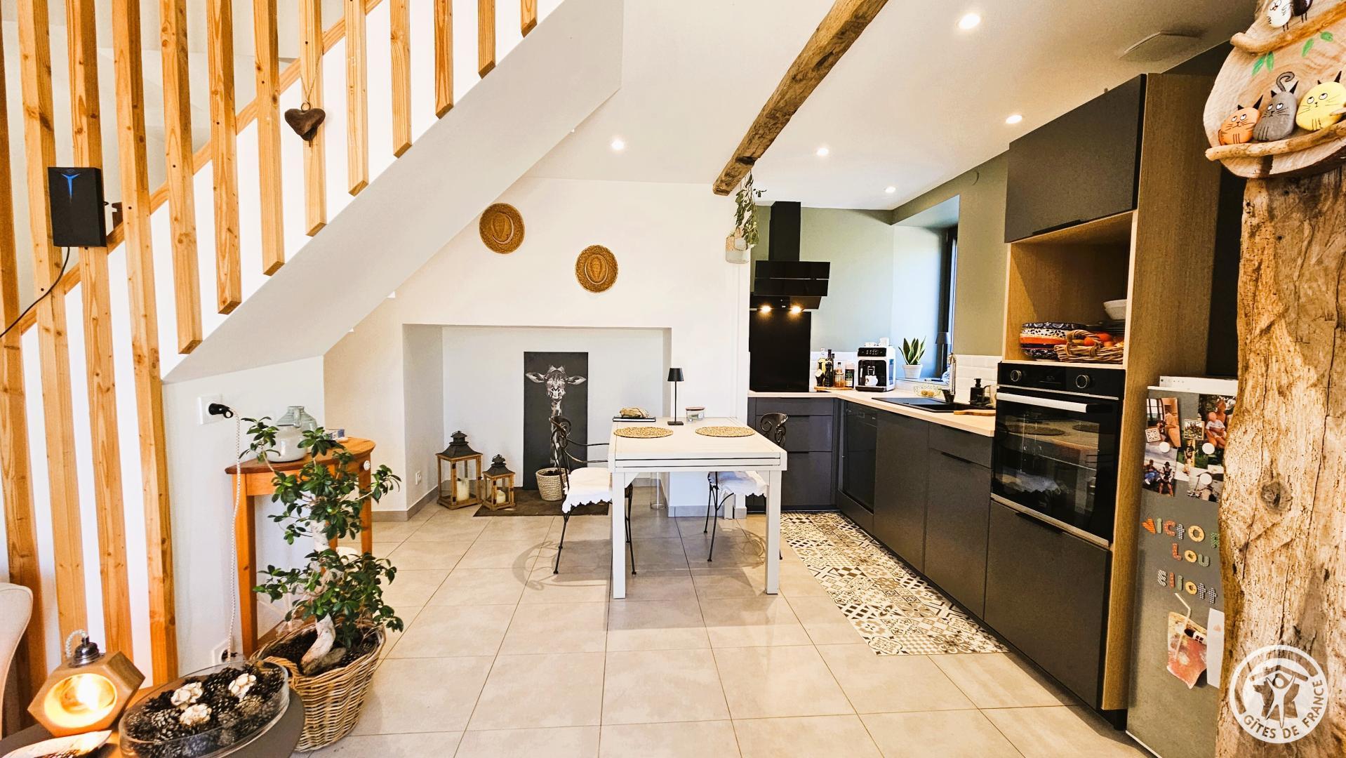 From the moment you step inside, a soothing atmosphere invites you to relax. The bright living room has been designed for the comfort and simplicity of stays for two: a fully equipped open-plan kitchen, a cozy living room, and harmonious decor create a space where you immediately feel at ease.