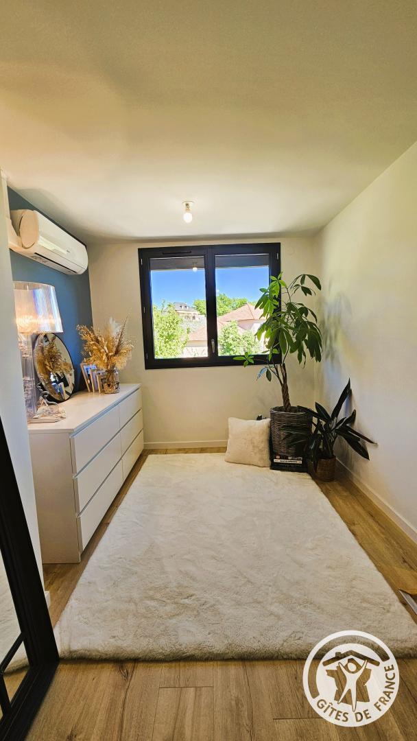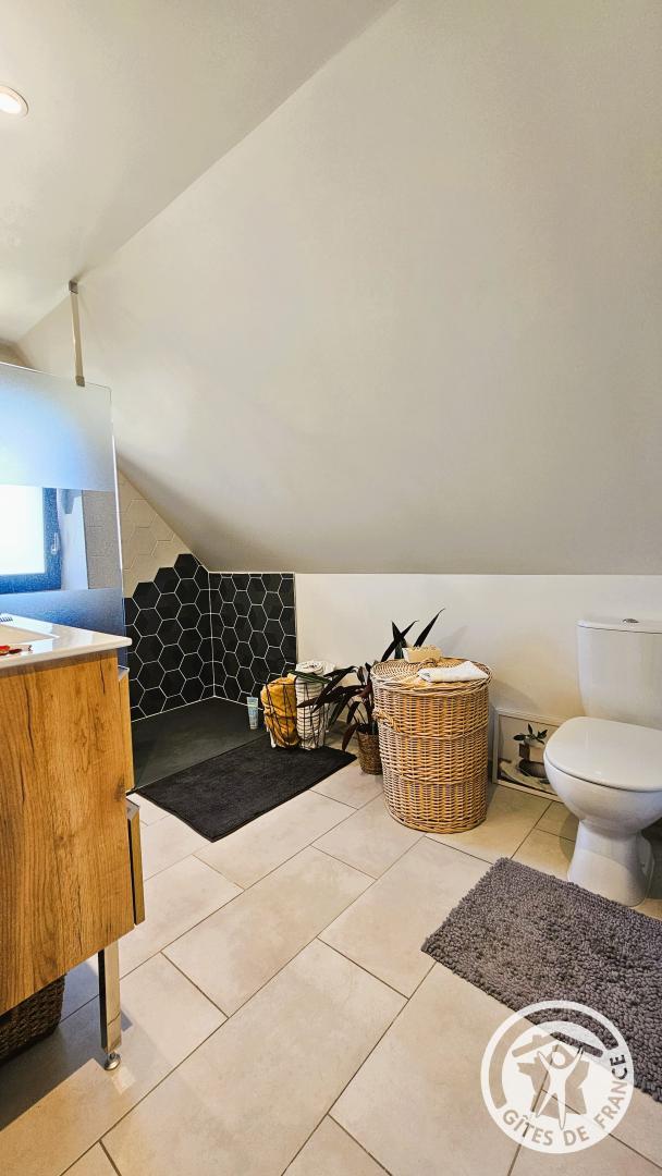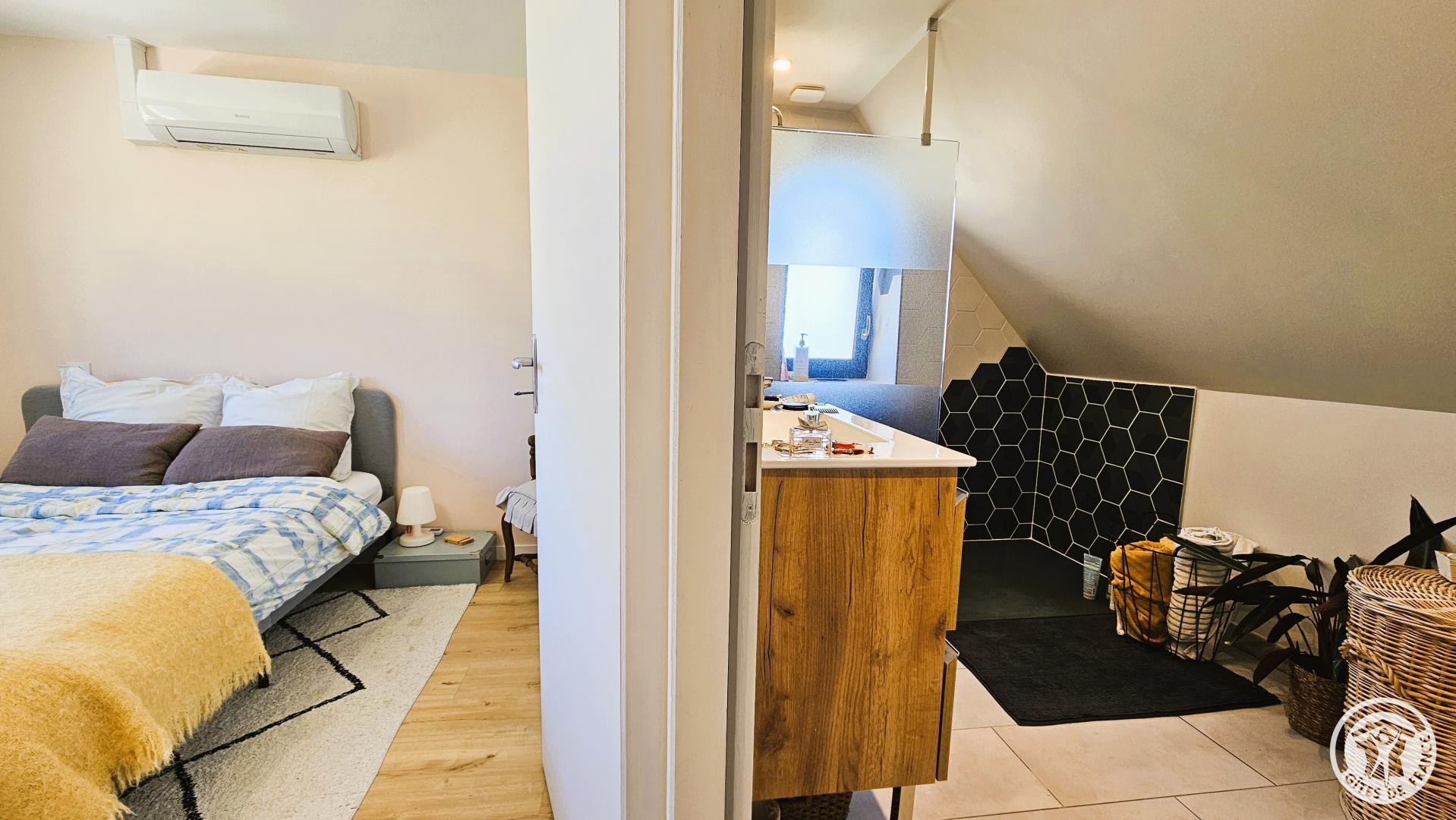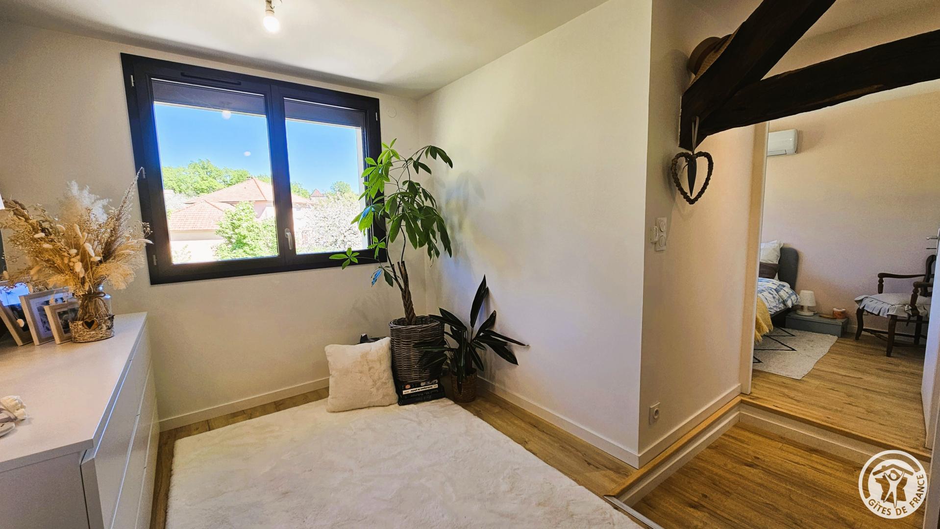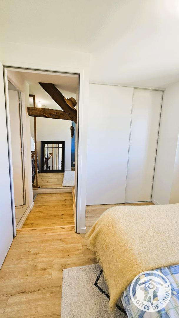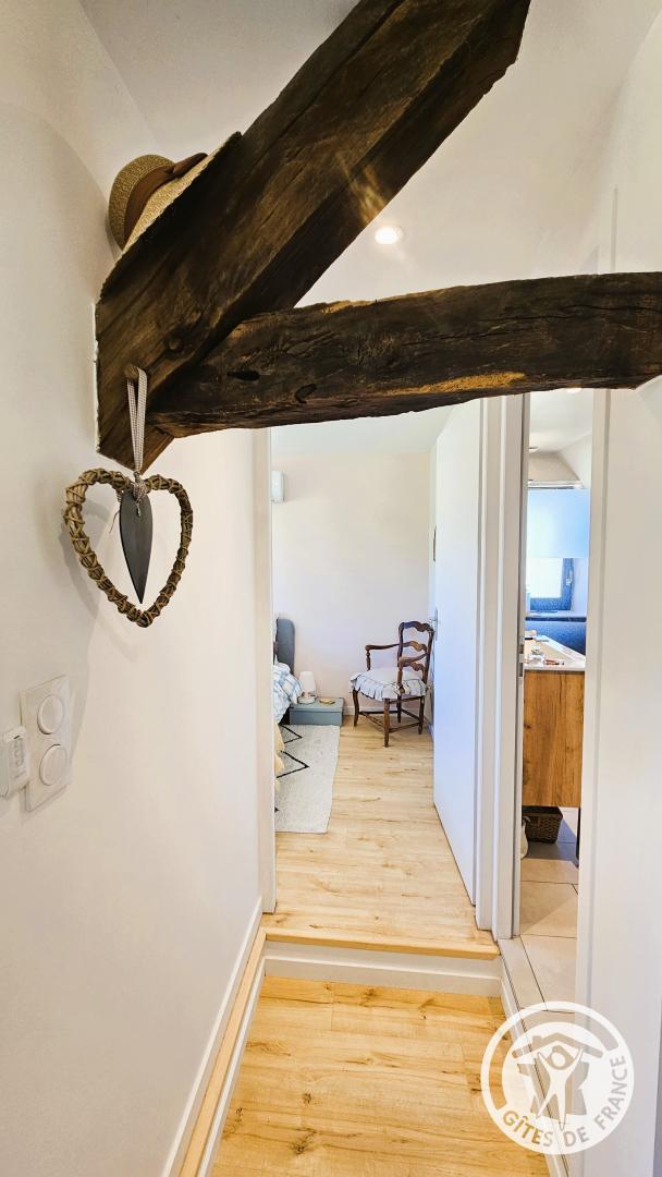Upstairs, you'll find the sleeping area, consisting of a bedroom with a double bed (140 cm). This floor also benefits from reversible air conditioning, ensuring comfortable temperatures year-round. You'll also find a shower room with a toilet and a small sitting area, ideal for reading or relaxing. Located in the village of Ussac, this cottage for two welcomes you to a charming, detached house, tastefully decorated in a warm and contemporary style. Situated near the owners' house, it offers a perfect balance of peace, security, and privacy.