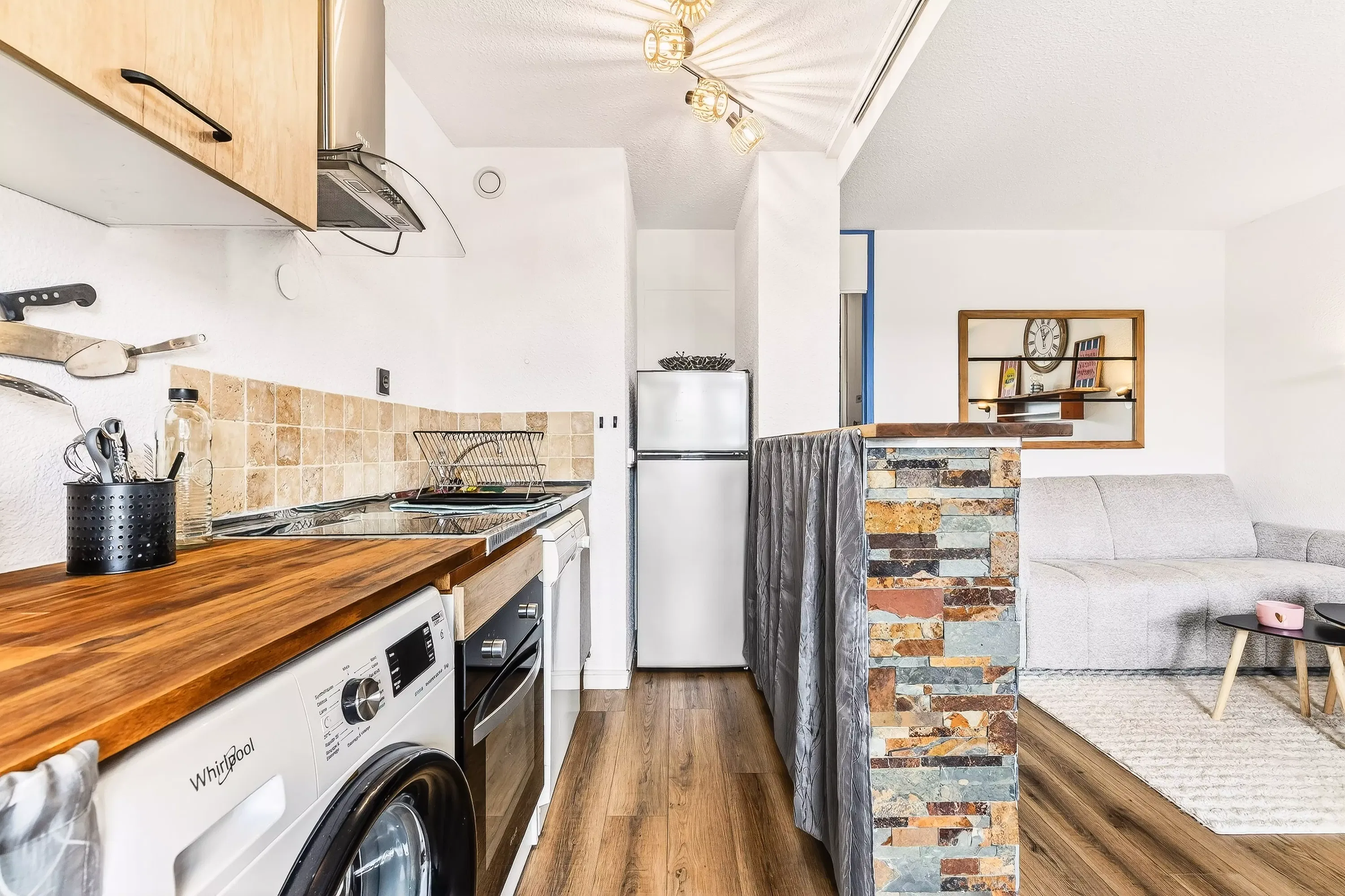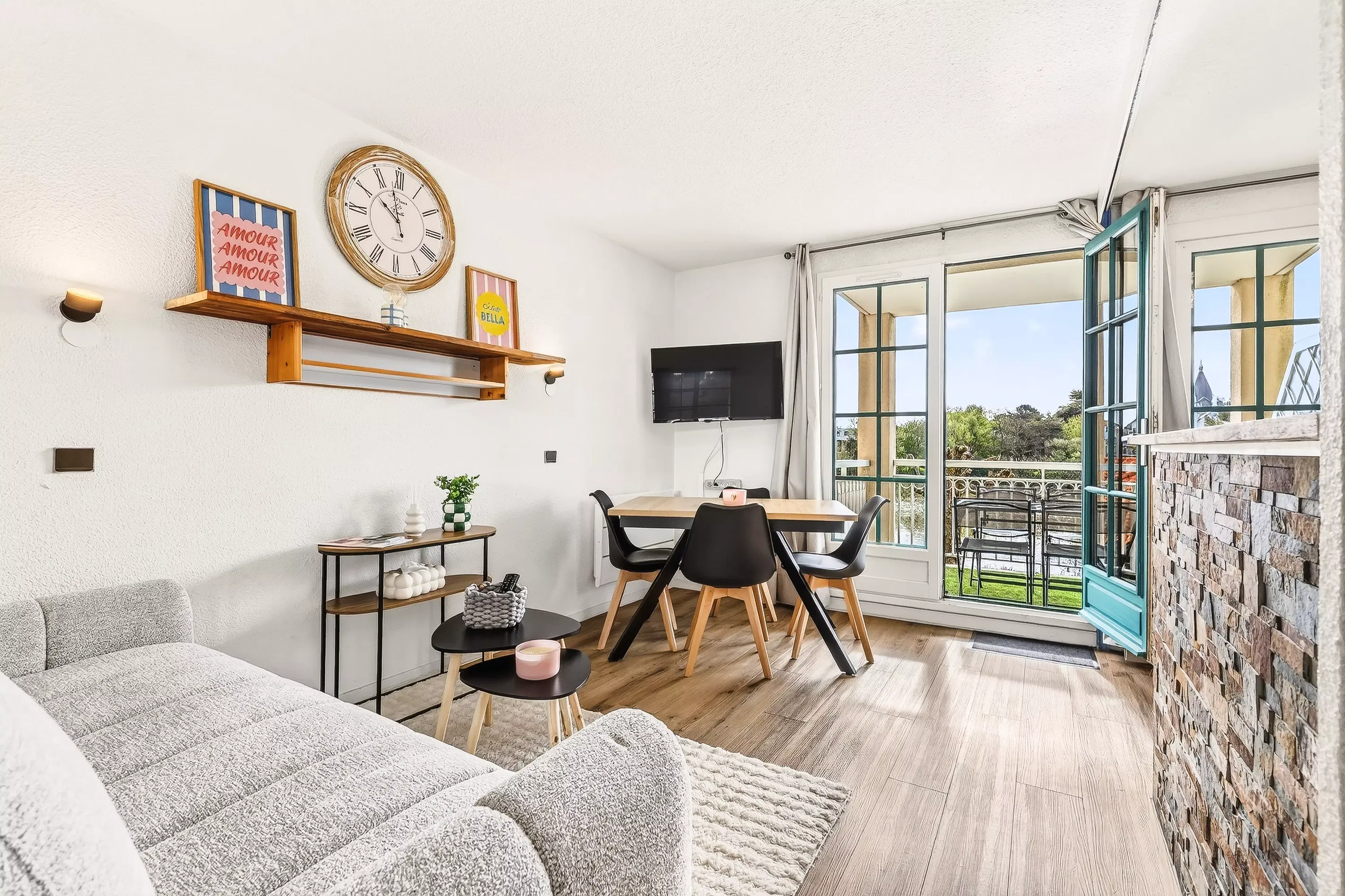 Located on the floor, this one-bedroom apartment enjoys a convenient location in the heart of the village center. Shops and activities are easily accessible on foot, making it a comfortable address for a simple and easy-to-organize stay.