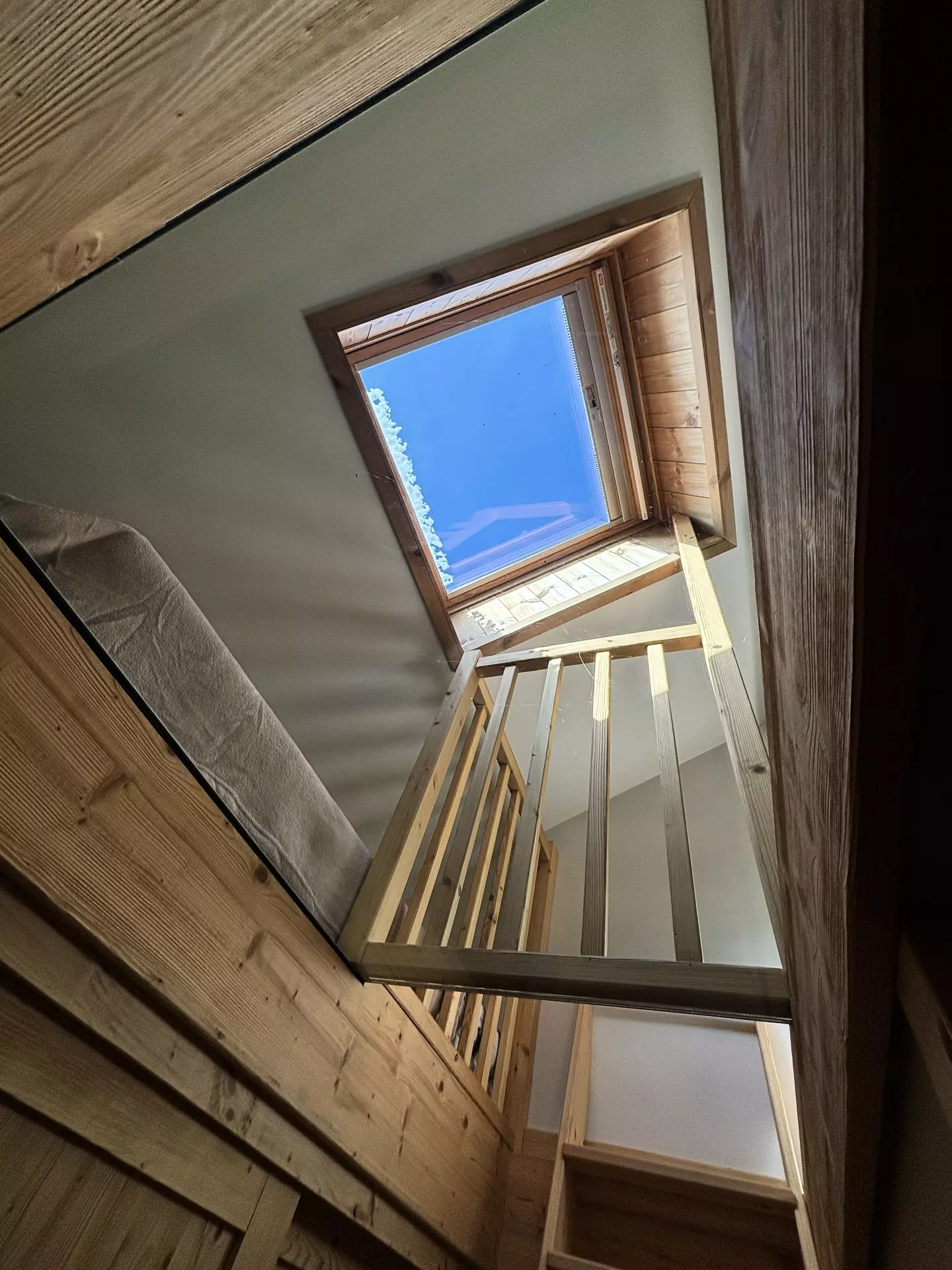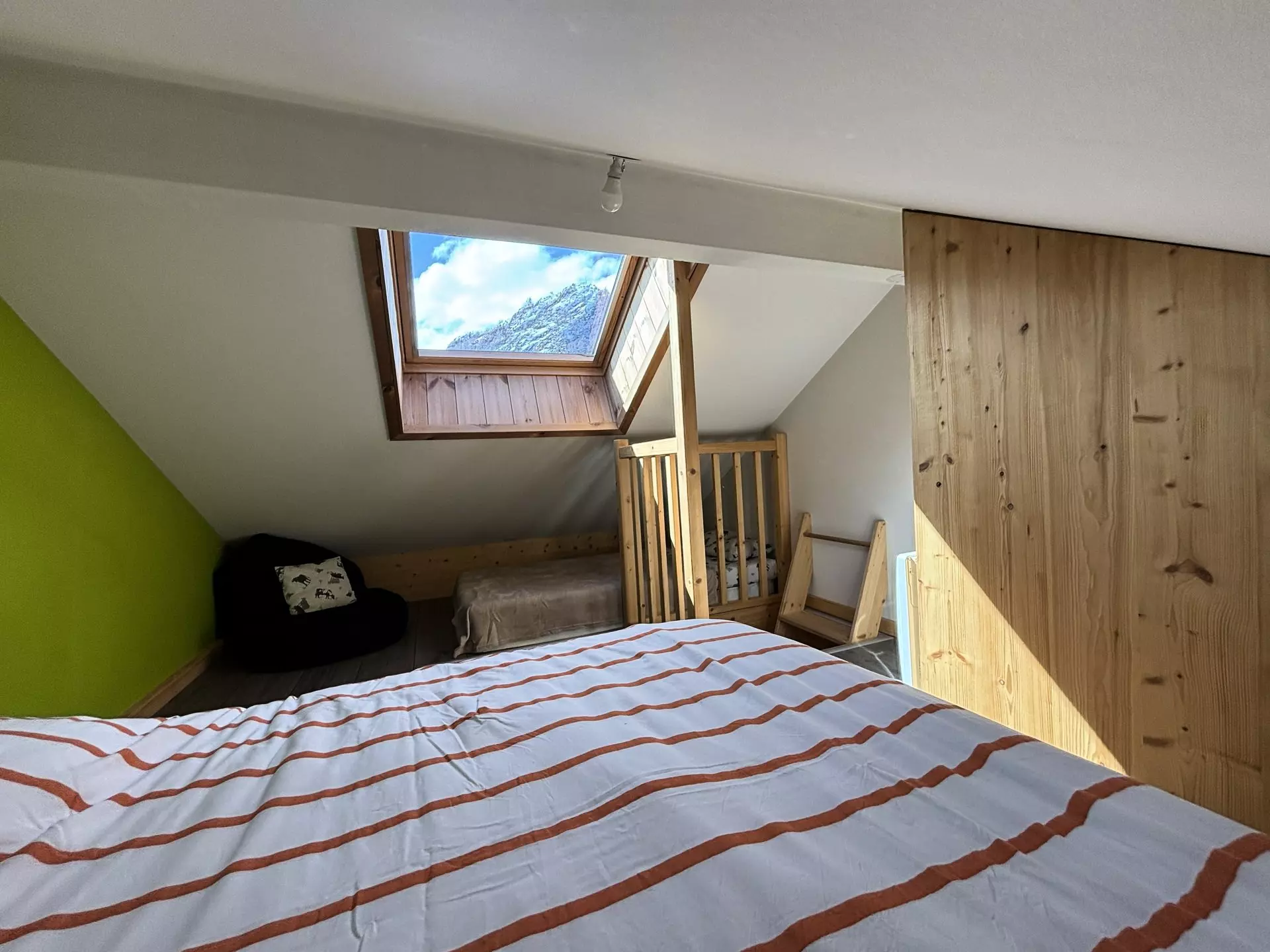Mezzanine (Level 2 / 10m²/South) accessible via a miller's ladder (not recommended for children): 1 double bed (140x190cm) + 1 single bed (90x190cm)