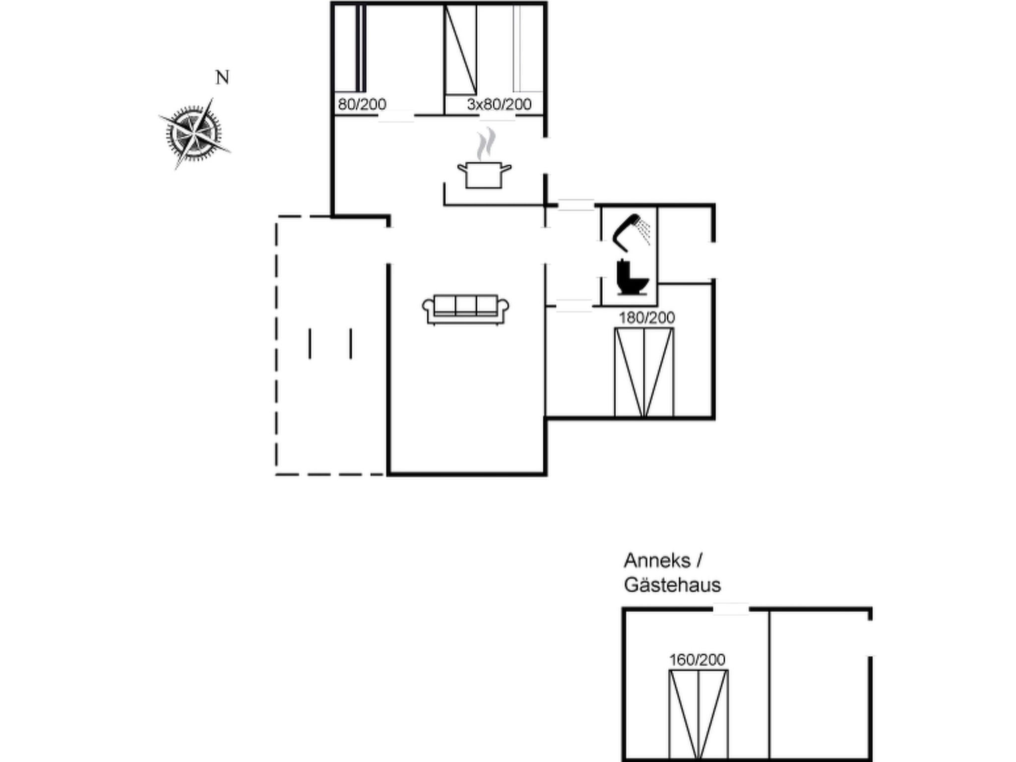 Single-family house, built in 1972. 75 m from the sea. Private: property 1'014 m2, well-kept garden. Outdoor shower, terrace (25 m2), barbecue. In the house: washing machine, tumble dryer. Parking at the house. Grocery 2.1 km. Golf course 8.3 km. The owner does not accept any youth groups.