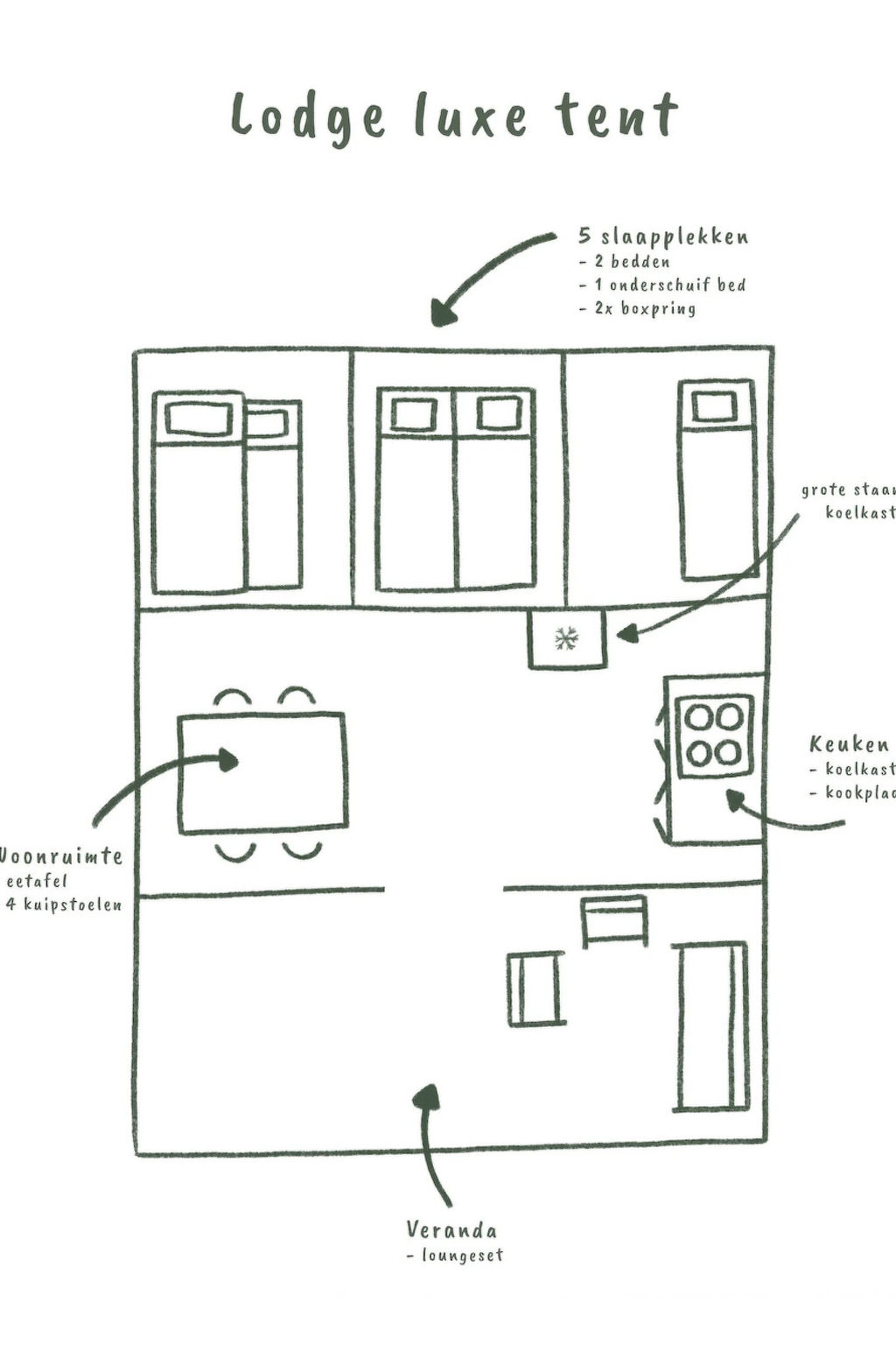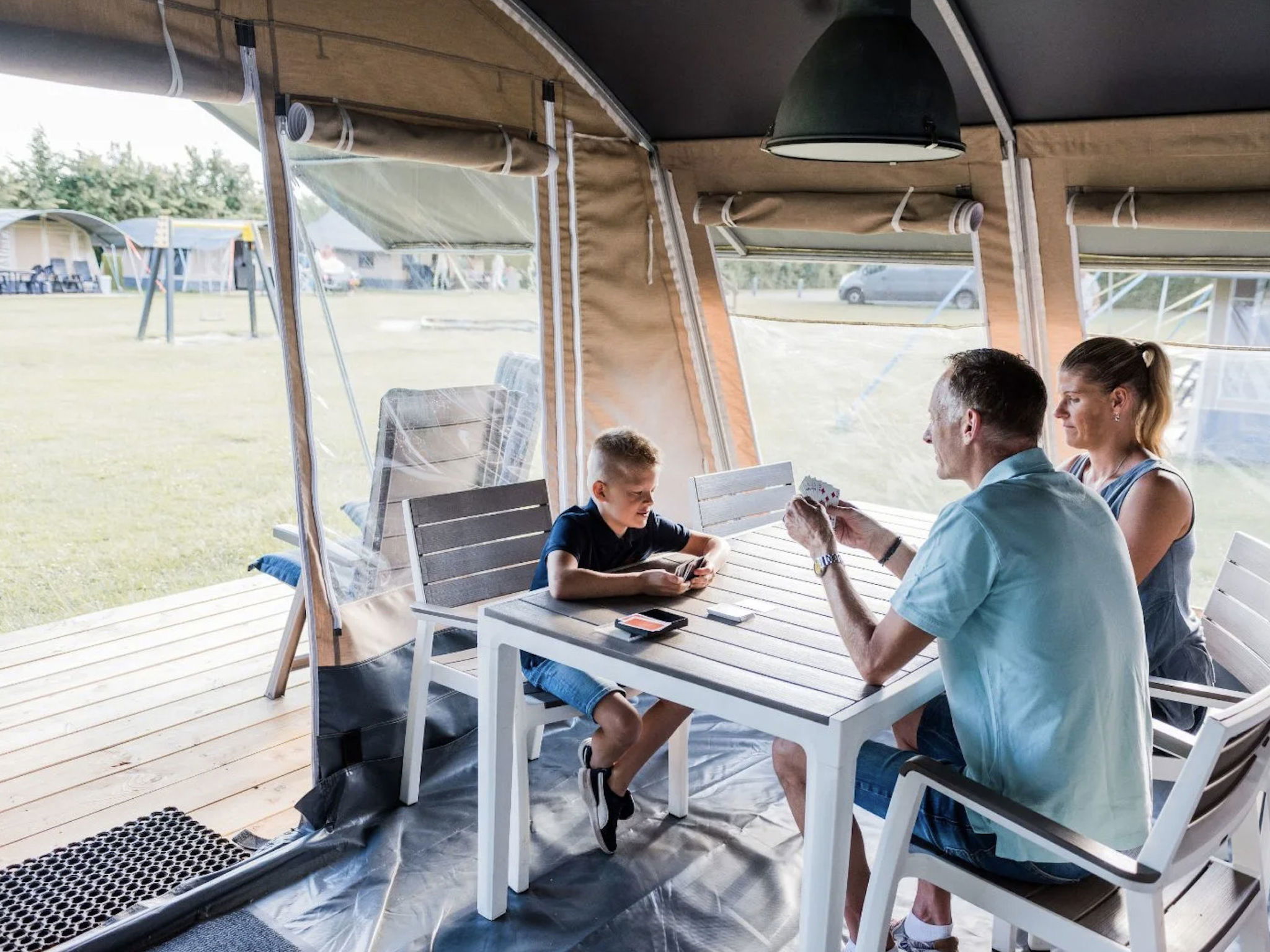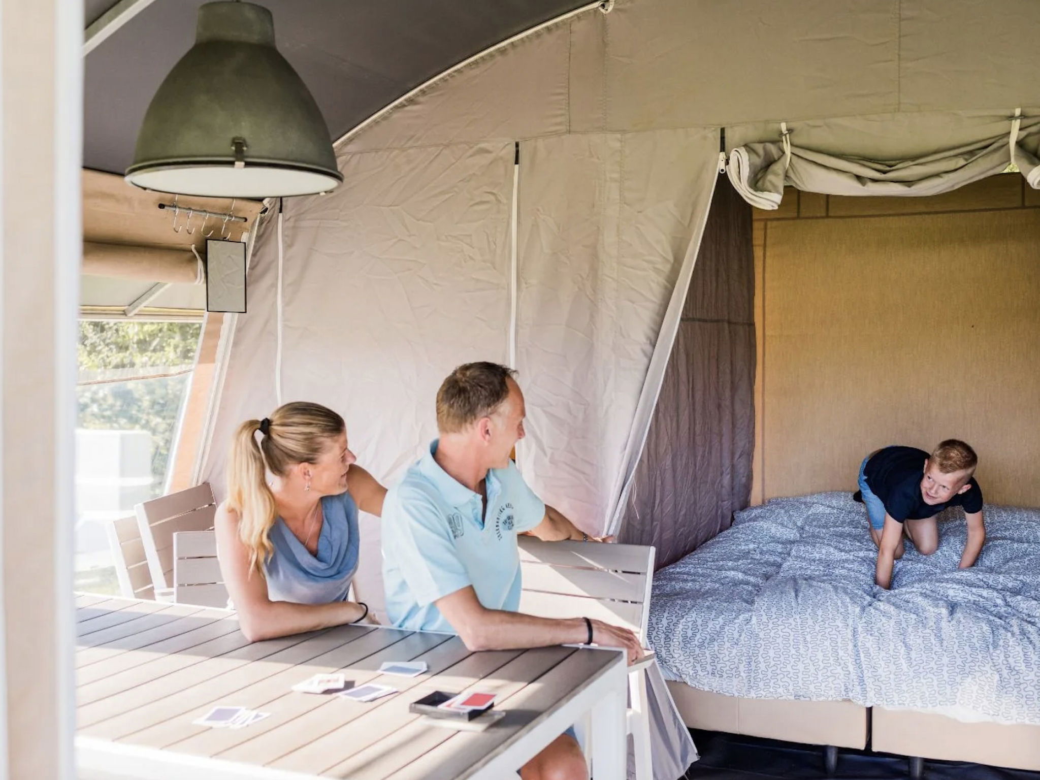 Whether the tent is on a platform or directly on the terrain, the Lodge de Luxe combines space, comfort, and cosiness.