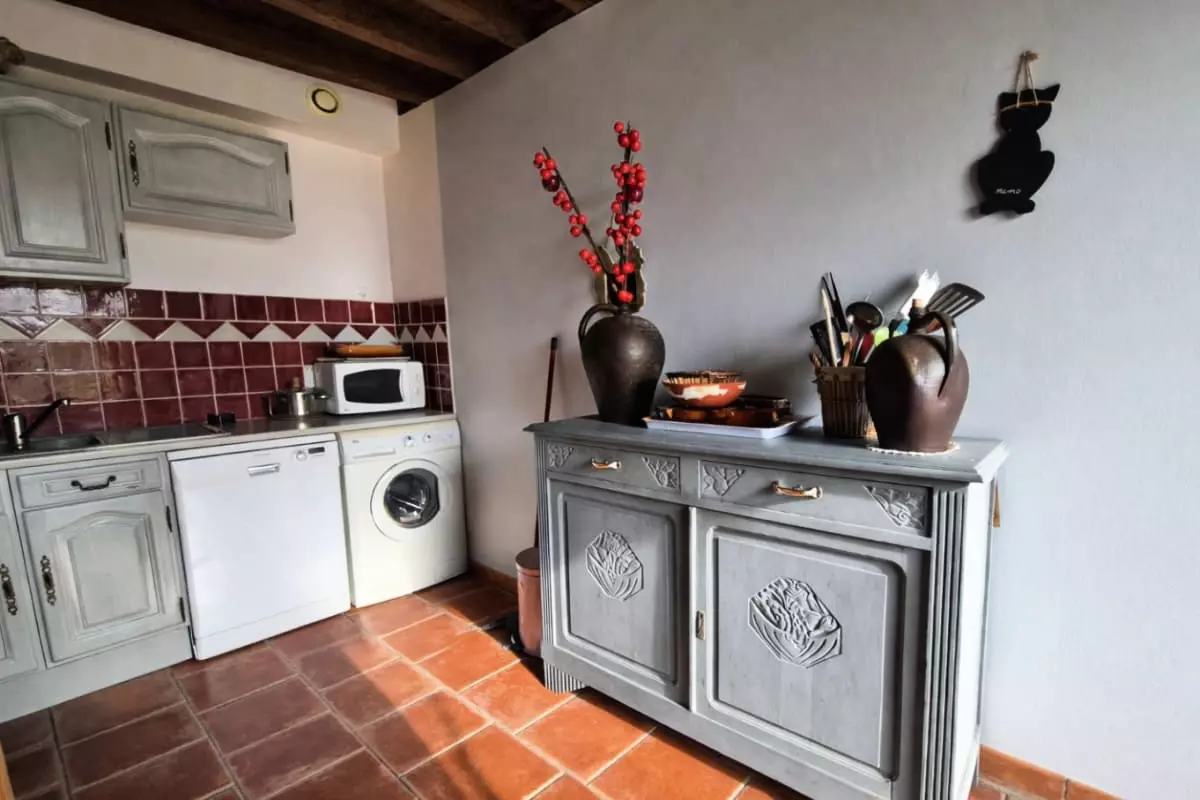 Located on the floor of a building without an elevator, this bright living space offers pleasant views and a private terrace, complemented by a garden with a barbecue for relaxing moments. The interior includes a living room with a sofa, two bathrooms, and a fully equipped kitchen with a refrigerator, dishwasher, microwave, coffee maker, raclette grill, and hot water.