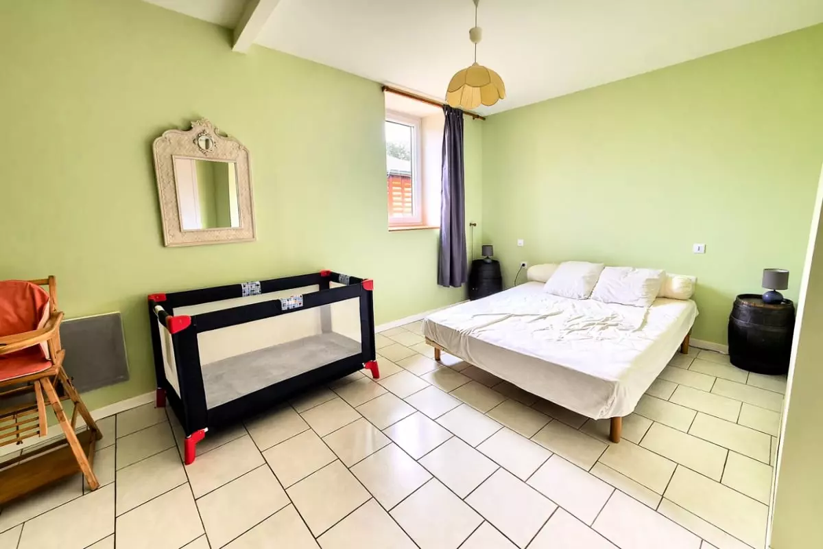 The accommodation is arranged around a bedroom with a double bed and a single bed, a second bedroom with a double bed and a baby bed, a third bedroom with a double bed and finally a fourth bedroom with two single beds.