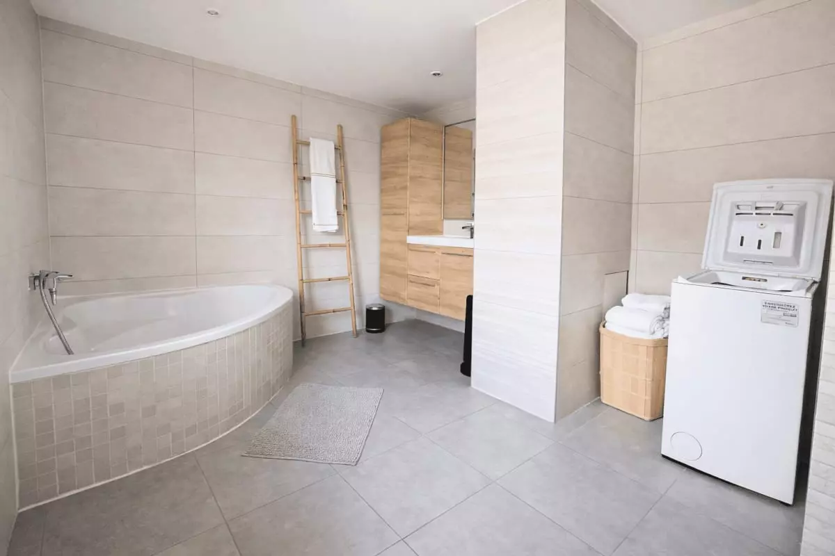 You will enjoy 2 functional bathrooms (+ 1 separate WC), a fully equipped open kitchen and a warm living room with a fireplace.