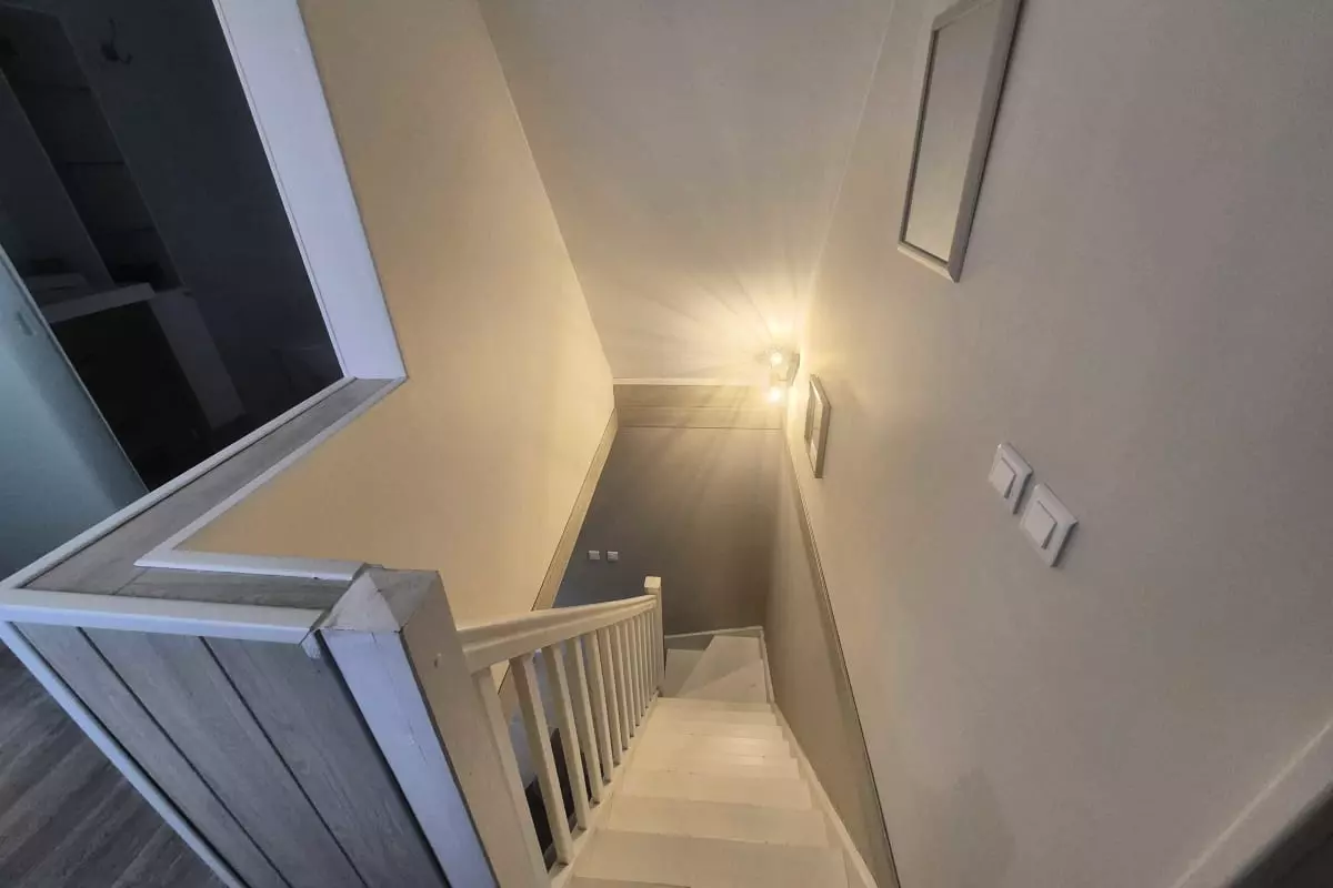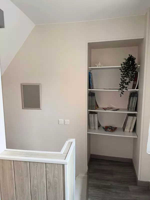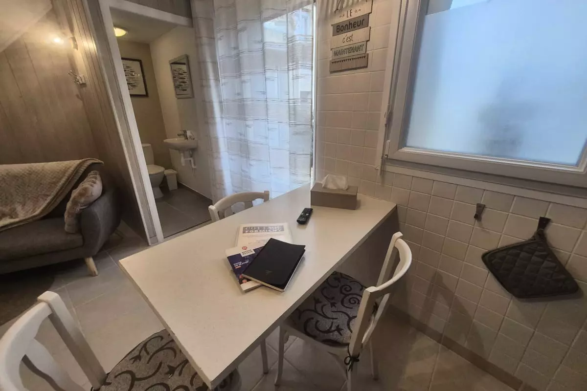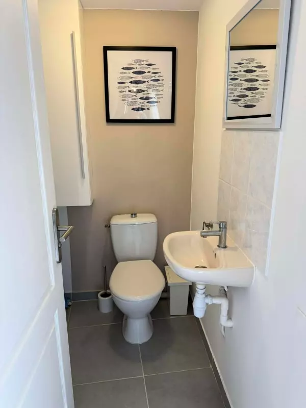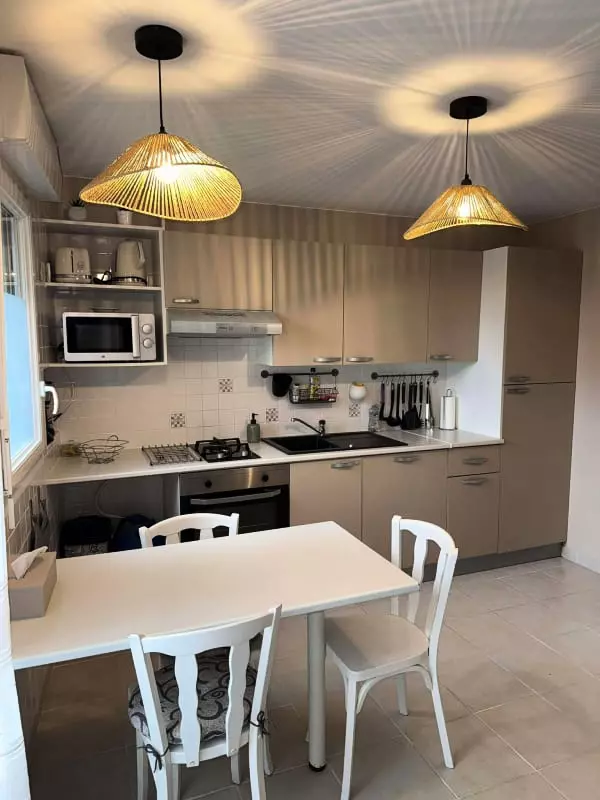 One of the house's strengths is its practicality. You'll appreciate the cozy interior. On the ground floor, you'll find a fully equipped open-plan kitchen (oven, microwave, dishwasher), a living/dining room with a sofa and flat-screen TV, as well as a laundry room with a toilet, washing machine, ironing board, and iron. A double bedroom with an en-suite shower room is also located on the ground floor. Upstairs, you'll find a large bedroom furnished with a 160x190cm double bed and an 80x190cm single bed, and a bathroom with a shower, sink, and toilet. You'll enjoy the enclosed courtyard, accessible to all three apartments, which features a barbecue, dining table, and chairs, thanks to its southwest exposure.
