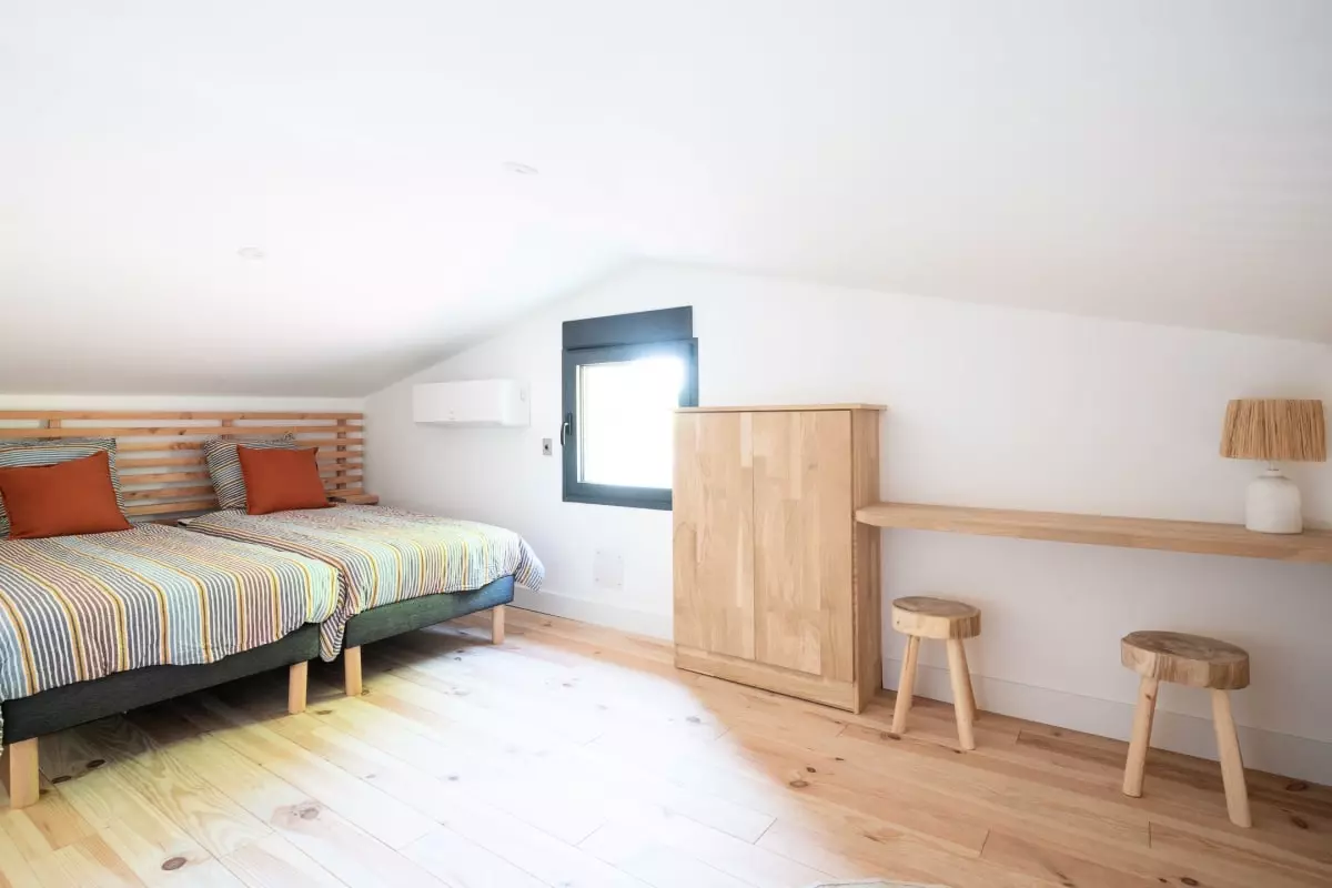The sleeping area consists of a bedroom with a large 160x200 bed, a second bedroom also with a 160x200 bed and a third bedroom with two single 90x200 beds.