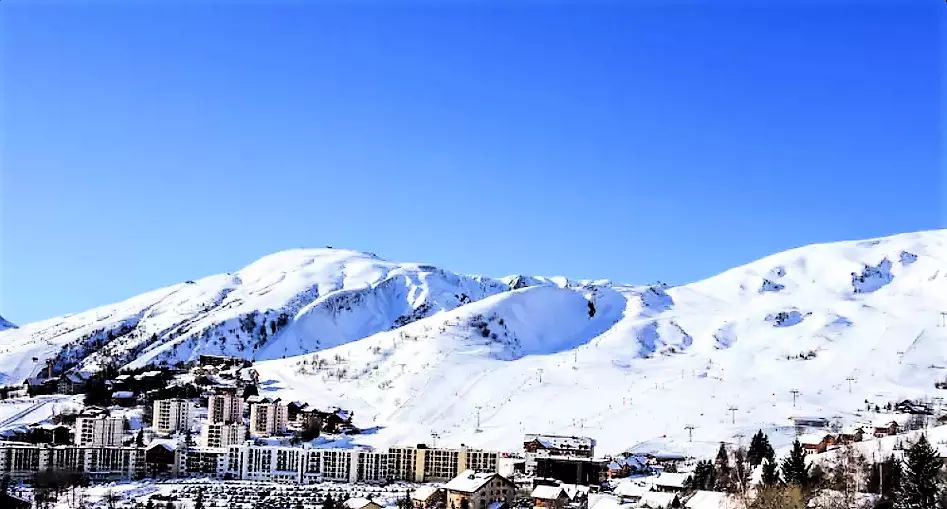 Charming 2-room apartment of 32m², for 5 people, in the Simiane residence in La Toussuire, located on the upper slopes, on the raised ground floor, south-facing balcony with breathtaking views of the slopes, the resort, and the Aiguilles d'Arves. Ski-in/ski-out access.