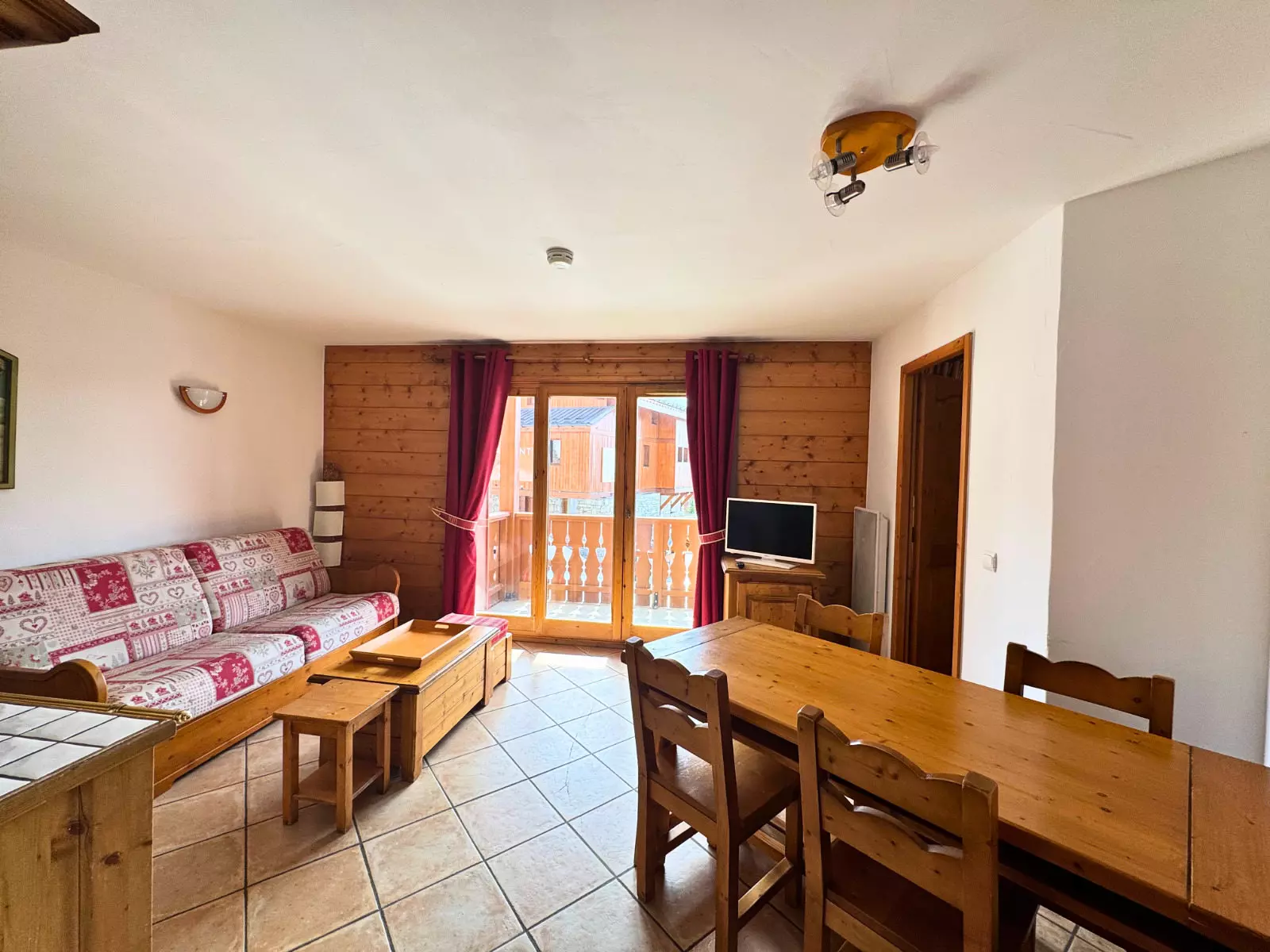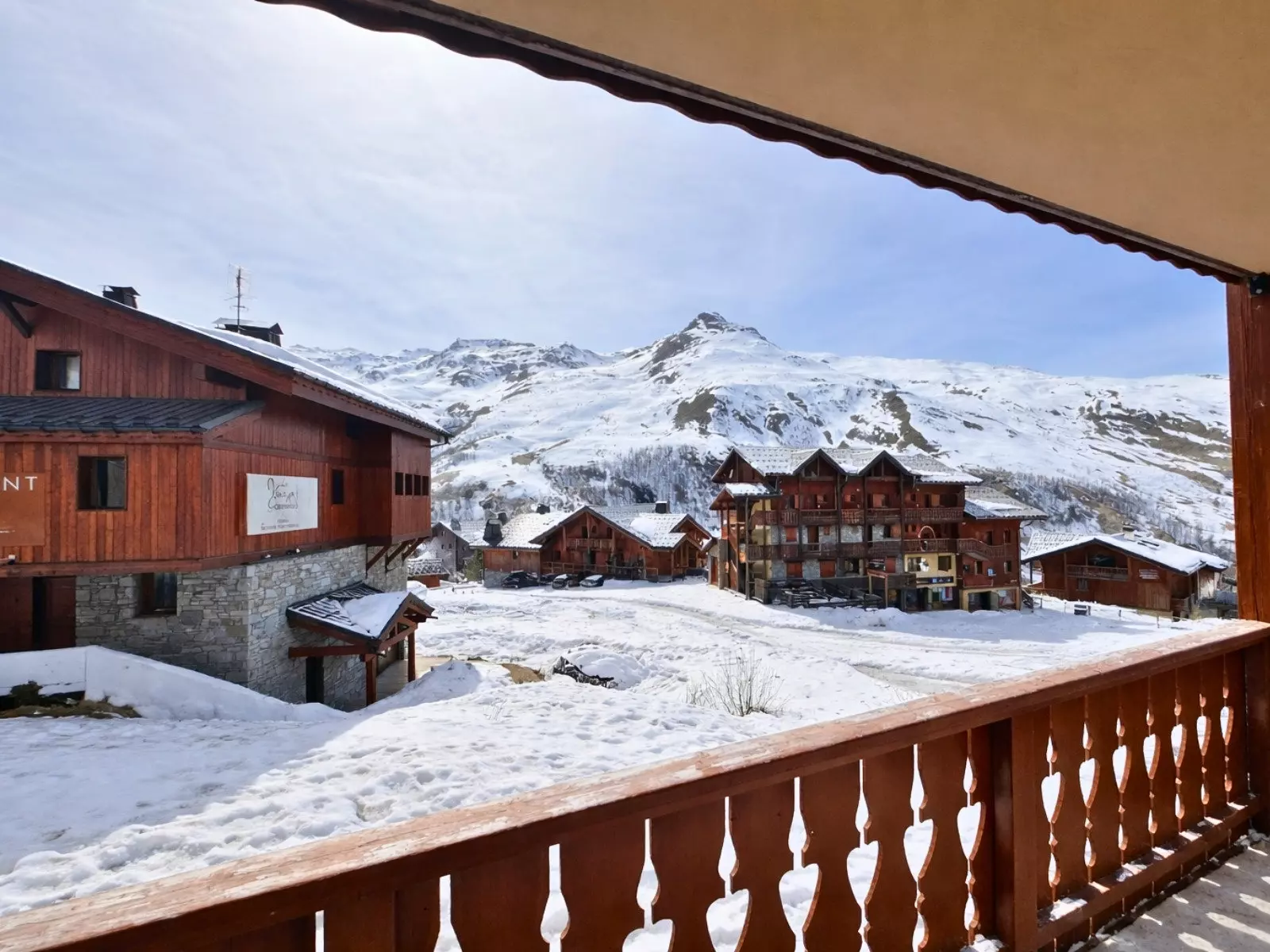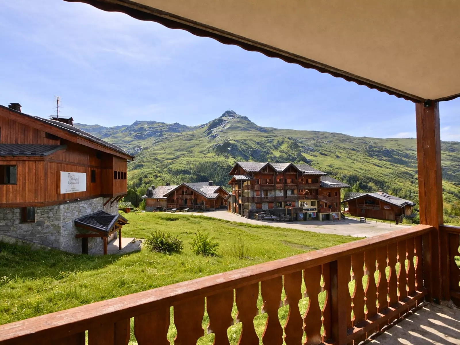 Residence Le Hameau des Airelles building Ancolie (N°11), 2-room cabin for 4 people 35m², on the ground floor, west-facing balcony, unobstructed view of La Masse and the Belleville Valley.