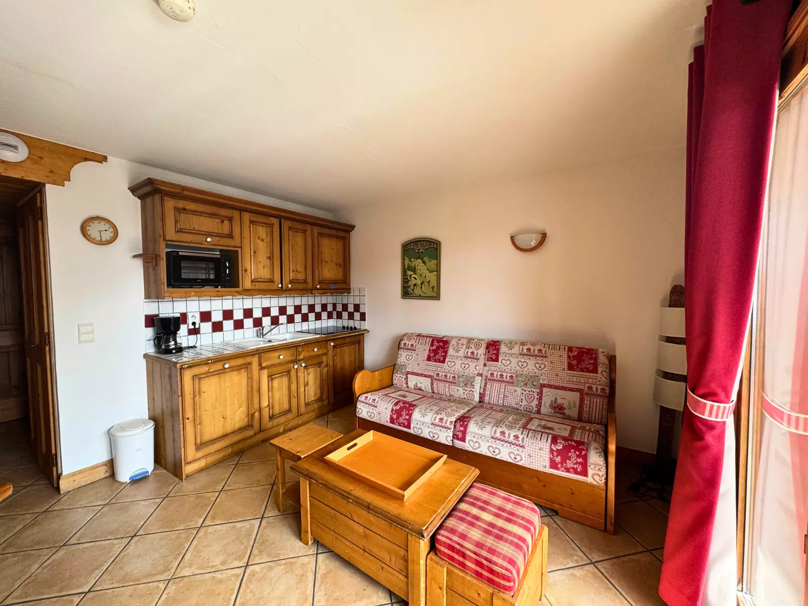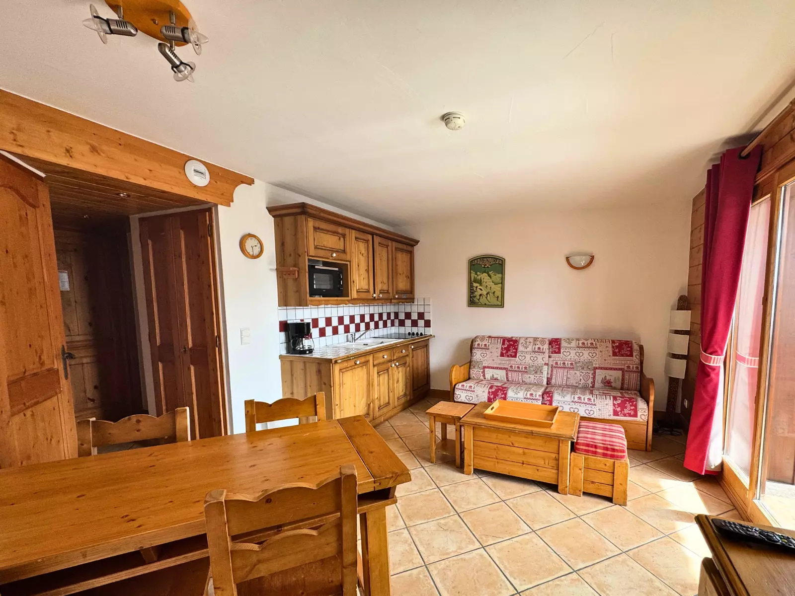 Open-plan kitchen/living room: ceramic hob (x4), microwave, oven, refrigerator, dishwasher, coffee maker, kettle, toaster