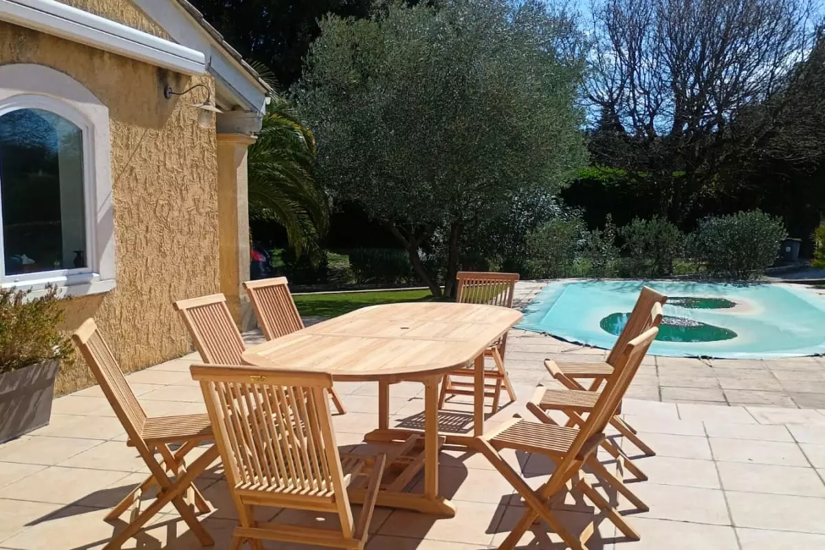 Beautiful air-conditioned house of 141 m² with private pool in Rochefort-du-Gard, near Avignon and the Pont du Gard. Ideal for 8 guests.