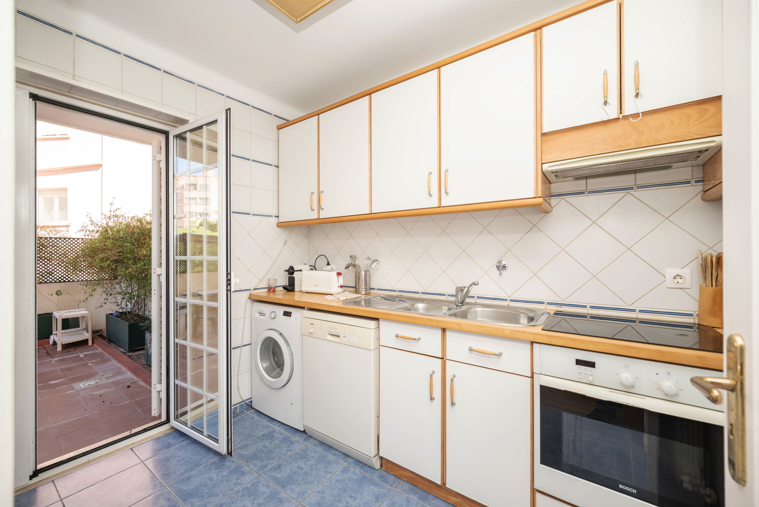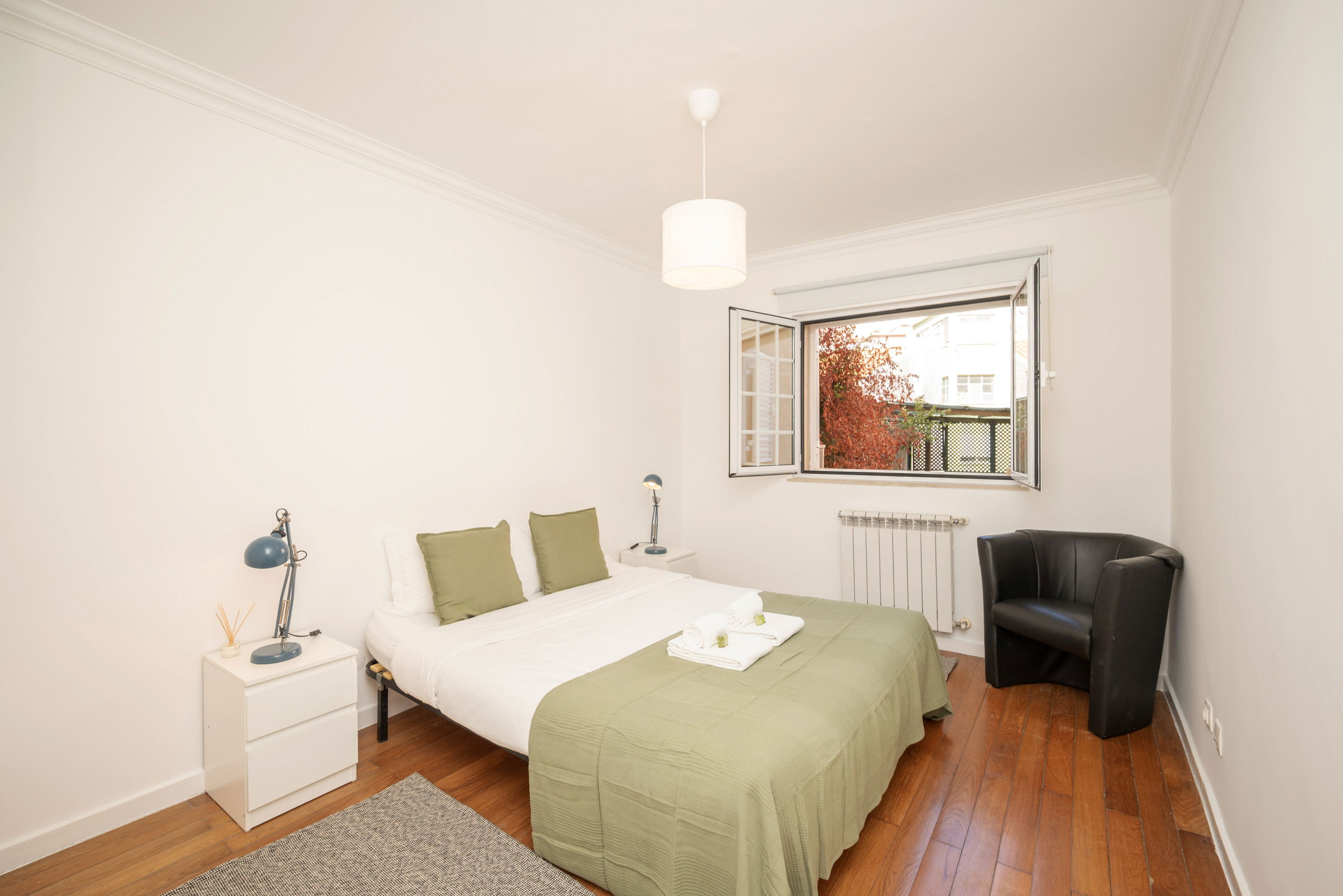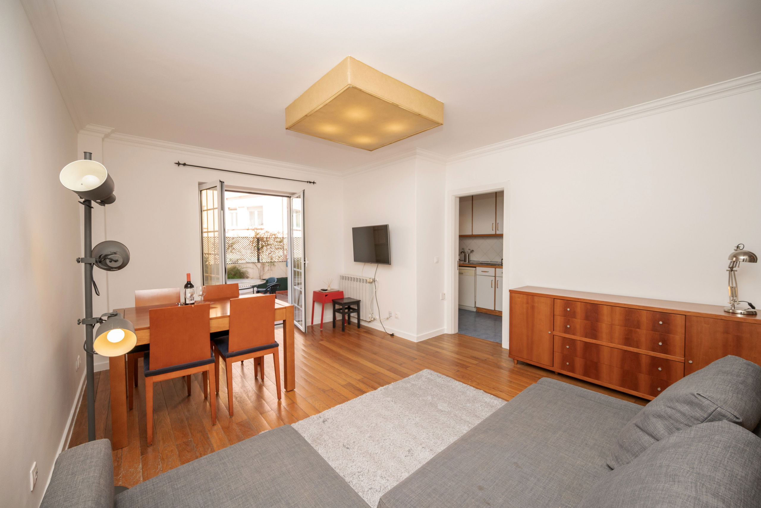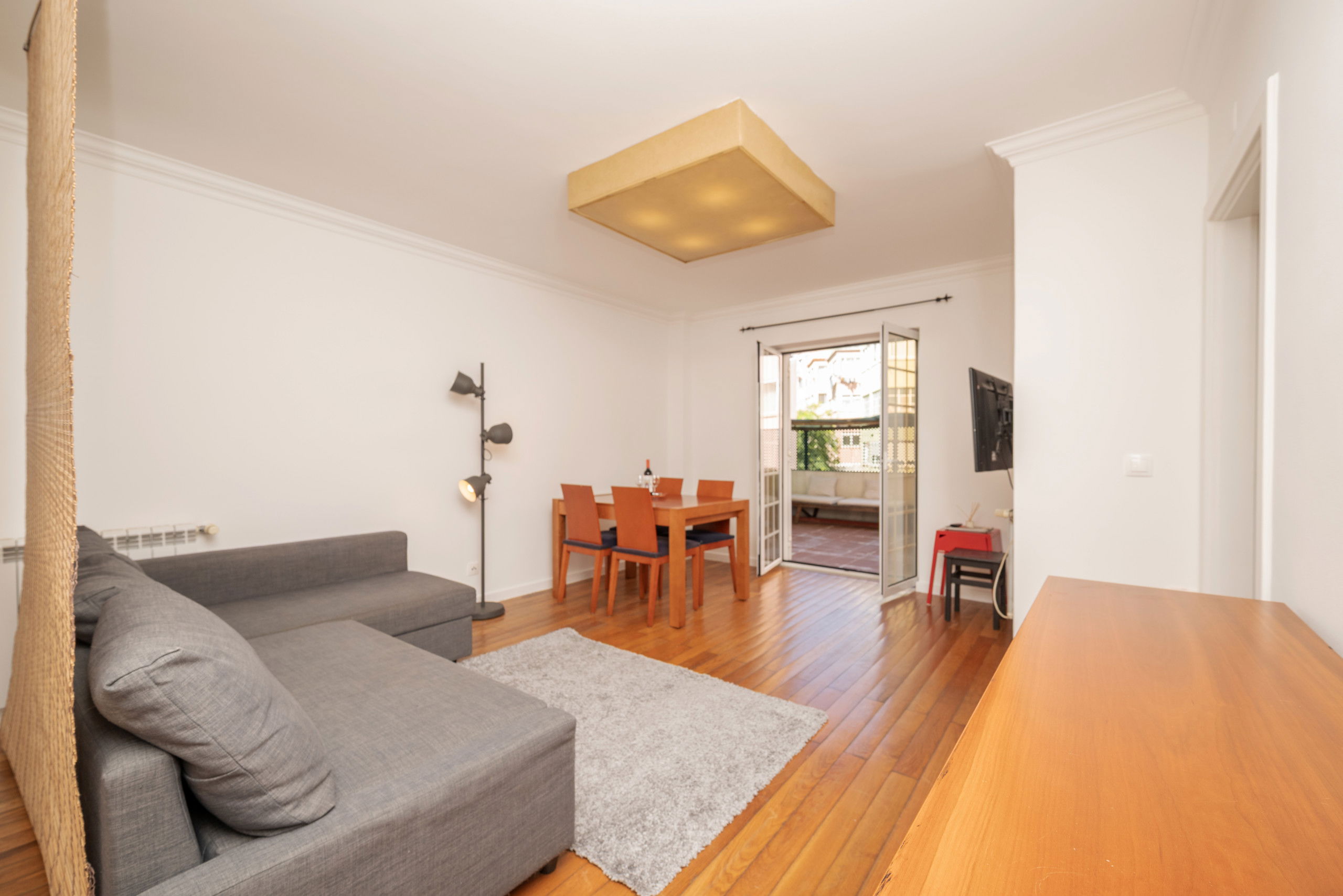 Stylish one-bedroom apartment in the heart of Campo de Ourique — perfect for short stays. The sunlit bedroom features a comfortable double bed, and the living room offers a roomy sofa bed to accommodate extra guests. The modern kitchen is fully equipped for home cooking, and the sleek bathroom includes a roomy shower. Step outside to a large private terrace ideal for breakfast, al fresco dinners, or relaxing with a glass of wine.