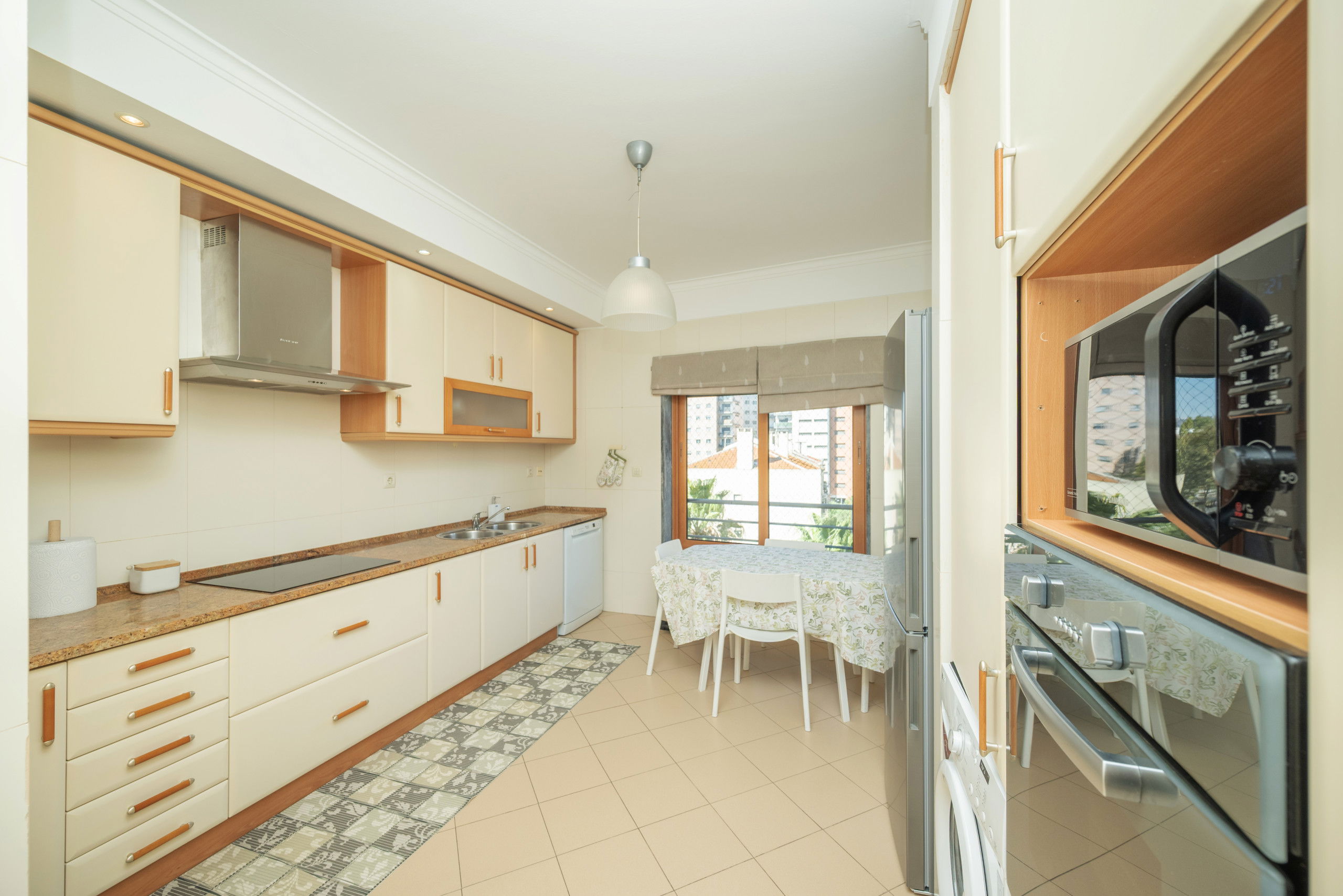 The independent kitchen, of induction, is equipped with refrigerator, microwave, oven, freezer, dishwasher, dishes/cutlery, kitchen utensils, coffee machine, toaster and kettle.