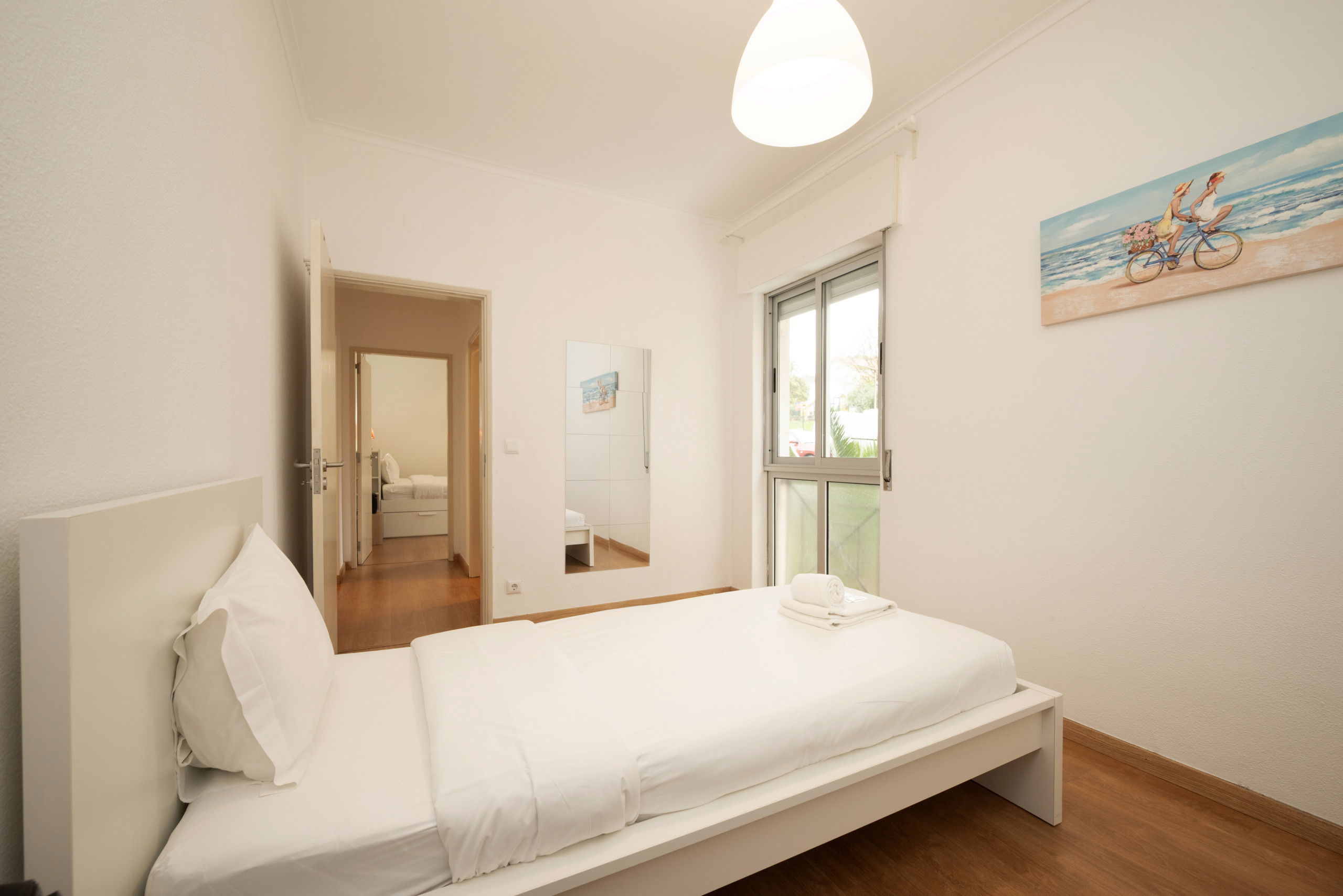 The apartment in Queluz has 3 bedrooms and capacity for 6 people.