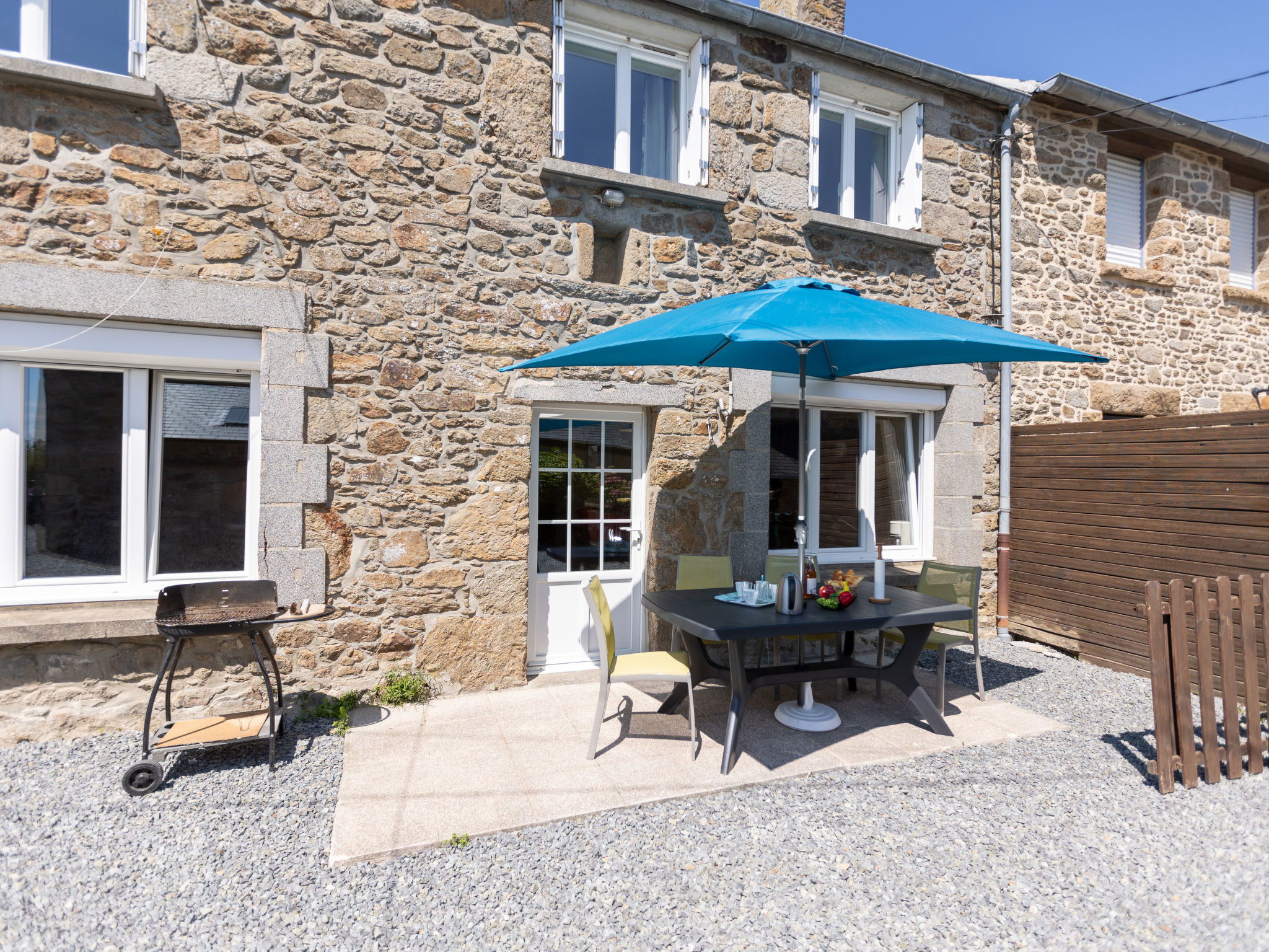 St Coulomb 4 km from Cancale: Cosy house "La Maison de Léa", terraced, surrounded by fields. In the hamlet Le Champin, in a quiet position in the residential district, 1.7 km from the sea, 1.7 km from the beach, north-east facing position. Private: natural state property 300 m2, courtyard. In the house: storage room for bicycles. Parking (for 3 cars) on the premises. Shop 2 km, grocery 2 km, supermarket 3 km, restaurant 4 km, bakery 2.3 km, bus stop "St Coulomb" 300 m, sandy beach "Fort Duguesclin" 1.7 km, thermal baths "Les Thermes marins de Saint Malo" 9 km. Riding stable 4 km. Nearby attractions: Saint Malo 10 km, Cancale 4 km, Le Mont Saint Michel 50 km, Dinard 36 km, Dinan 20 km, l'aquarium de St Malo 15 km. Hiking paths: Côte d'Emeraude, Sentier de randonnée GR 34, Baie du Mont St Michel. Please note: car recommended. The keys‘ handover takes place by the agency in Cancale, 4 km.