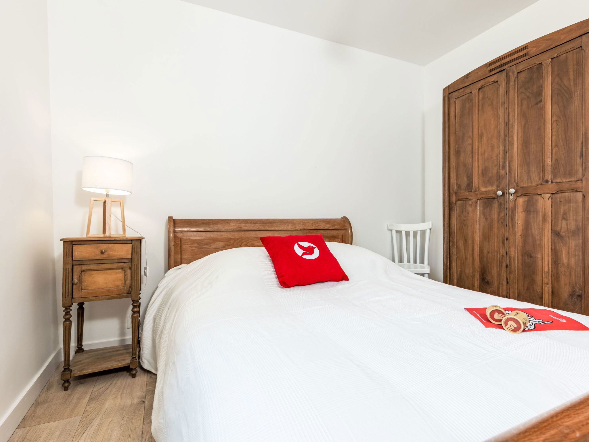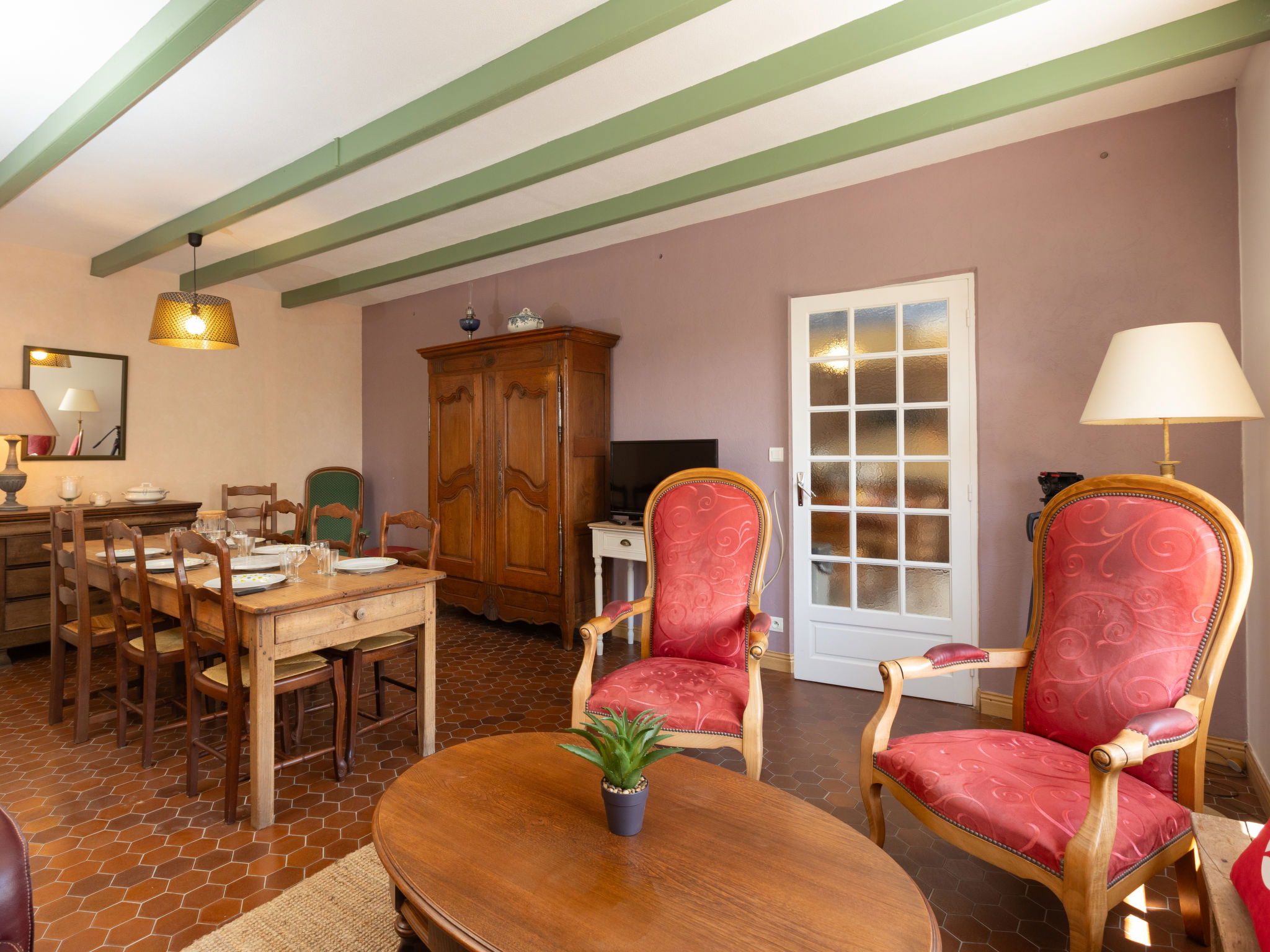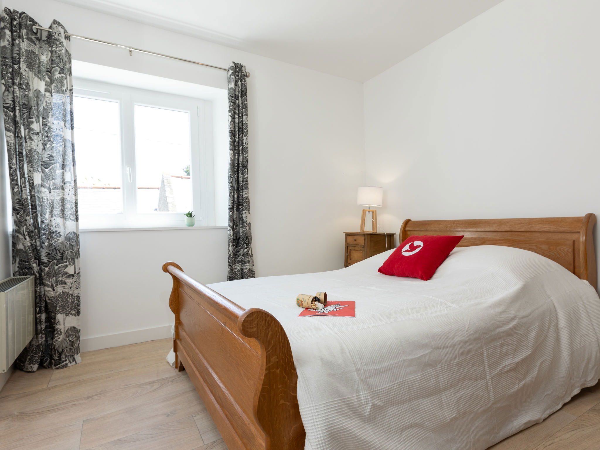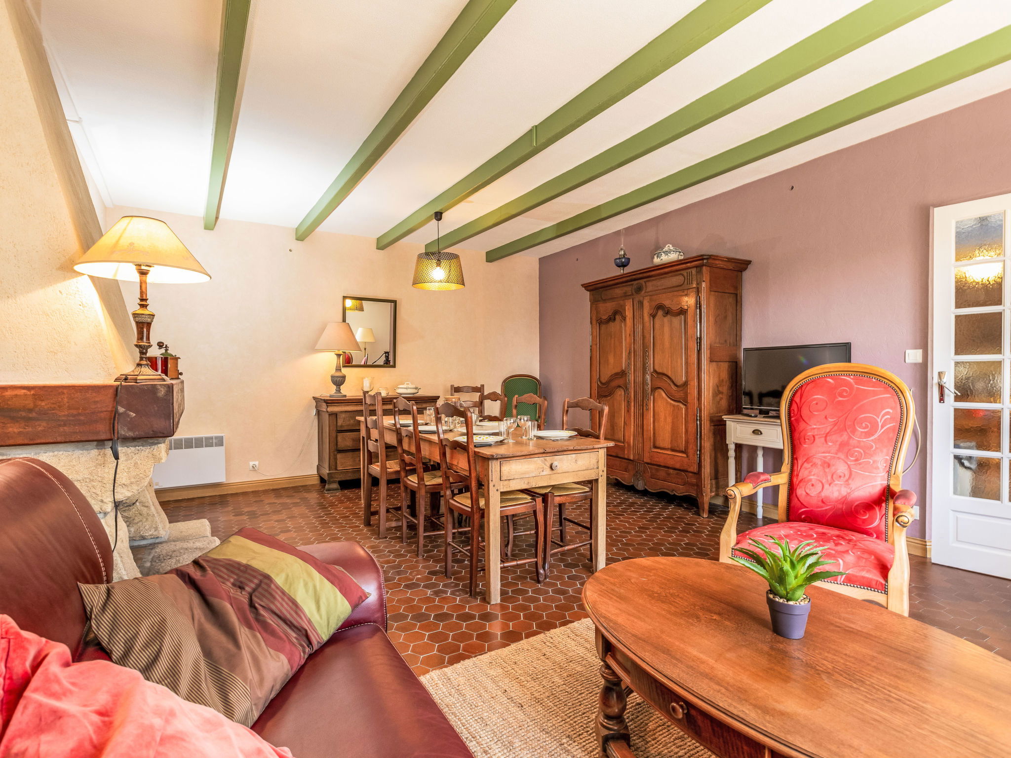 "La Maison de Léa", 4-room terraced house 86 m2 on 2 levels. Beautiful and cosy furnishings: living/dining room with TV (flat screen). Large kitchen (oven, dishwasher, 4 ceramic glass hob hotplates, kettle, microwave, freezer, electric coffee machine). Exit to the terrace. Upper floor: 3 rooms, each room with 1 french bed (1 x 140 cm, length 190 cm). Shower, sep. WC. Electric heating. Terrace, south facing position and west facing position, large garden, lawn, large porch. Terrace furniture, barbecue. View of the garden. Facilities: washing machine. Parking (3 cars). Please note: non-smoking house. Maximum 1 small pet/ dog allowed. Smoke alarm. Offer by a private individual according to Art. 155, IV of CGI.