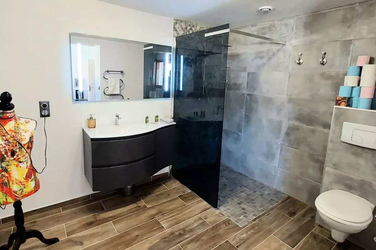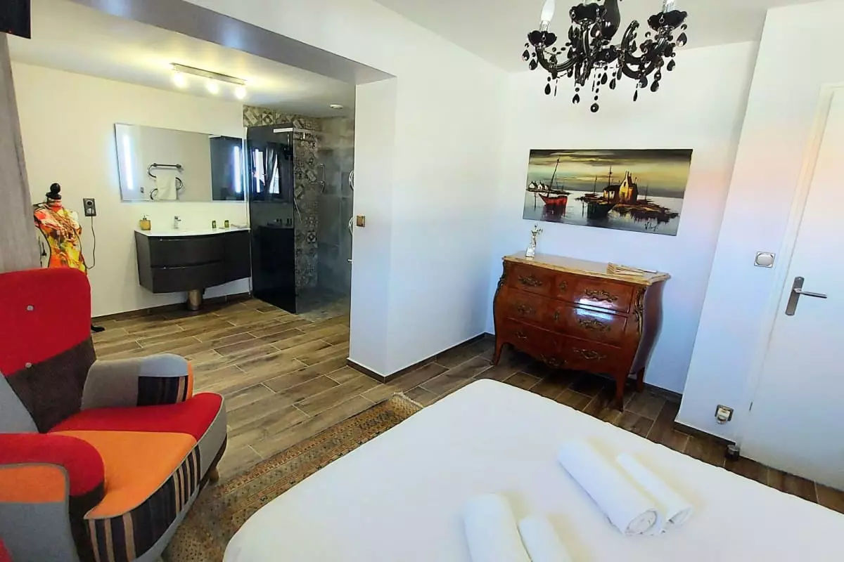 A large, fully equipped summer kitchen and a huge barbecue will allow you, with family or friends, to fully enjoy the terrace and its outdoor furniture. And you can relax around the fire pit as night falls.