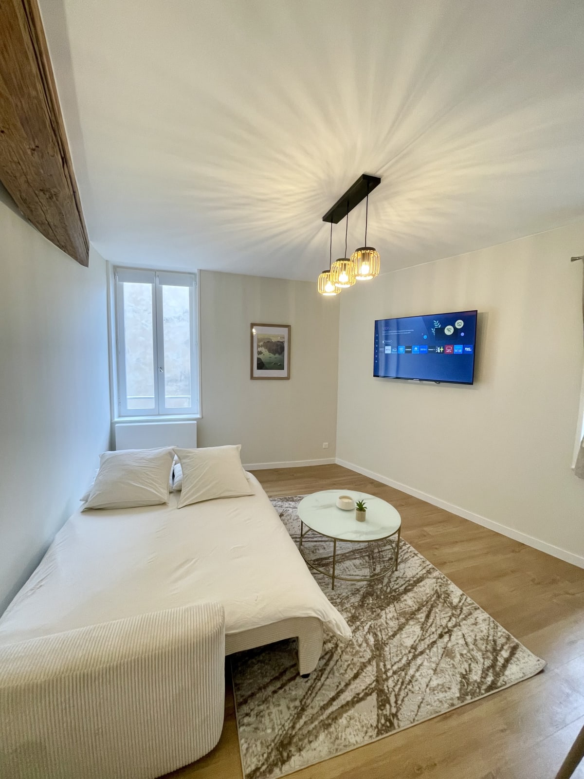 • Separate bedroom + convertible sofa in the living room