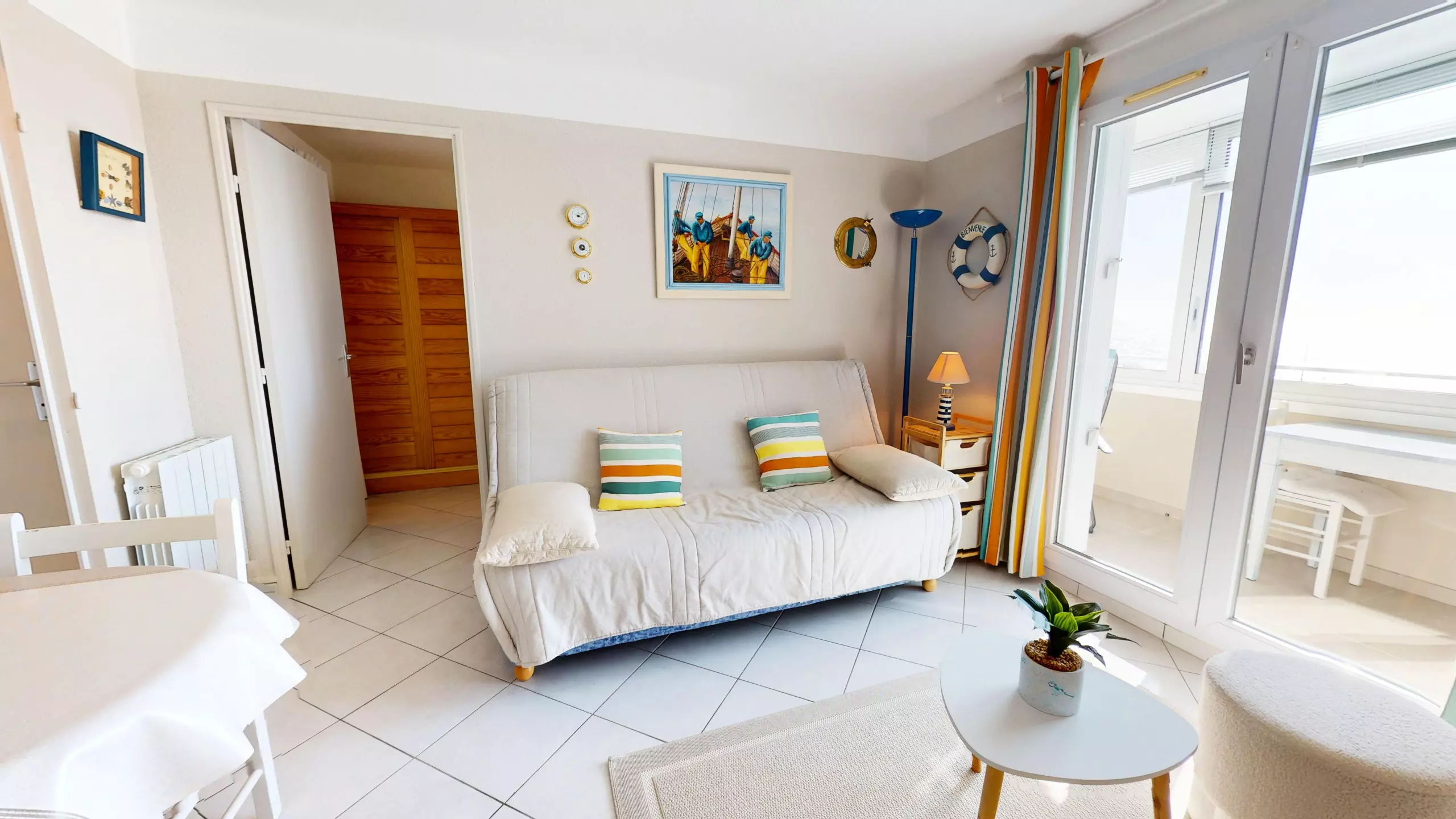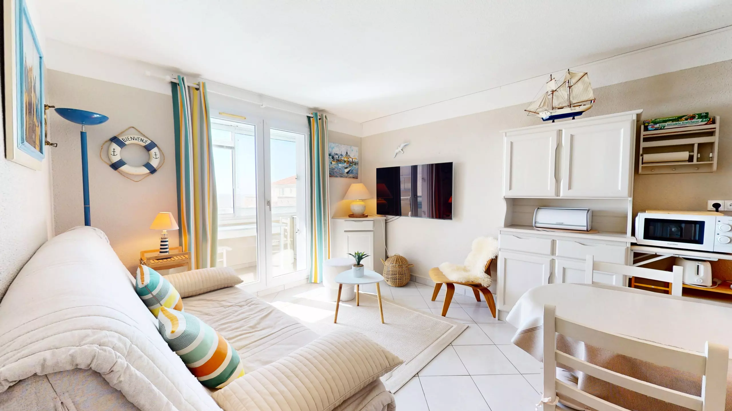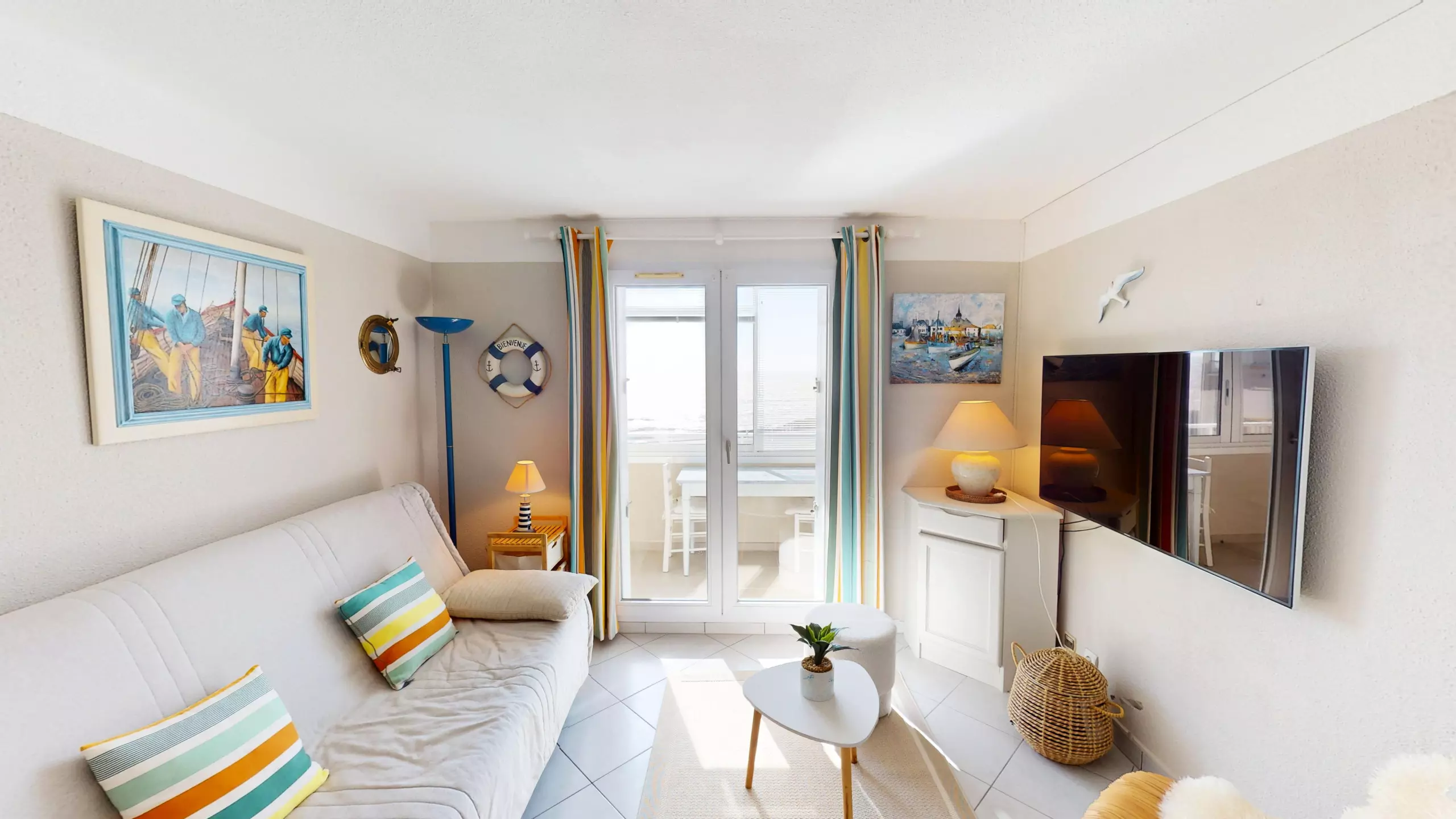 Welcome to La Chaloupe, a true eagle's nest nestled within the Bora-Bora residence in Saint-Hilaire-de-Riez. Here, the experience is truly unique: located just 50 meters from the beach, this apartment offers a direct and panoramic sea view. From the moment you enter, your gaze is drawn to the blue horizon; it's all you see! This haven, bathed in exceptional light, has been entirely designed to offer a cozy and contemporary stay for two lovers of the open sea.
