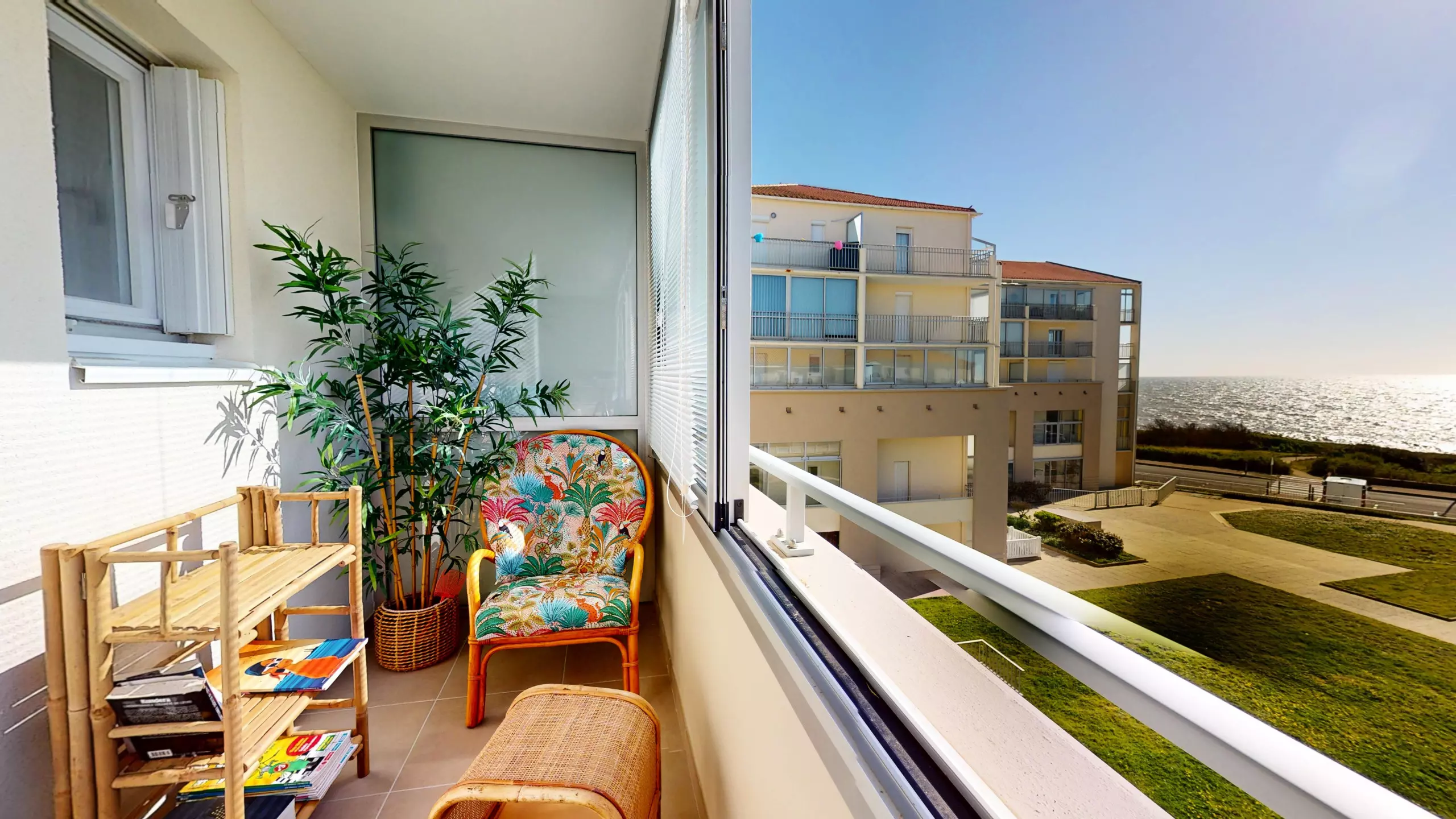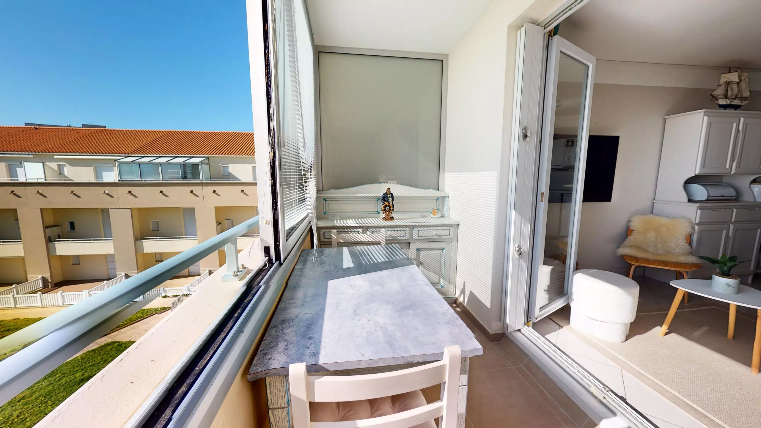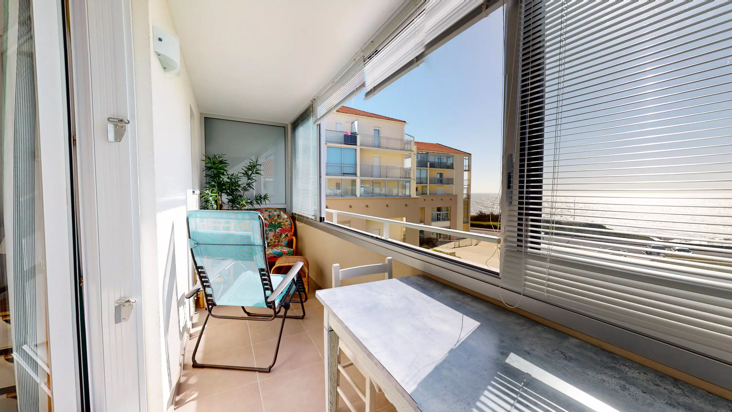 The highlight of La Chaloupe is undoubtedly its superb 8.25 m² loggia. A true extension of the living space overlooking the vast expanse of the sea, it features a table for candlelit dinners lulled by the sound of the waves. A "zen" reading nook has also been created: settle in comfortably and let yourself be mesmerized by the ebb and flow of the tides. It's the perfect spot to completely disconnect.