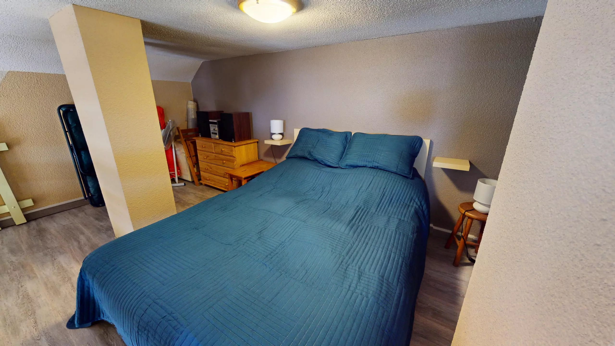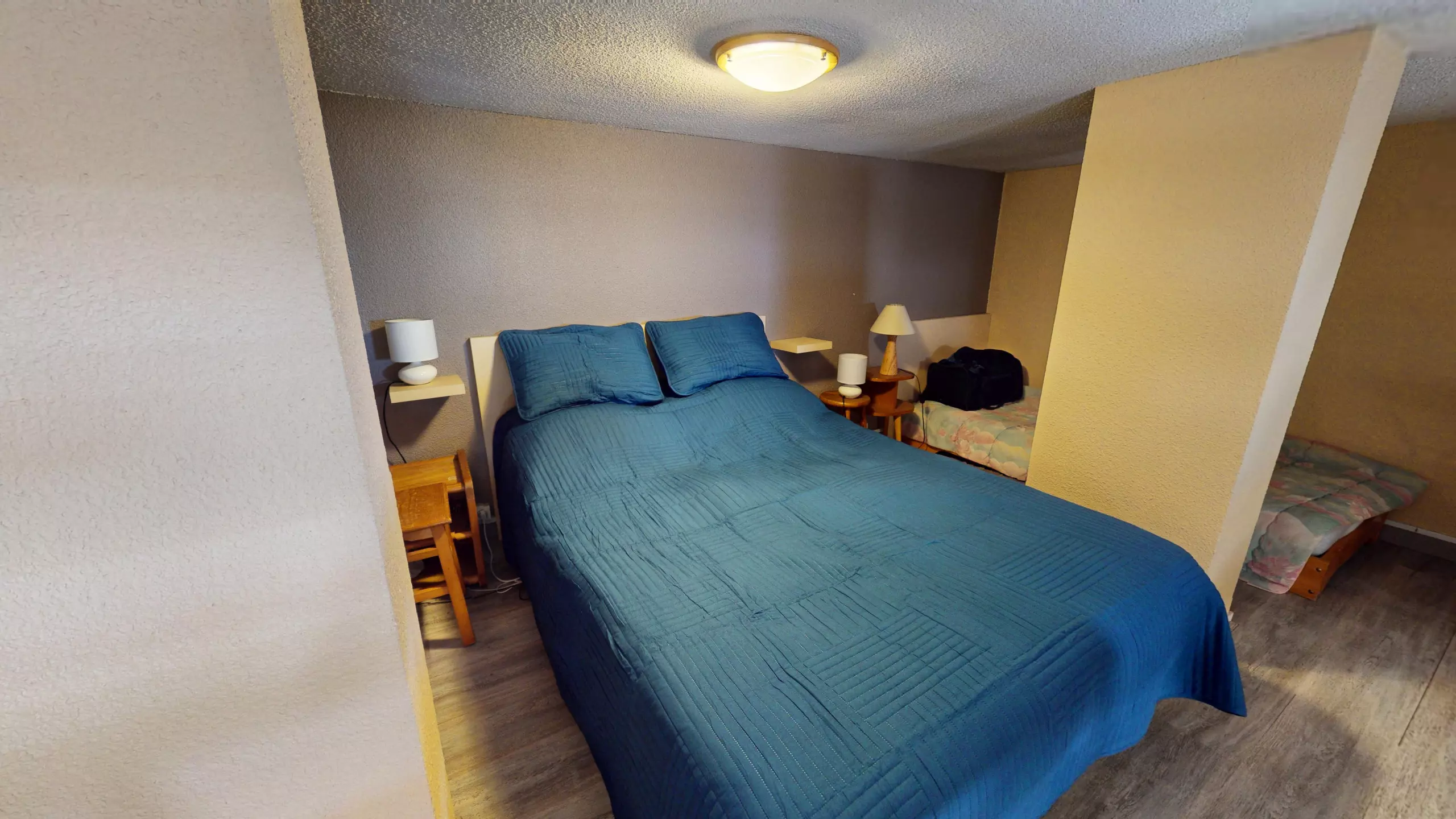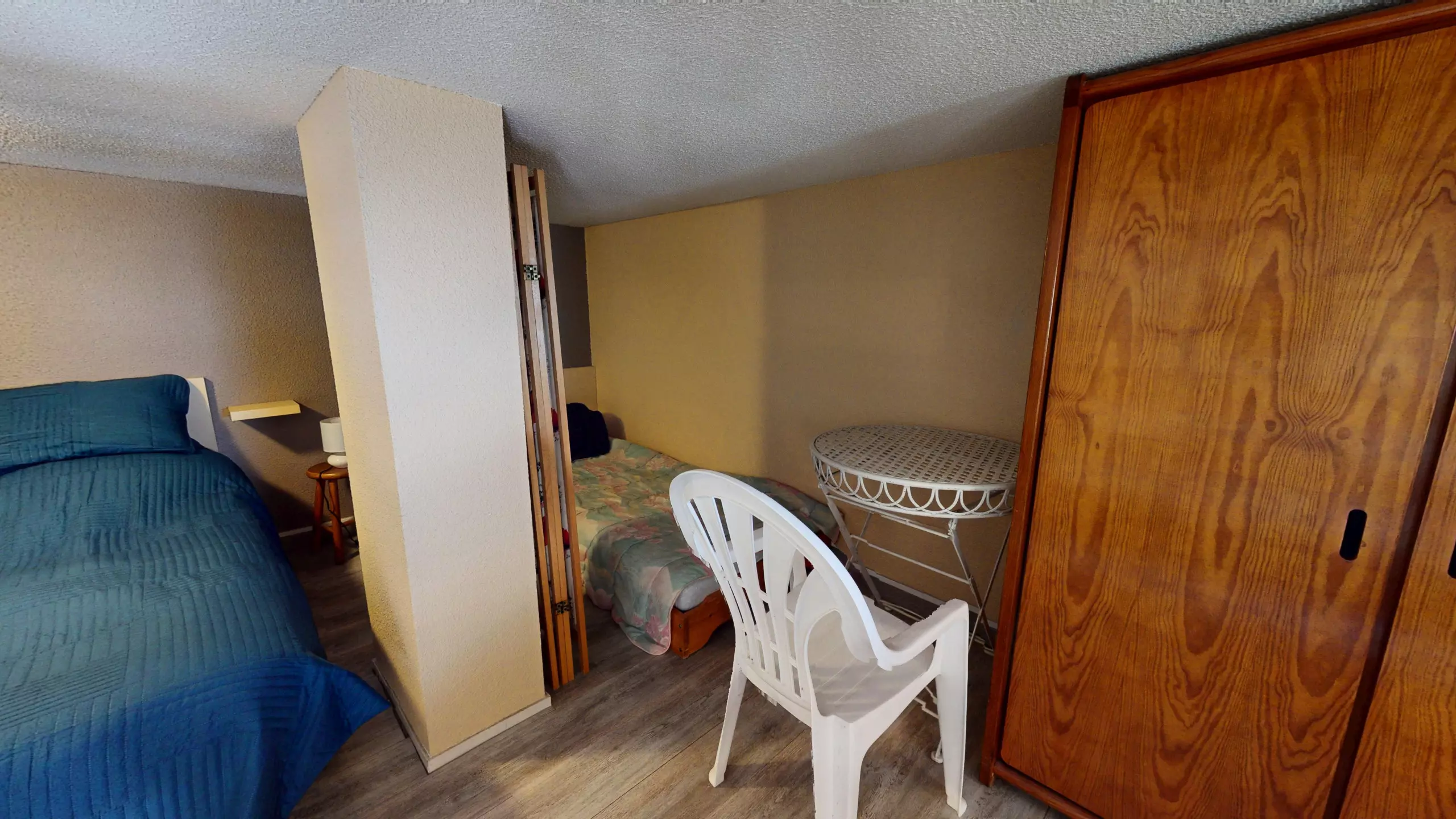 Le Spot de la Corniche offers a clever and welcoming interior. On the level, you'll find a separate bedroom with a double bed (140x190 cm) and an en-suite bathroom with a bathtub, as well as a separate toilet. The living area, where you can already see the sea spray, includes a cozy lounge with a television, a convivial dining table, and a fully equipped open-plan kitchen (gas hob and all necessary cookware). Upstairs, a spacious mezzanine accommodates a second double bed (140x190 cm) and two single beds (90x190 cm), offering great sleeping flexibility.